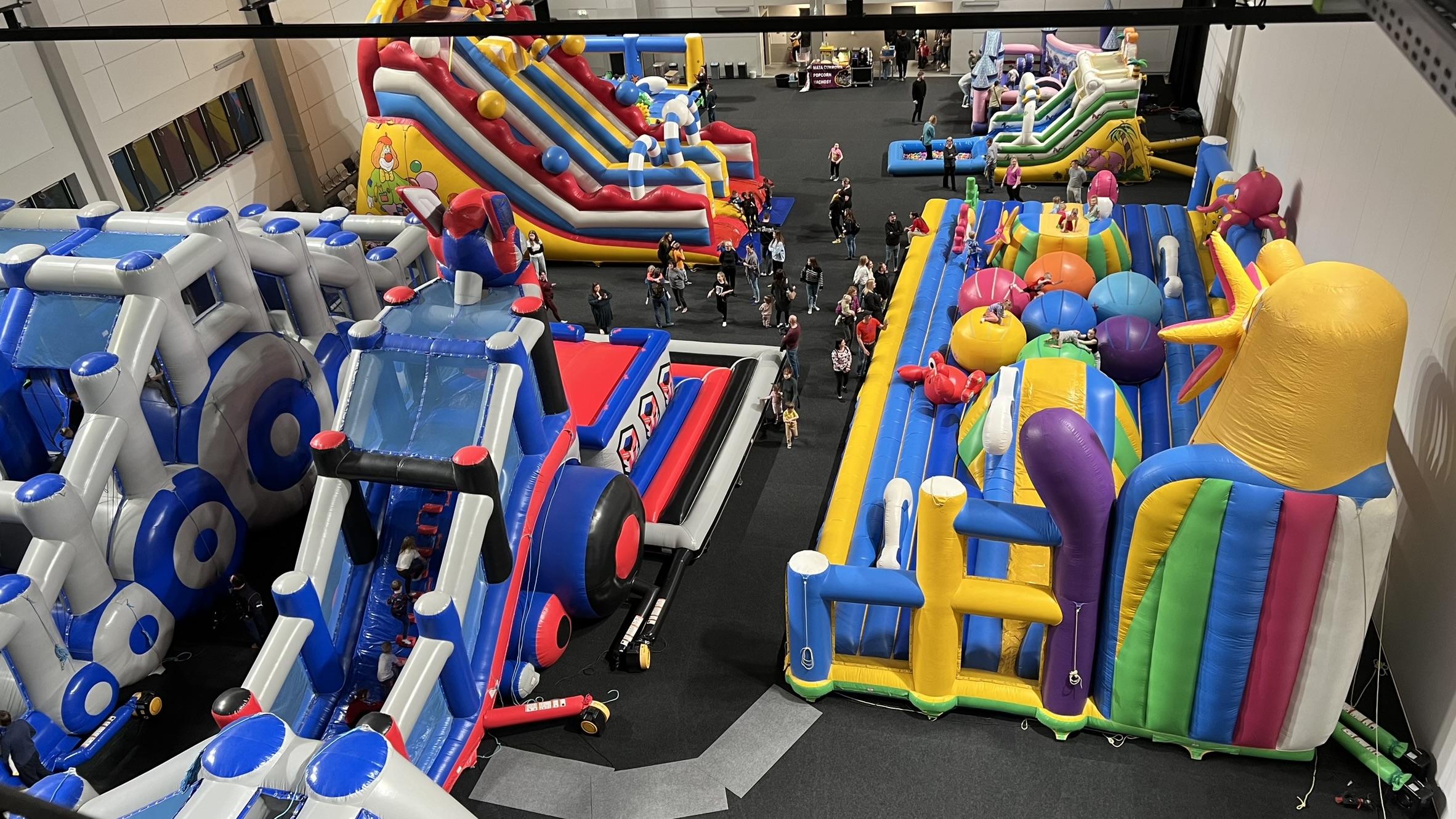 Cała hala zostanie wypchana najróżniejszymi kolorowymi urządzeniami, a na dzieci będzie czekać między innymi połykająca dzieci paszcza lwa, wieża do skoków oraz wymagający sprytu 25-metrowy tor przeszkód Transformers, zręcznościowy Wipe Out, dmuchany plac zabaw, basen z piłeczkami oraz to co dzieci uwielbiają najbardziej, czyli mnóstwo zjeżdżalni!