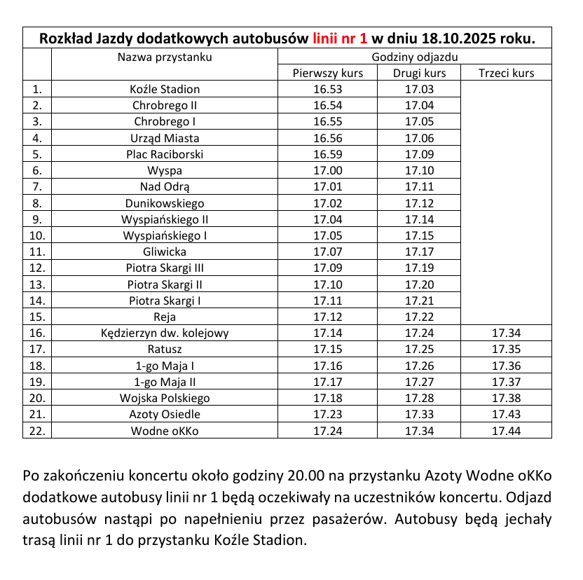 Mieszkańców tradycyjnie na jubileuszowy koncert dowiozą dodatkowe autobusy MZK.