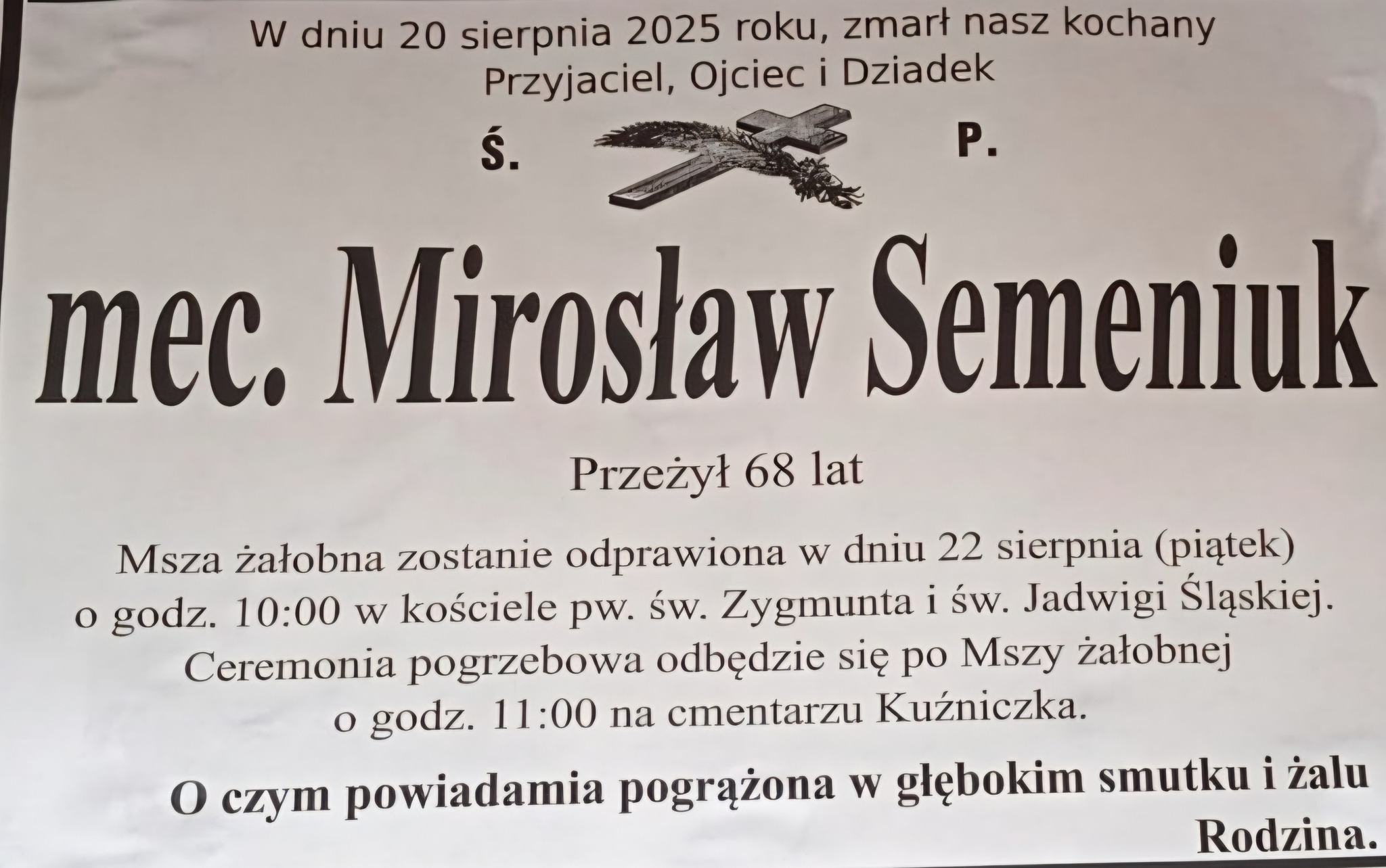Uchwałą Prezydium Naczelnej Rady Adwokackiej mecenas Semeniuk został uhonorowany odznaką „Adwokatura Zasłużonym”. Izba Adwokacka w Opolu składa wyrazy głębokiego współczucia jego rodzinie. O terminie uroczystości pogrzebowych poinformowano, że zostanie podany w najbliższym możliwym czasie.