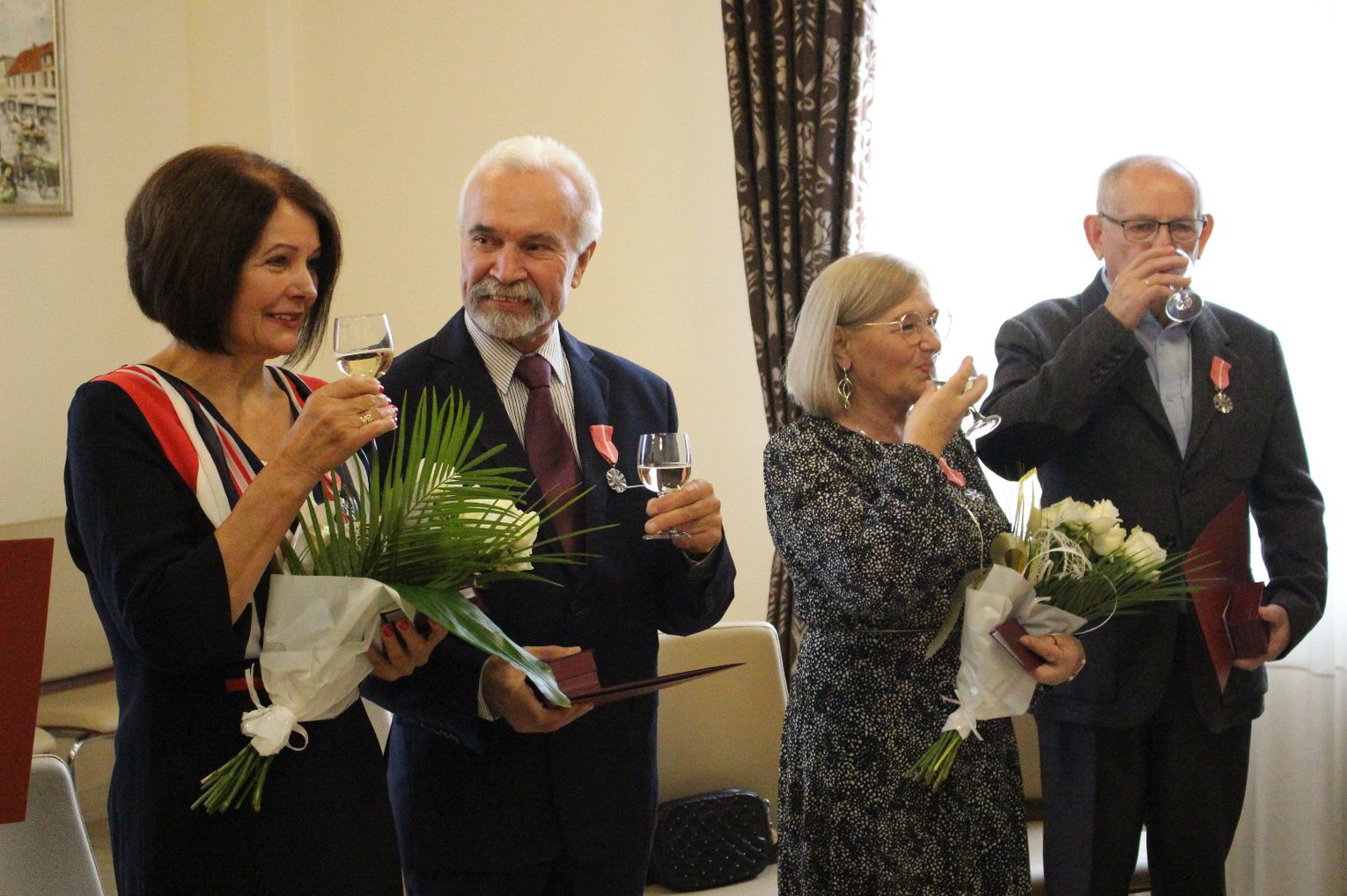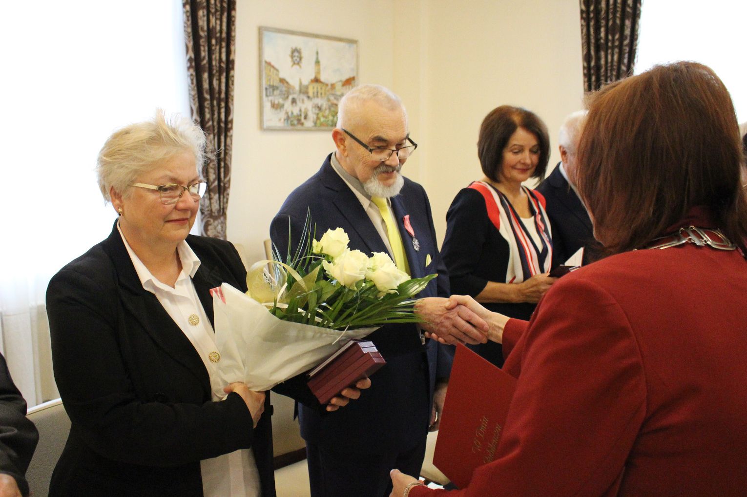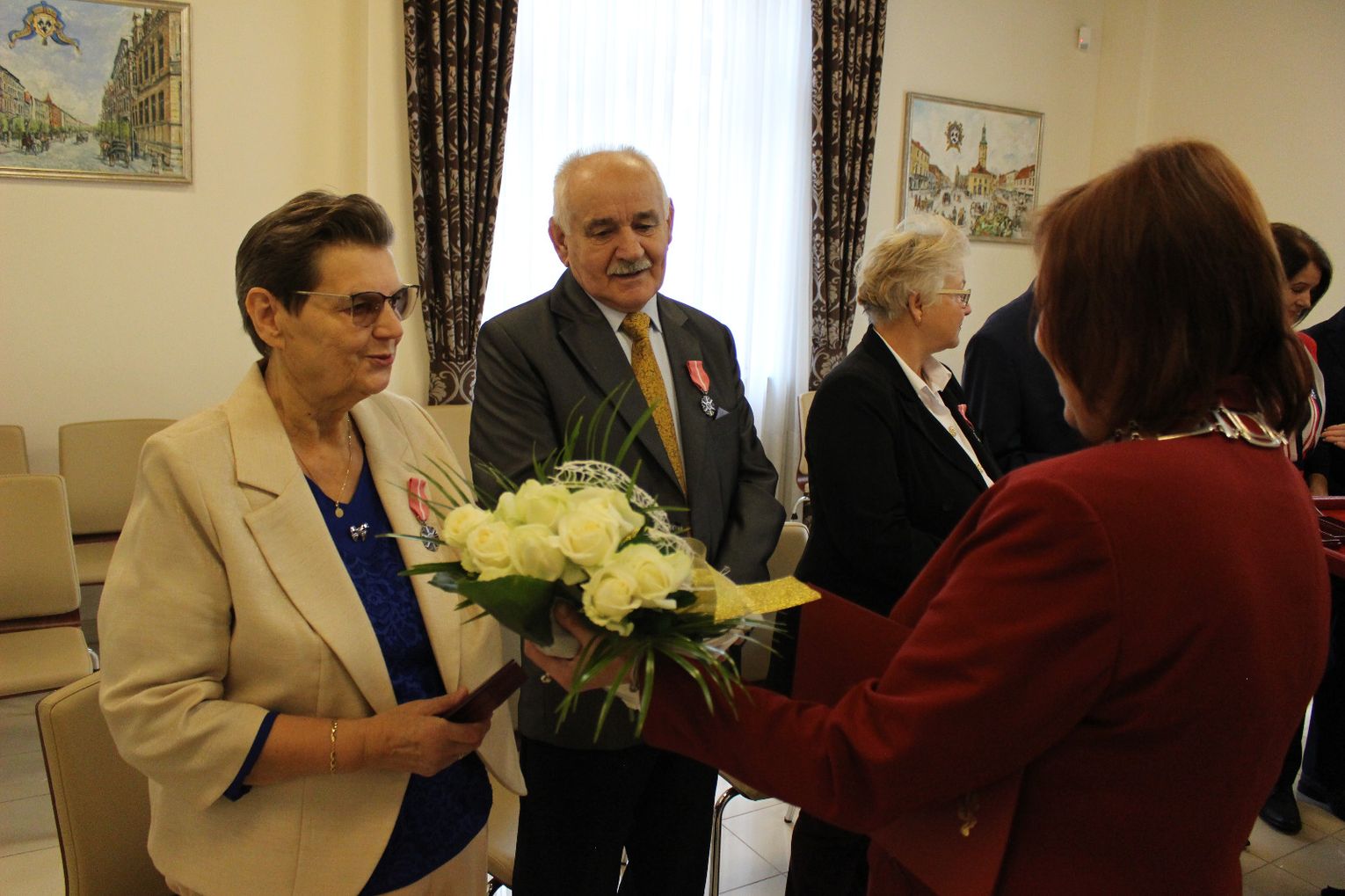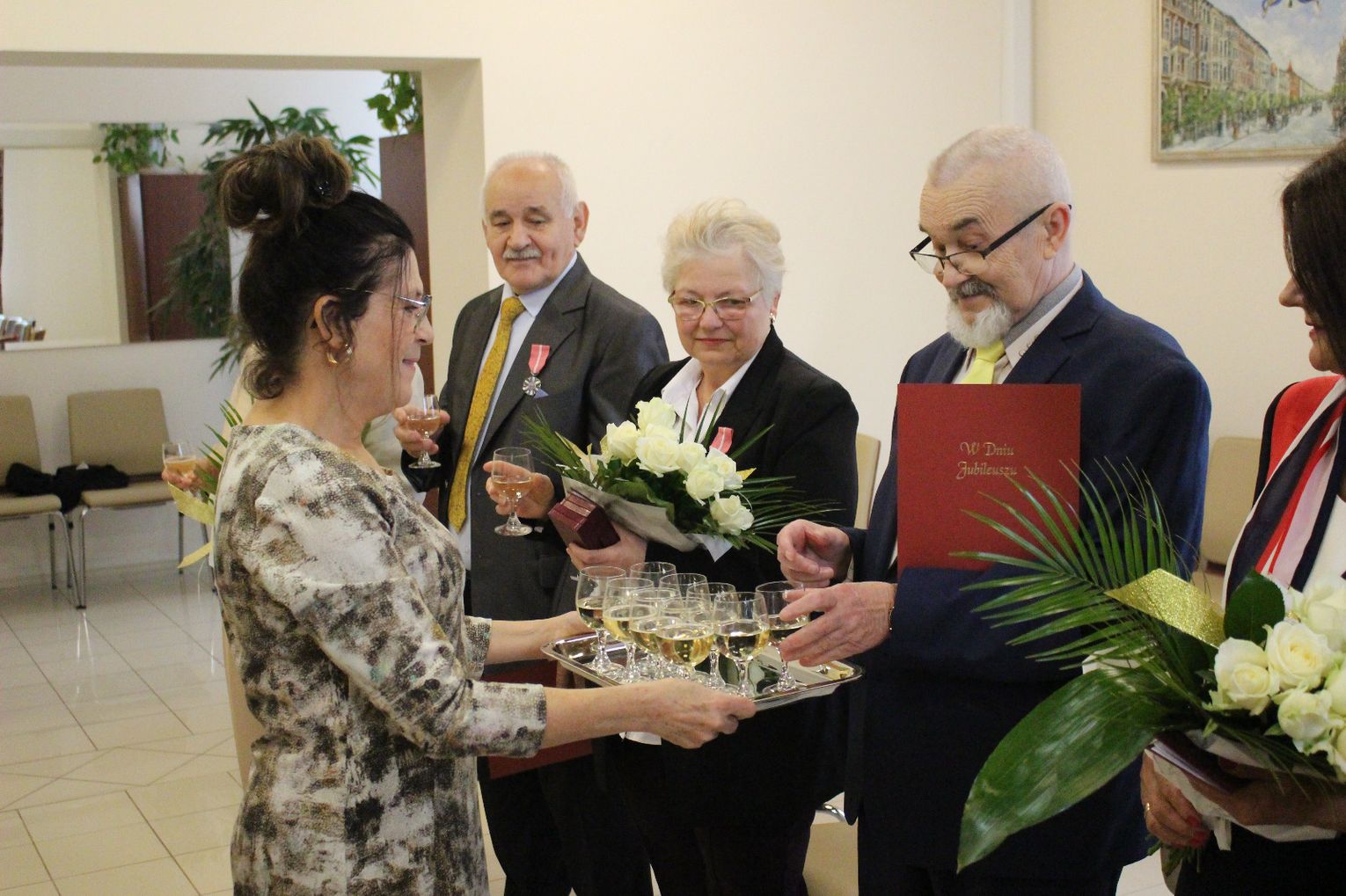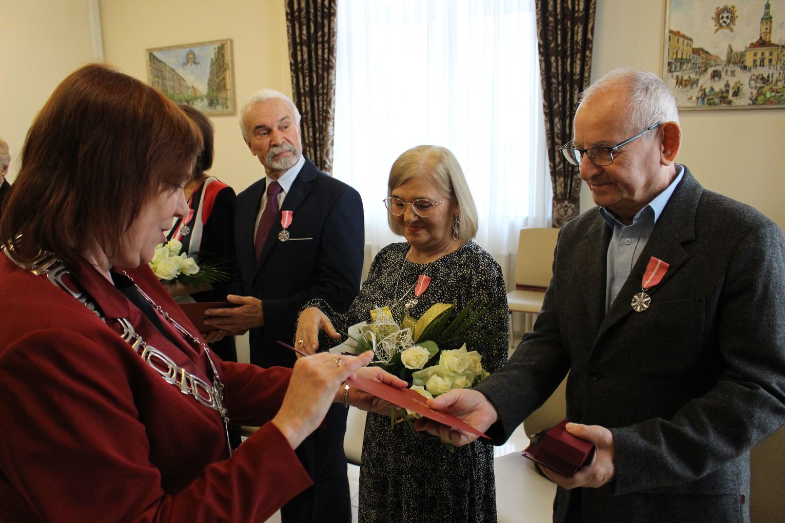 Jubilatom najserdeczniejsze życzenia oraz medale za długoletnie pożycie małżeńskie wręczyła prezydent Sabina Nowosielska. Odznaczenia, przyznane przez Prezydenta Rzeczypospolitej Polskiej, otrzymali Państwo: Irena i Stanisław Frąc, Małgorzata i Zygmunt Kasperek, Krystyna i Józef Kokoszka oraz Zofia i Franciszek Złotniccy.
