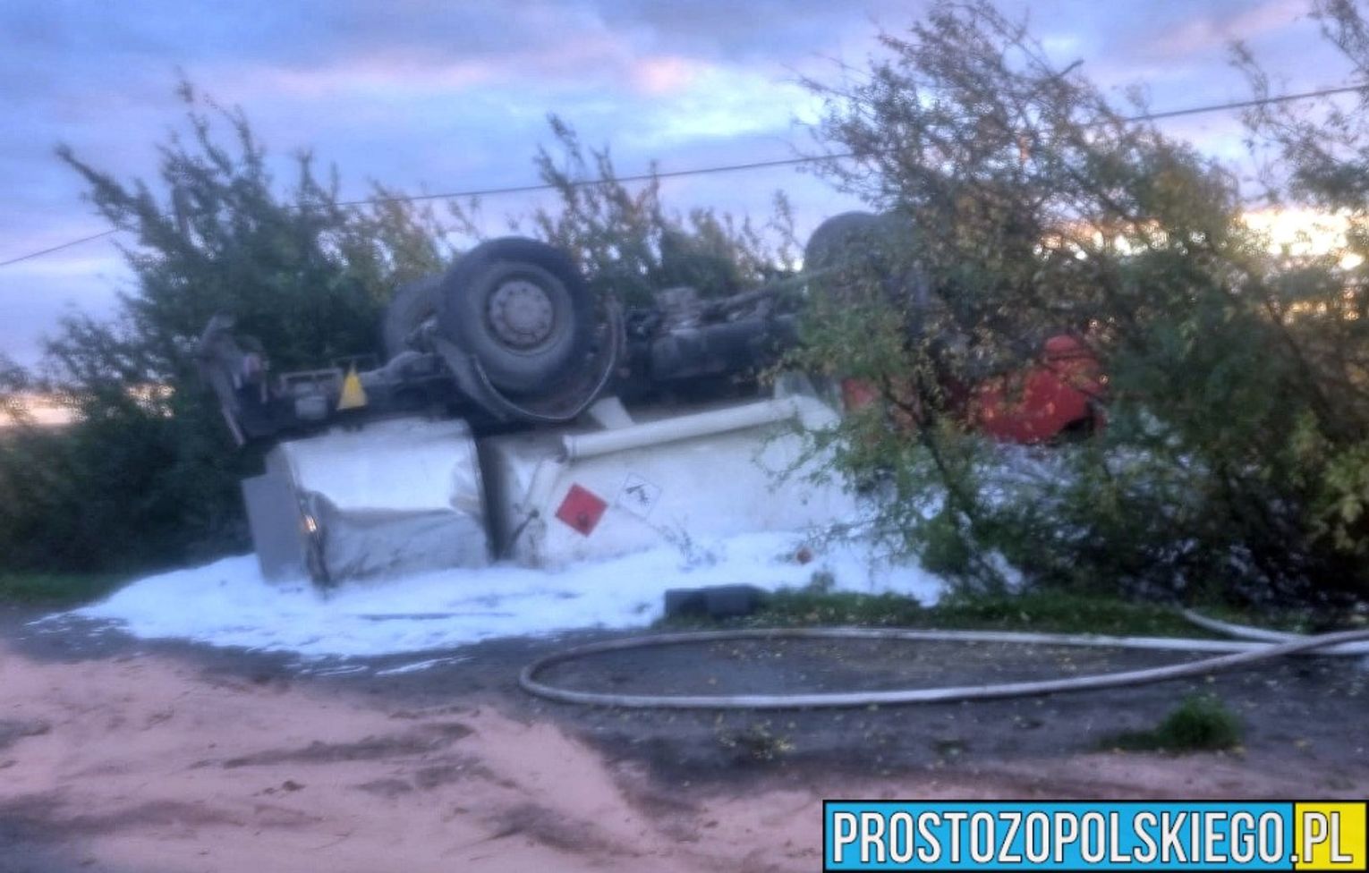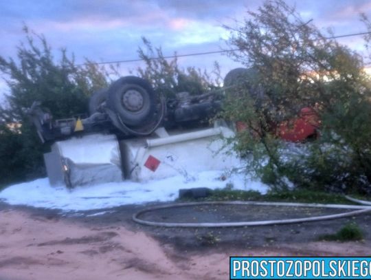 Jak wynikało ze wstępnych ustaleń, cysterna przewożąca olej napędowy z nieustalonych przyczyn zjechała z drogi do rowu i przewróciła się na dach. Kierowca pojazdu doznał obrażeń ciała – po udzieleniu mu pomocy przez ratowników medycznych został przetransportowany do szpitala.