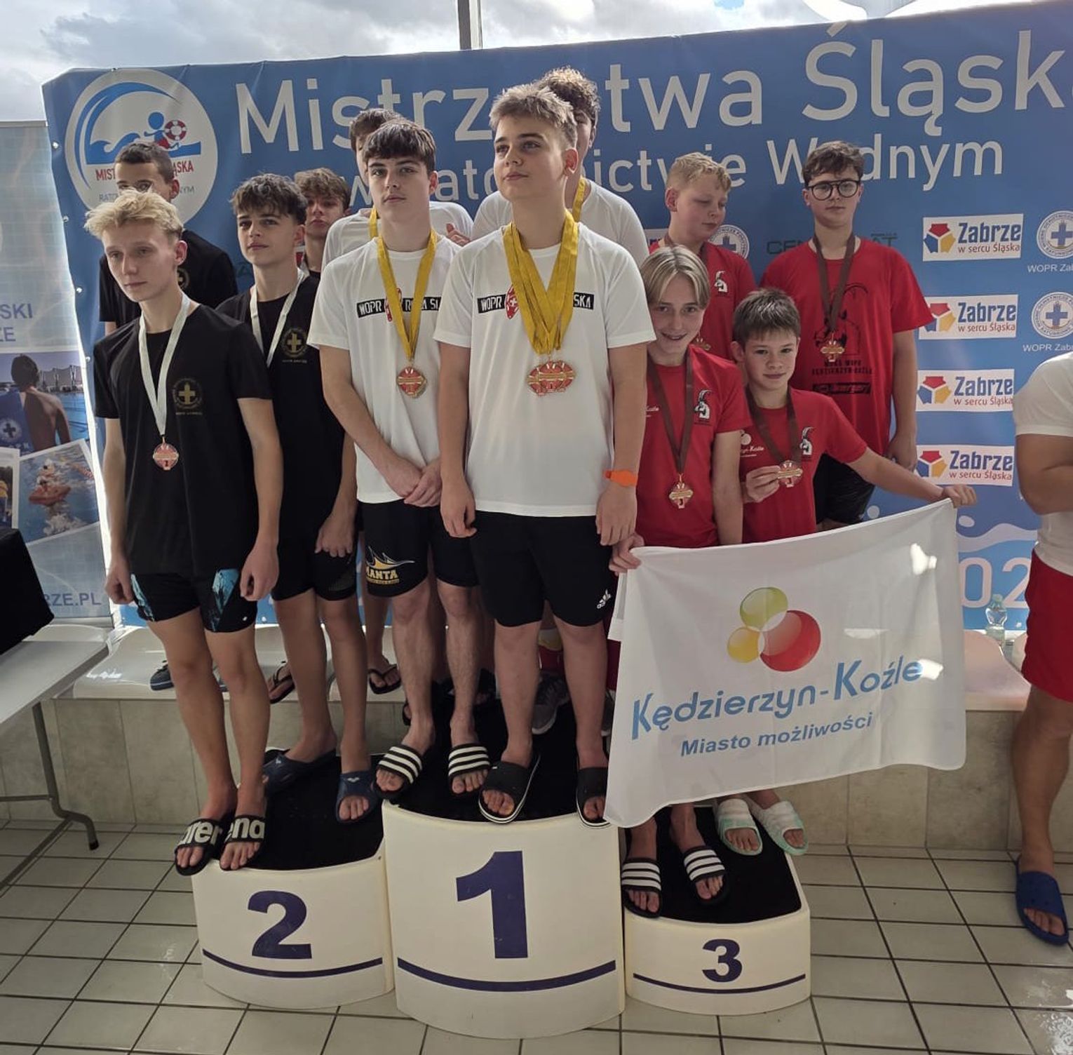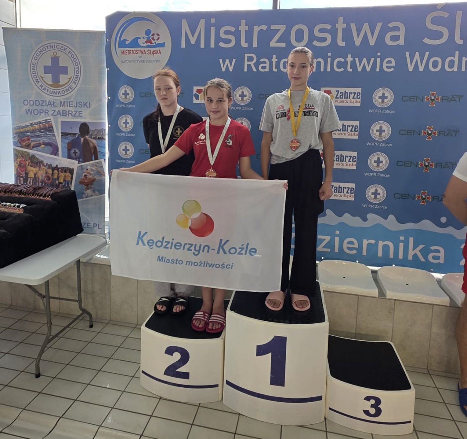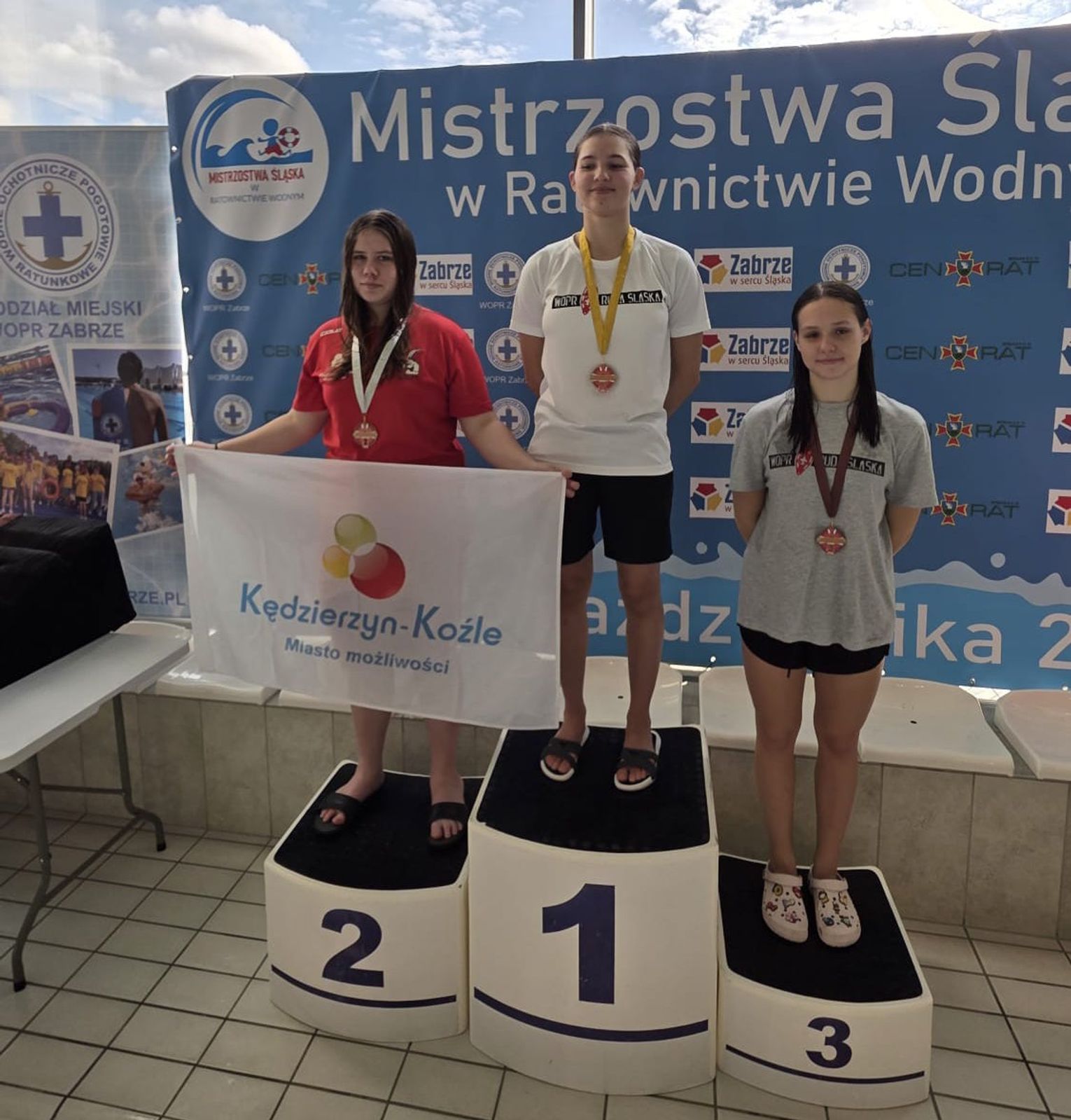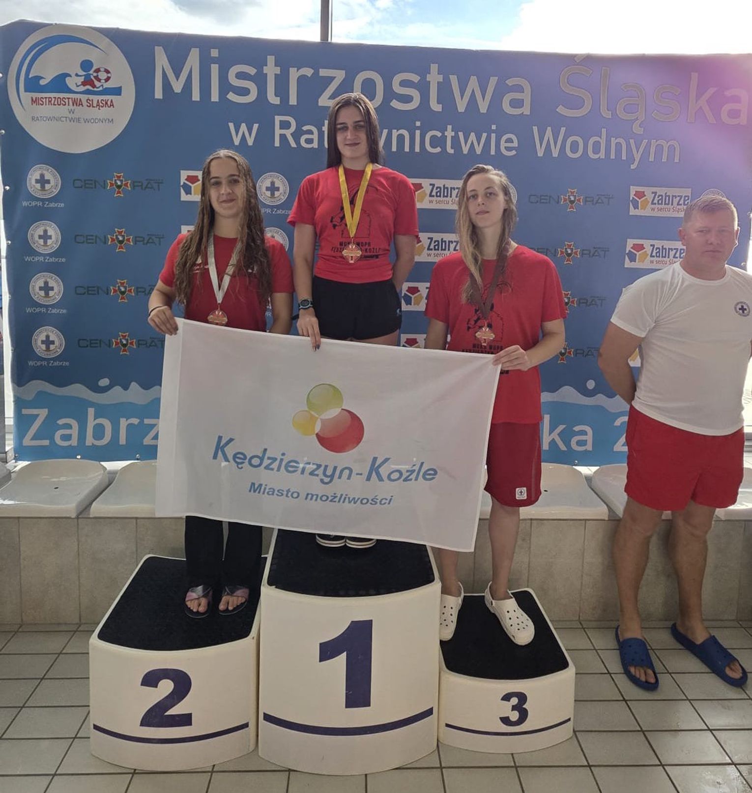 W rywalizacji sztafet 4x50 m z pasem ratowniczym nasze drużyny również stanęły na podium. Drugie miejsce zajęły dziewczyny w składzie: Zofia Rapiejko, Aneta Drabik, Wiktoria Kochowska, Julia Guziak, trzecie były: Magdalena Adamczyk, Milena Sitnik, Martyna Szostak, Lena Lebiecka. Na najniższym stopniu podium stanęły również dwie drużyny chłopców: w kategorii 12-15 lat: Antonii Ćwikłowski, Marcel Stebnicki, Franek Bytnar, Bartek Malinowski oraz w kategorii 16 lat i starsi: Jan Rapiejko, Michał Kałamaga, Karol Rekowski, Maciej Malinowski.