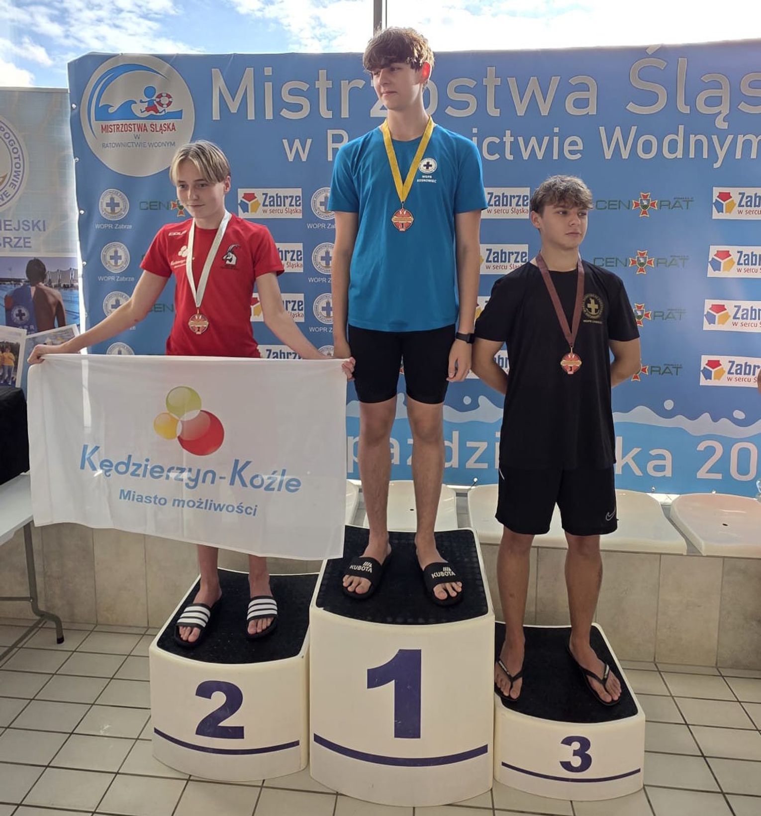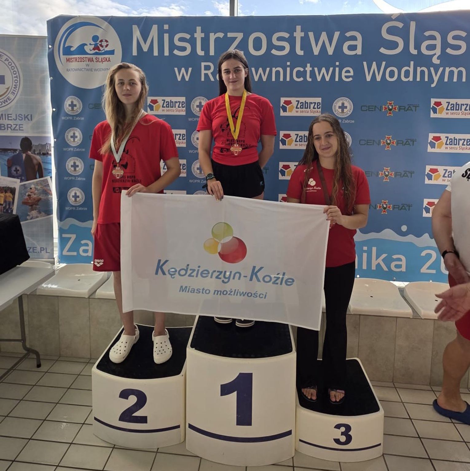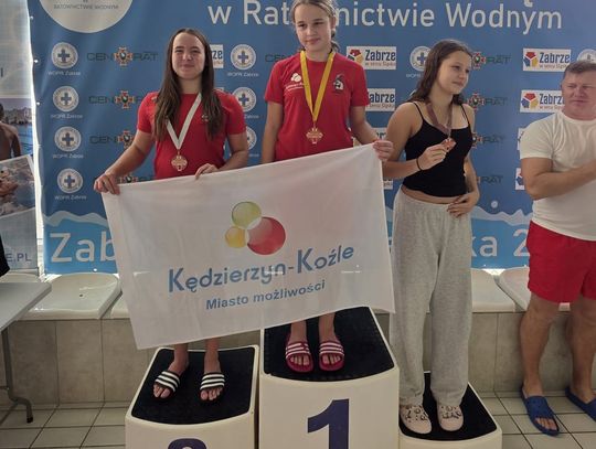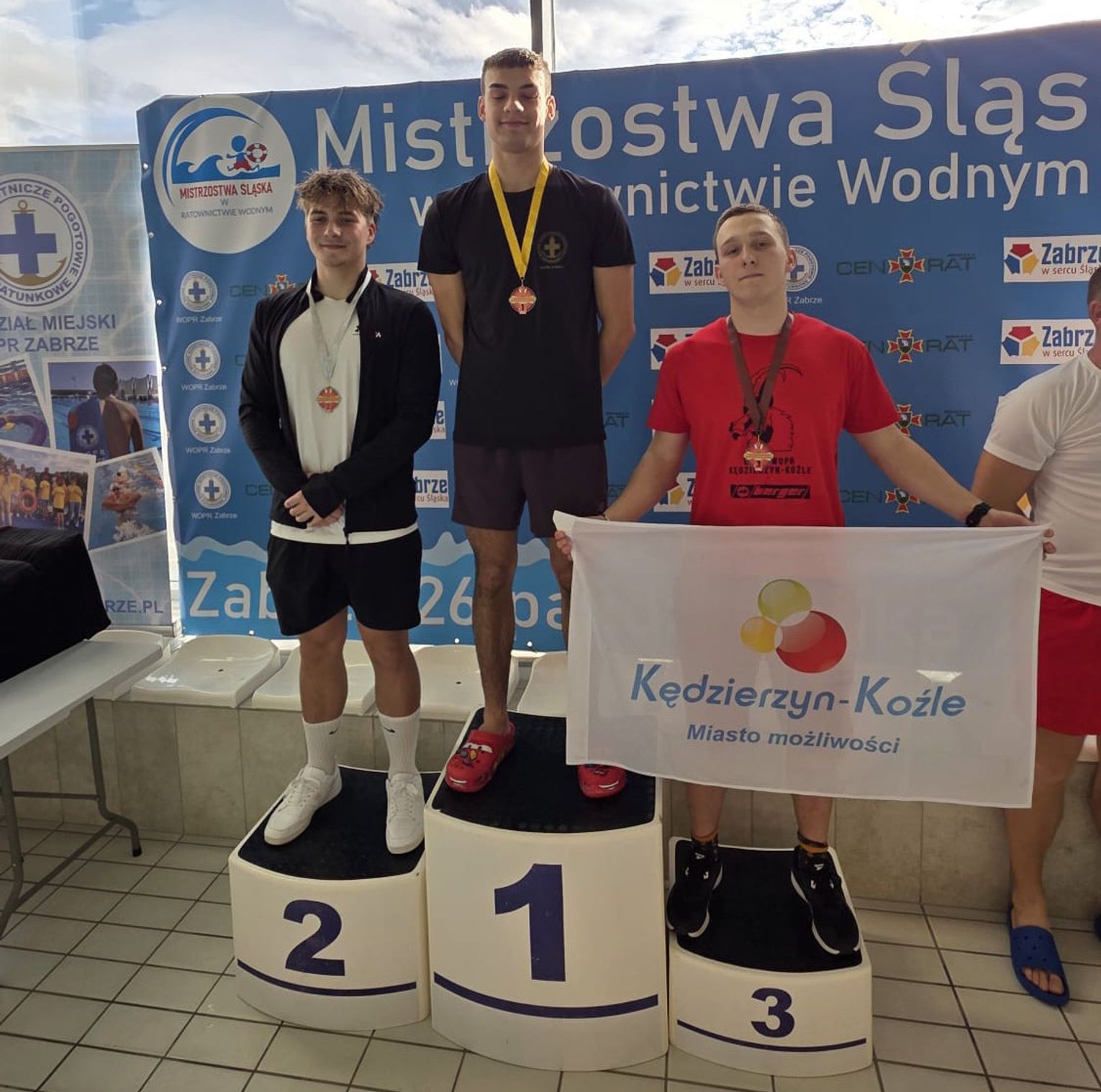 W rywalizacji sztafet 4x50 m z pasem ratowniczym nasze drużyny również stanęły na podium. Drugie miejsce zajęły dziewczyny w składzie: Zofia Rapiejko, Aneta Drabik, Wiktoria Kochowska, Julia Guziak, trzecie były: Magdalena Adamczyk, Milena Sitnik, Martyna Szostak, Lena Lebiecka. Na najniższym stopniu podium stanęły również dwie drużyny chłopców: w kategorii 12-15 lat: Antonii Ćwikłowski, Marcel Stebnicki, Franek Bytnar, Bartek Malinowski oraz w kategorii 16 lat i starsi: Jan Rapiejko, Michał Kałamaga, Karol Rekowski, Maciej Malinowski.