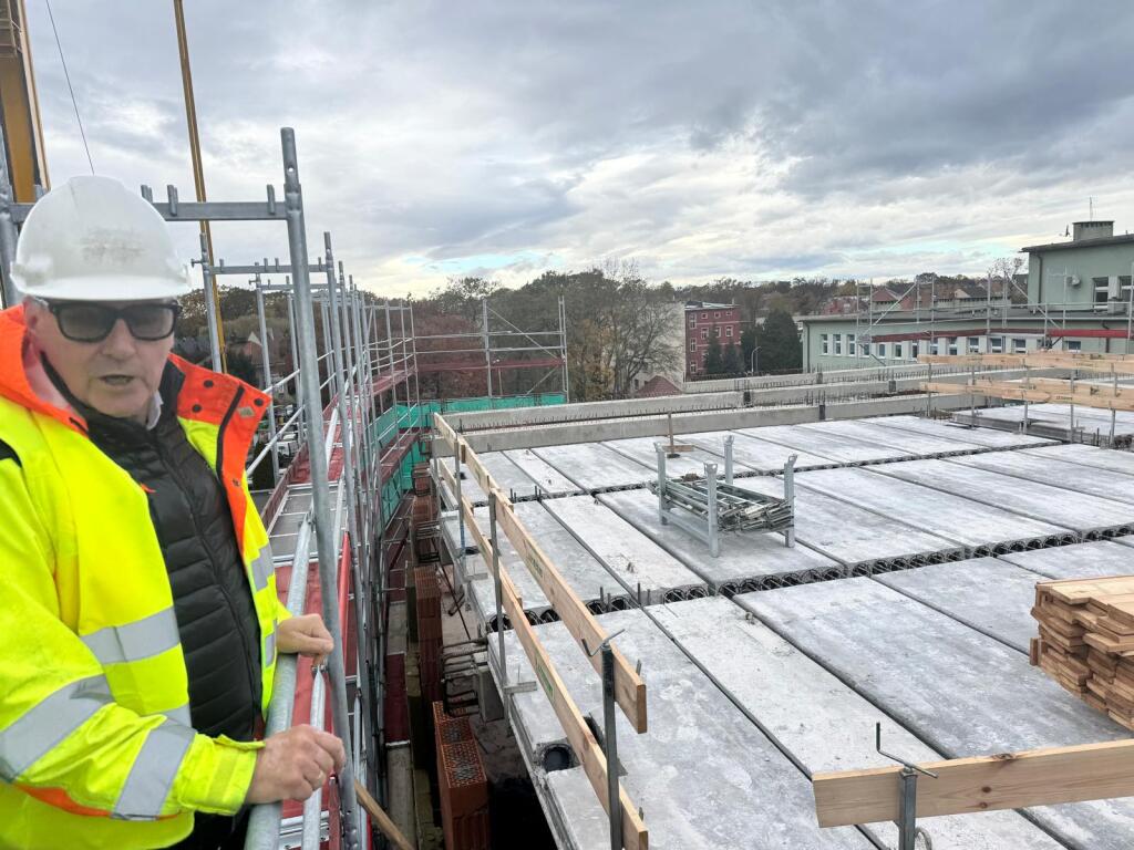 Na koniec października 2025 roku zakończono konstrukcyjnie proces nadbudowy kolejnego piętra. Wykonano przebudowę wszystkich sieci zewnętrznych i kontynuowane są prace związane z nadbudową II z kolei piętra. Intensywnie przygotowywany jest wykop pod nowy szyb windowy.