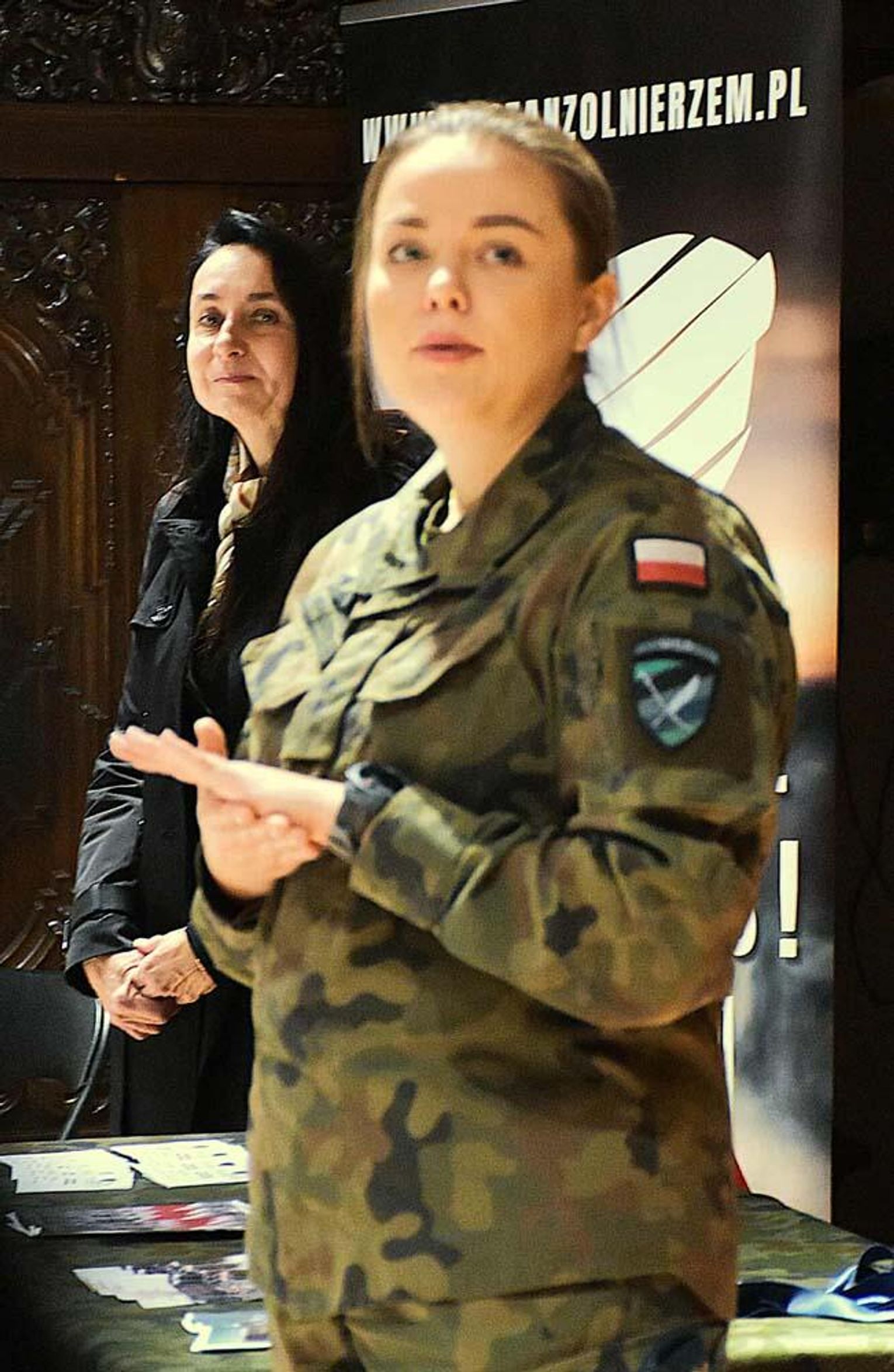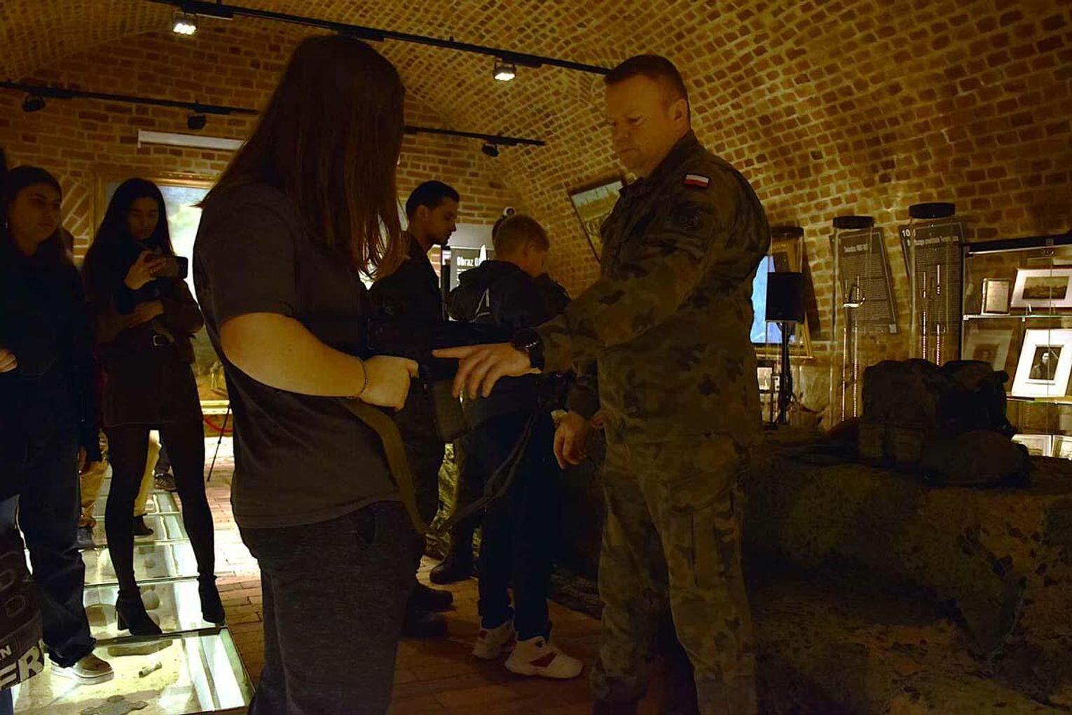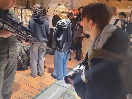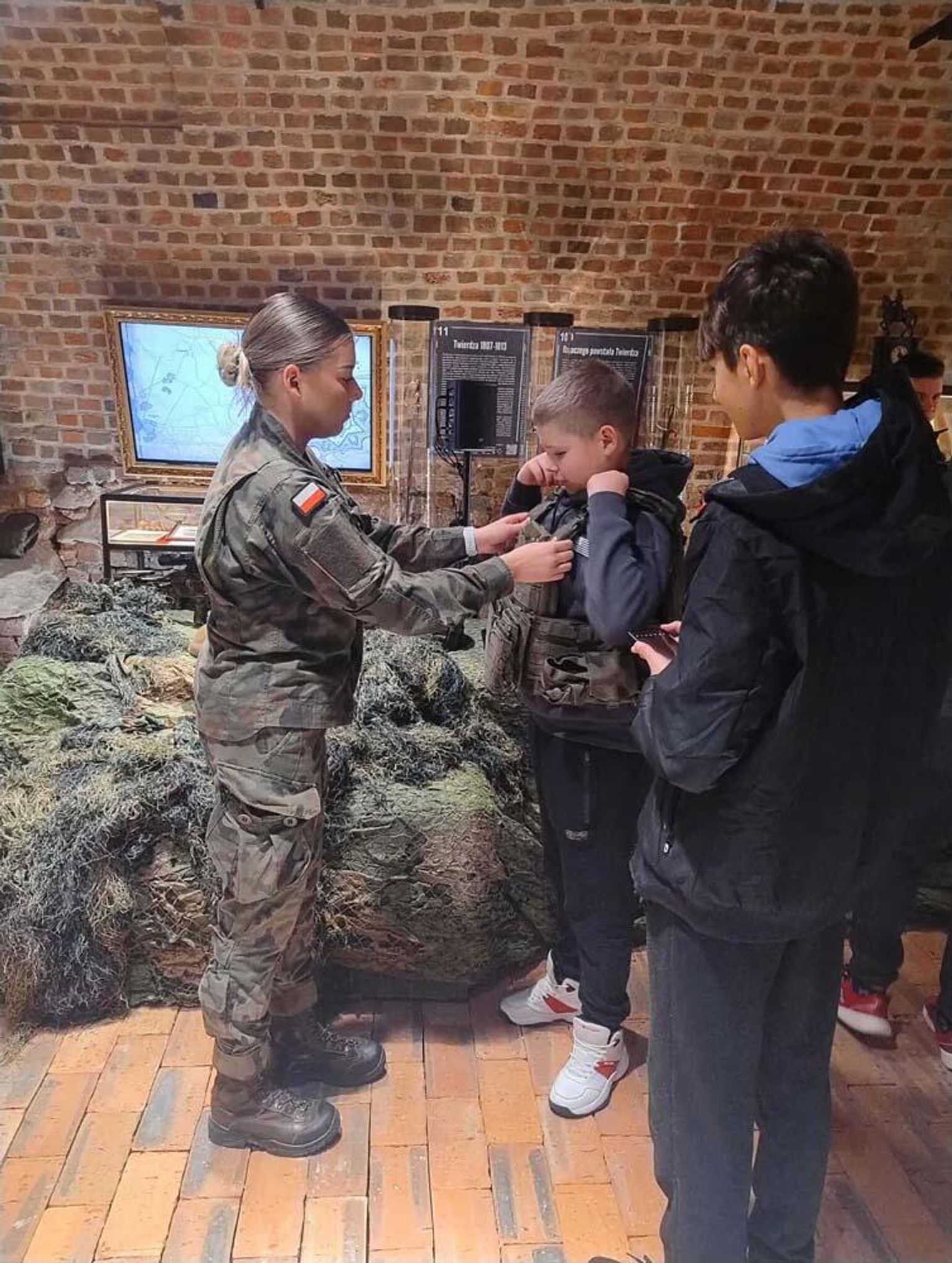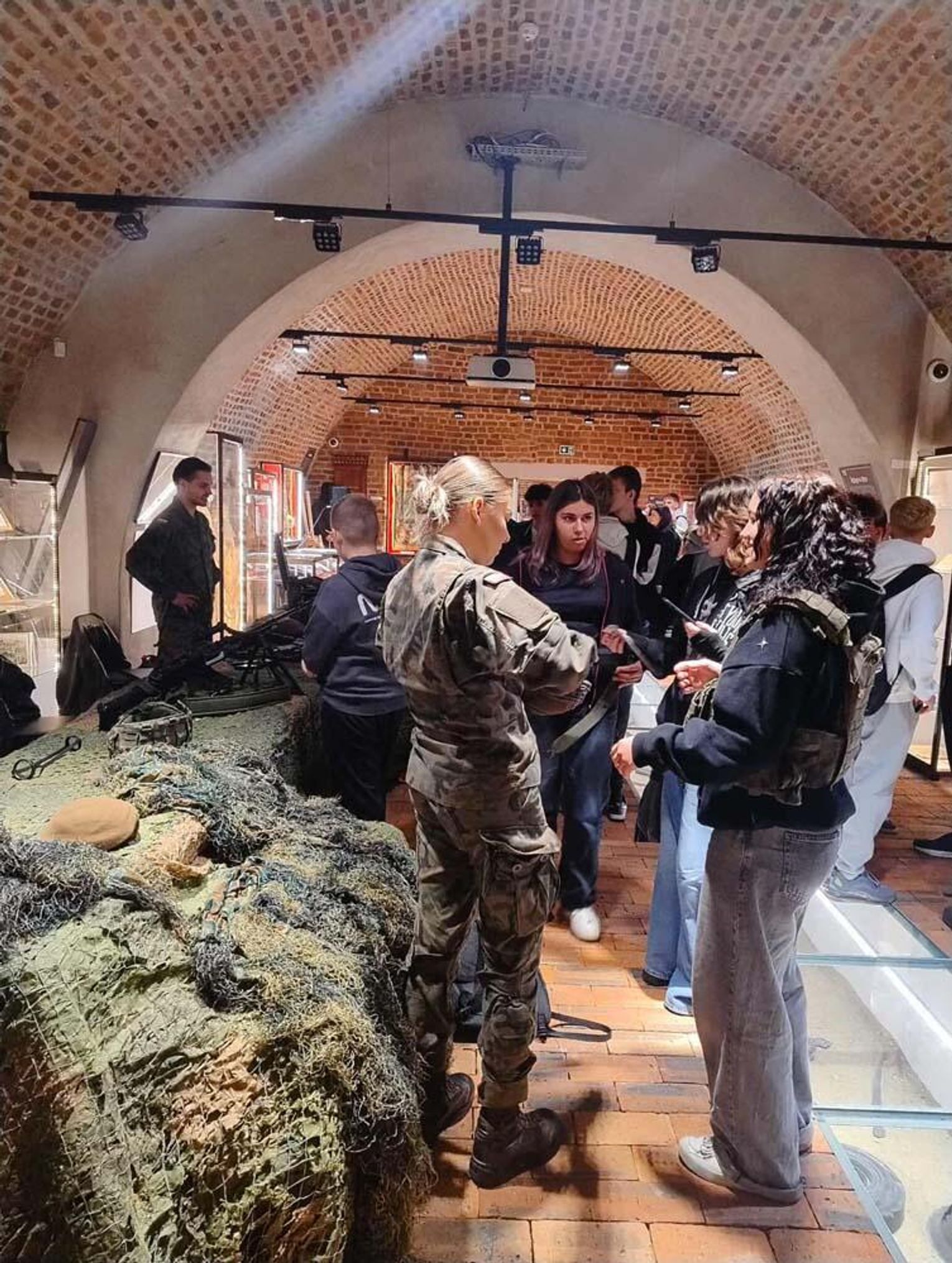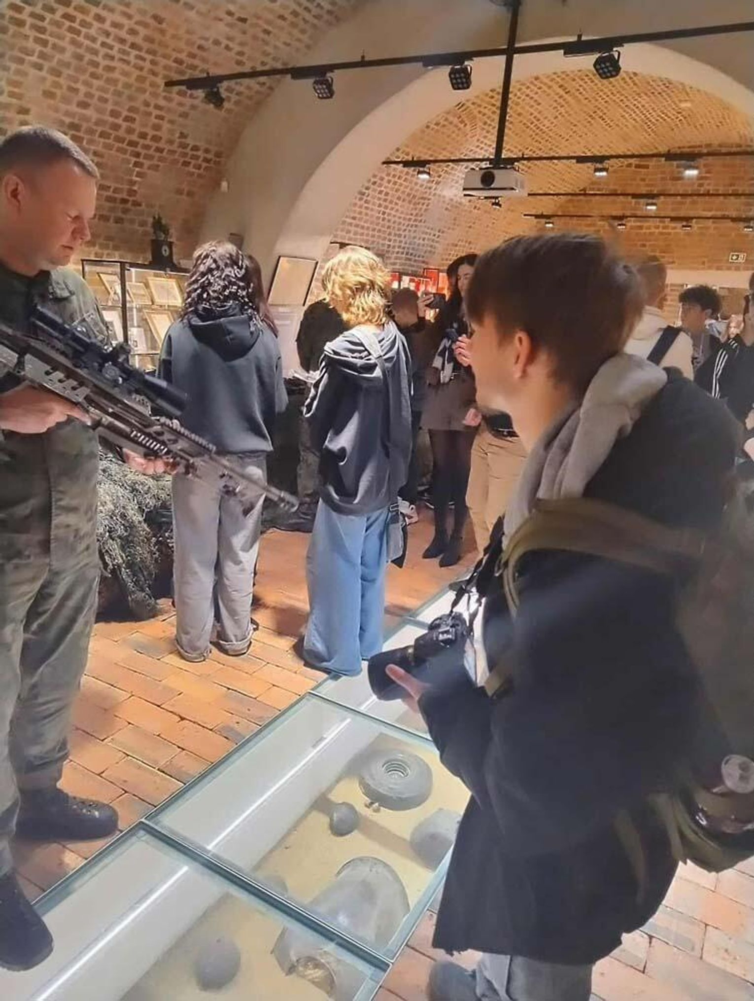 Uczniowie z różnych szkół mieli okazję zobaczyć z bliska wystawę broni wojskowej, wysłuchać wykładu dotyczącego rekrutacji do wojska, a także porozmawiać z żołnierzami i dopytać ich o szczegóły służby, codzienną pracę oraz proces wstępowania do armii. Nie zabrakło również atrakcji praktycznych — chętni mogli założyć kamizelki taktyczne, przymierzyć duży plecak żołnierski oraz potrzymać prawdziwą broń, co cieszyło się ogromnym zainteresowaniem.
