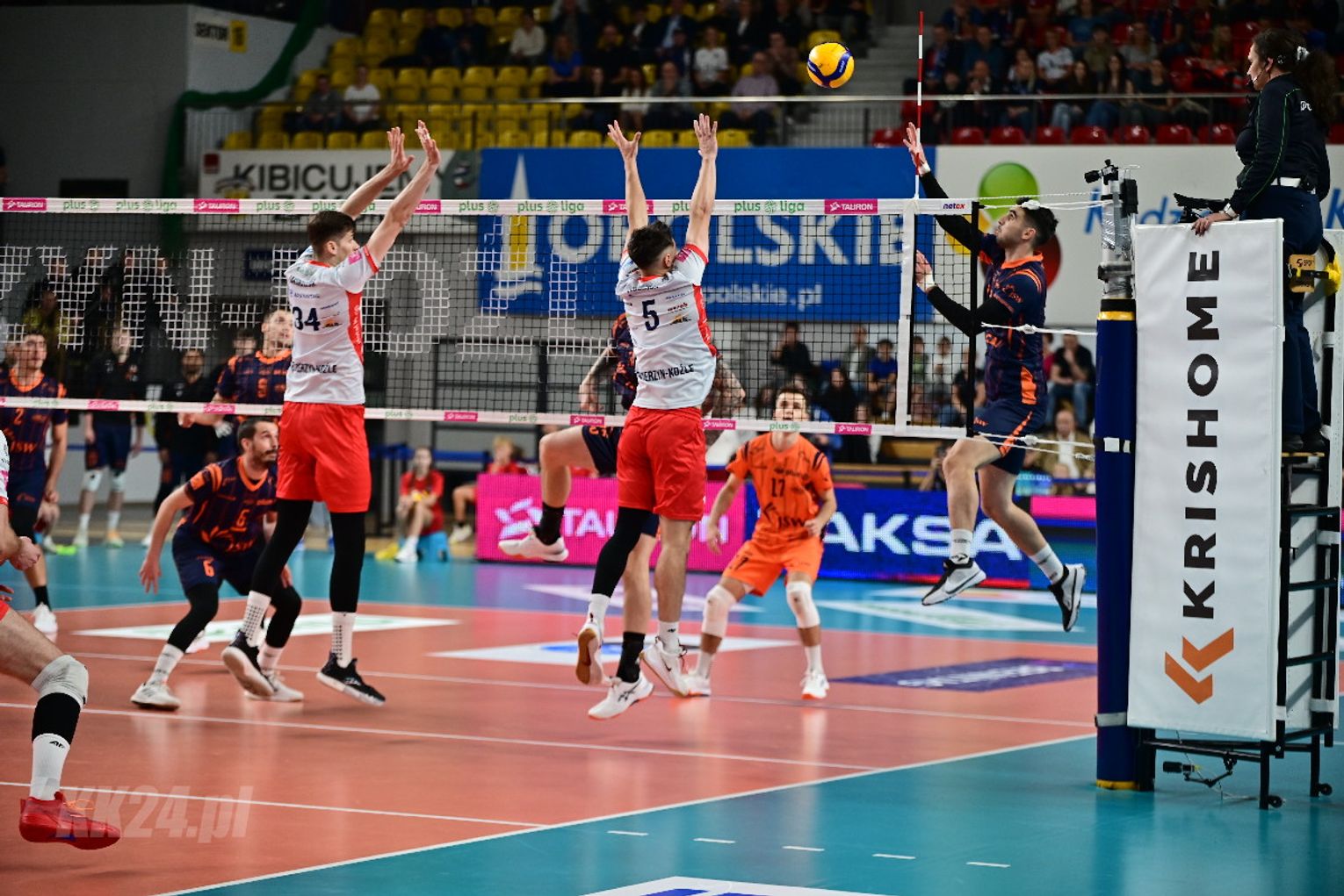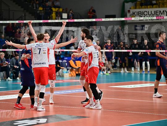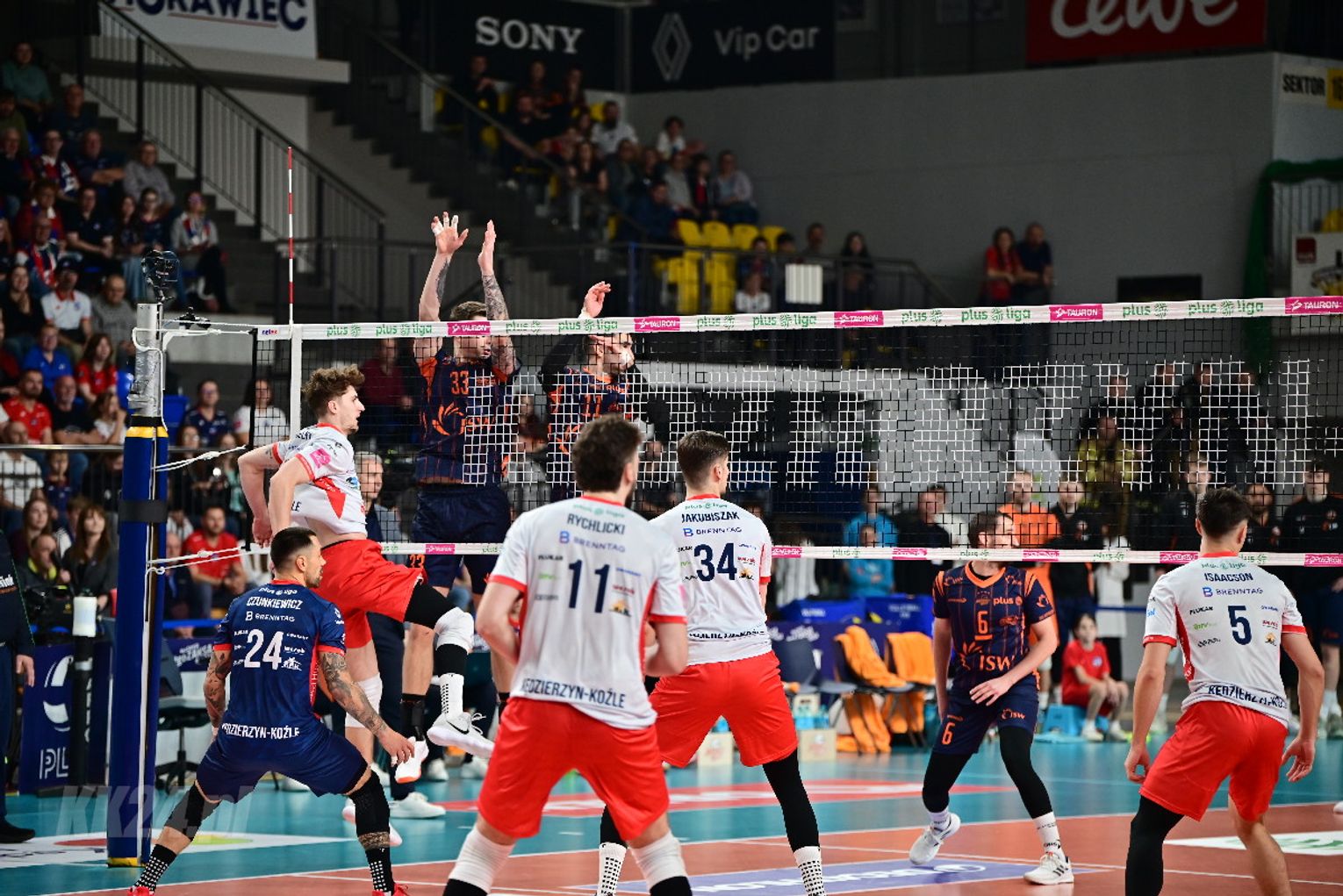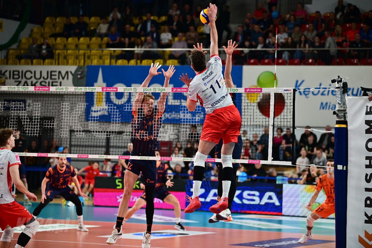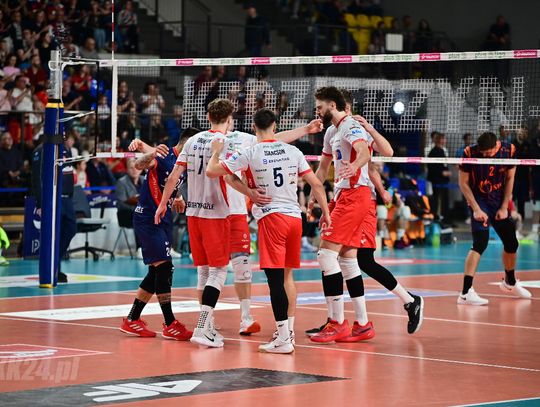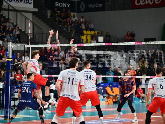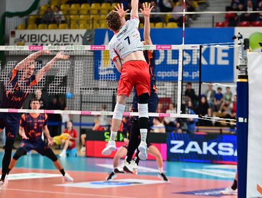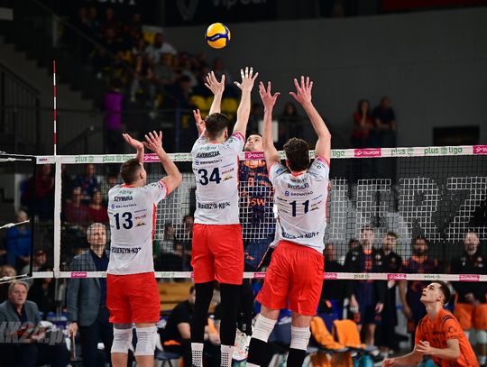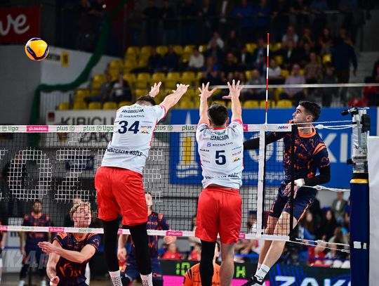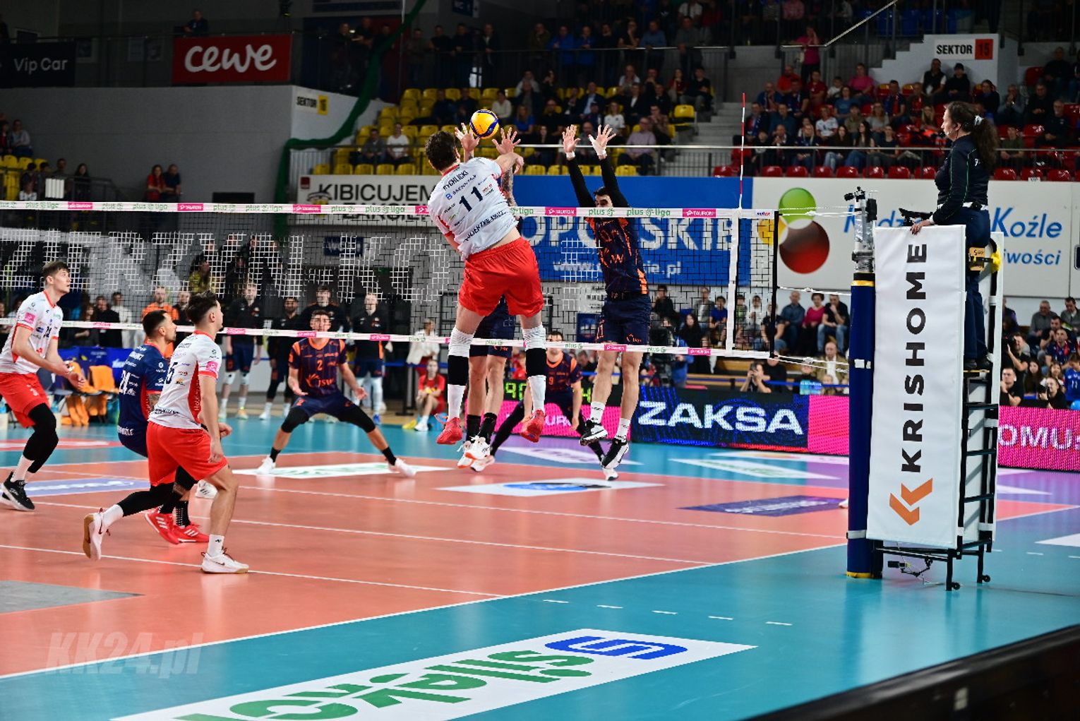 Po falstarcie w odsłonie trzeciej i prowadzeniu rywali 7:3 nasz zespół przystąpił do odrabiania strat. Jastrzębianie mieli problemy z przyjęciem zagrywek Quinna Isaacsona, kolejne punktowe bloki naszego zespołu pozwoliły zniwelować dystans (7:9). Niestety nie było to ostatnie słowo gości, również nasza drużyna nie ustrzegła się problemów w przyjęciu, punktowe zagrywki Bena Toniuttiego (7:12). Przy zmienności sytuacji kolejno odrabialiśmy straty (11:12), aby przy błędach własnych pozwolić uciec rywalom ponownie (11:14). Podobnie jak w drugiej partii meczu również tym razem podopieczni Andrei Gianiego przystąpili do ataku. Nie do zatrzymania w tej części meczu był Kamil Rychlicki, nasz atakujący zapunktował również blokiem, odzyskując kontakt punktowy na 13:14. Chwilę później kolejny punktowy blok naszego zespołu dał nam wyrównanie (17:17). Od tego momentu żadna z ekip nie była w stanie wypracować wyższego prowadzenia (21:21). Mimo trudnej końcówki nasz zespół po raz kolejny pokazał waleczność i charakter, w rywalizacji rozstrzyganej na przewagi czujna gra w bloku Quinna Isaacsona i ataki Igora Grobelnego wyprowadziły nas na prowadzenie (26:25). Seta i całe spotkanie zakończył Karol Urbanowicz (27:25).