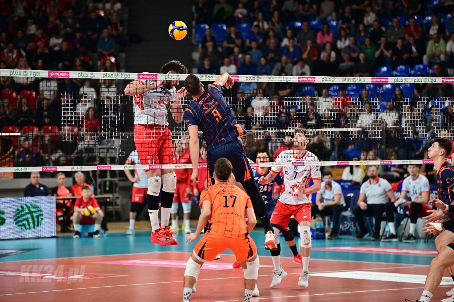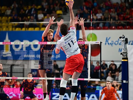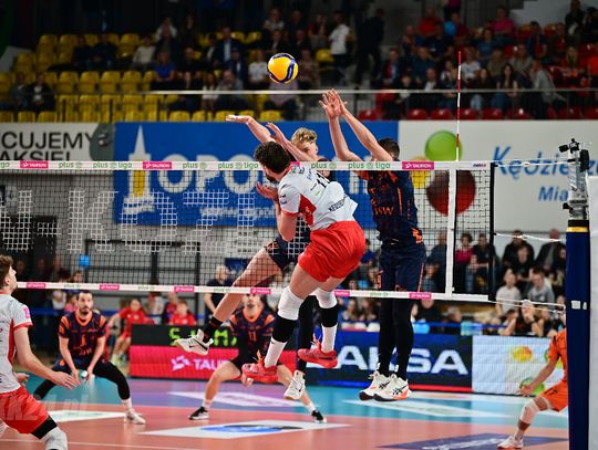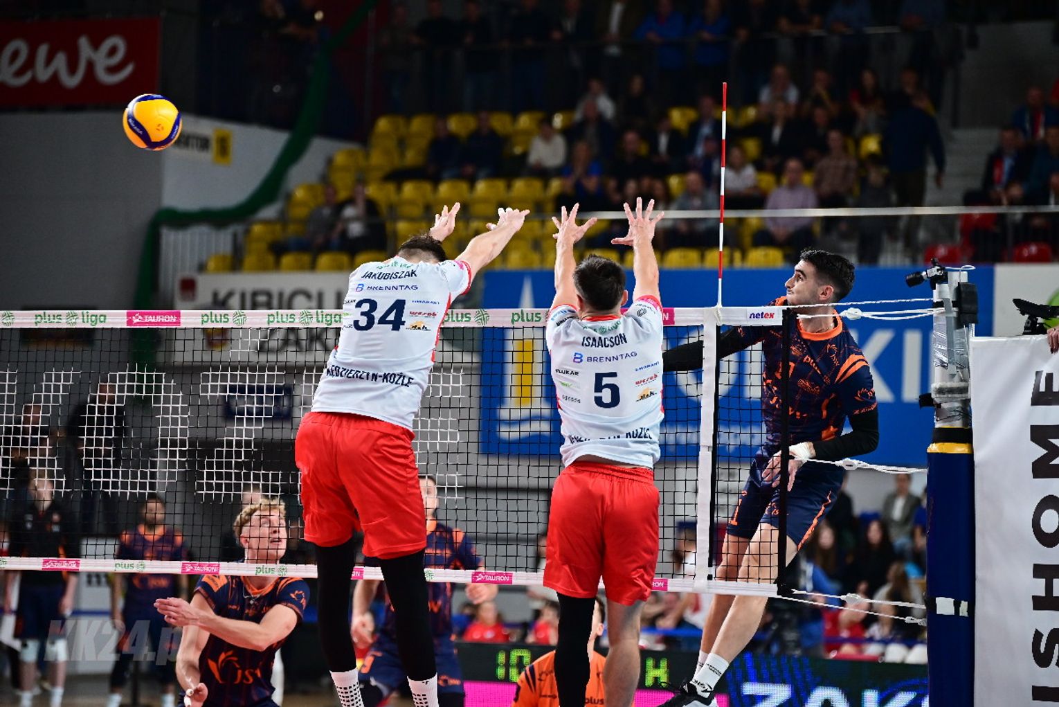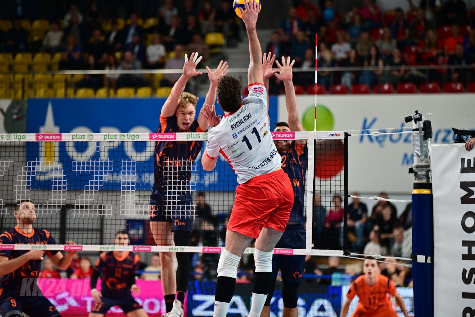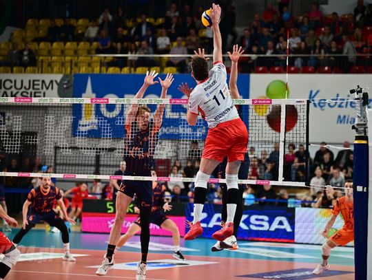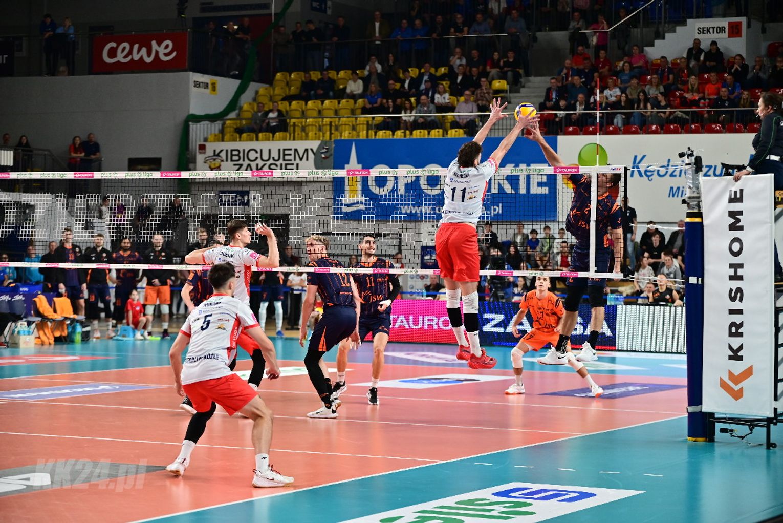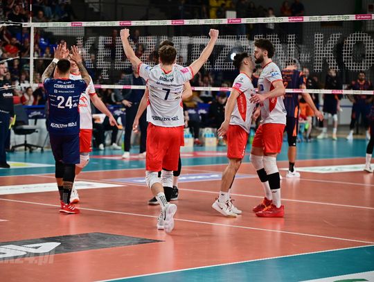Po falstarcie w odsłonie trzeciej i prowadzeniu rywali 7:3 nasz zespół przystąpił do odrabiania strat. Jastrzębianie mieli problemy z przyjęciem zagrywek Quinna Isaacsona, kolejne punktowe bloki naszego zespołu pozwoliły zniwelować dystans (7:9). Niestety nie było to ostatnie słowo gości, również nasza drużyna nie ustrzegła się problemów w przyjęciu, punktowe zagrywki Bena Toniuttiego (7:12). Przy zmienności sytuacji kolejno odrabialiśmy straty (11:12), aby przy błędach własnych pozwolić uciec rywalom ponownie (11:14). Podobnie jak w drugiej partii meczu również tym razem podopieczni Andrei Gianiego przystąpili do ataku. Nie do zatrzymania w tej części meczu był Kamil Rychlicki, nasz atakujący zapunktował również blokiem, odzyskując kontakt punktowy na 13:14. Chwilę później kolejny punktowy blok naszego zespołu dał nam wyrównanie (17:17). Od tego momentu żadna z ekip nie była w stanie wypracować wyższego prowadzenia (21:21). Mimo trudnej końcówki nasz zespół po raz kolejny pokazał waleczność i charakter, w rywalizacji rozstrzyganej na przewagi czujna gra w bloku Quinna Isaacsona i ataki Igora Grobelnego wyprowadziły nas na prowadzenie (26:25). Seta i całe spotkanie zakończył Karol Urbanowicz (27:25).