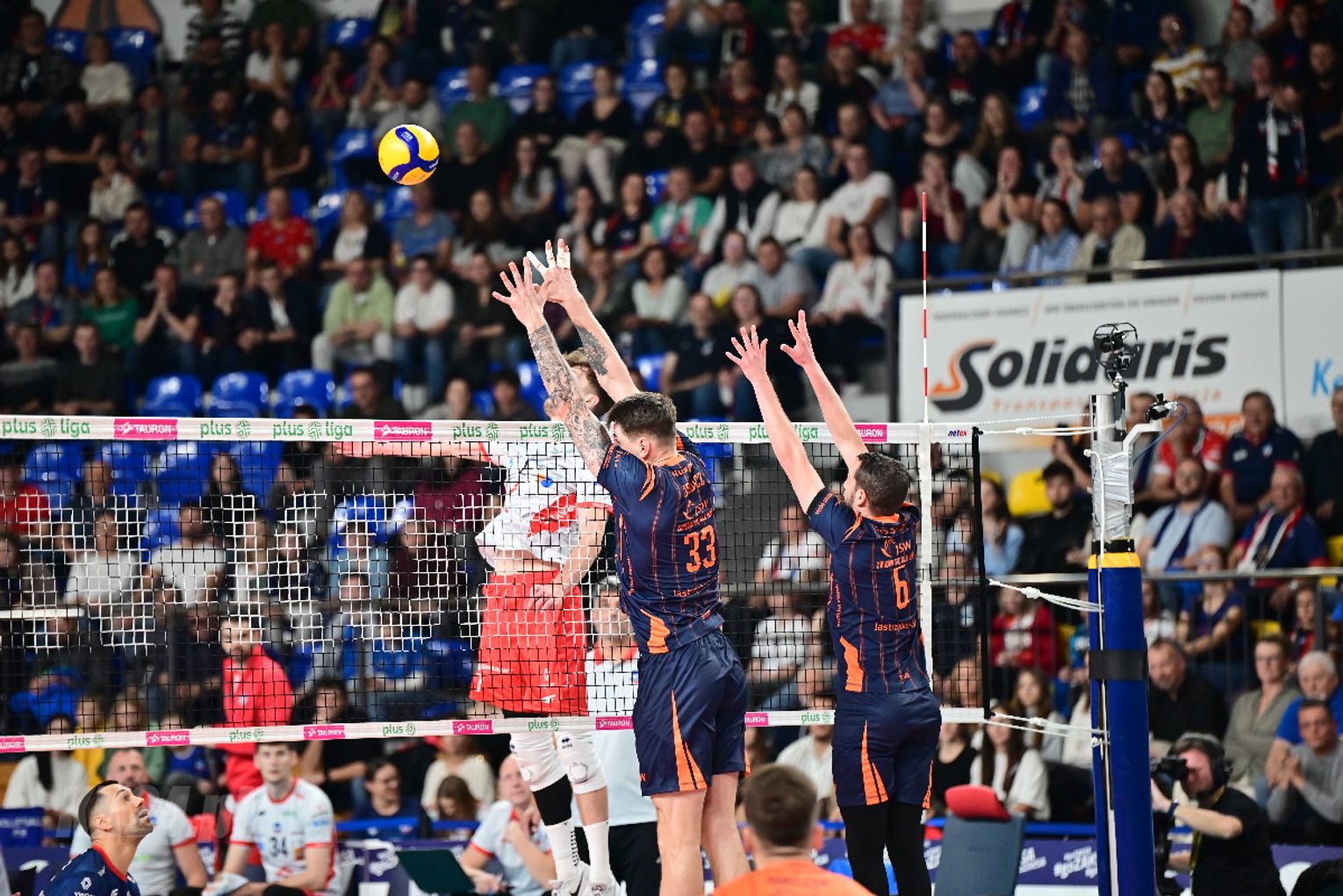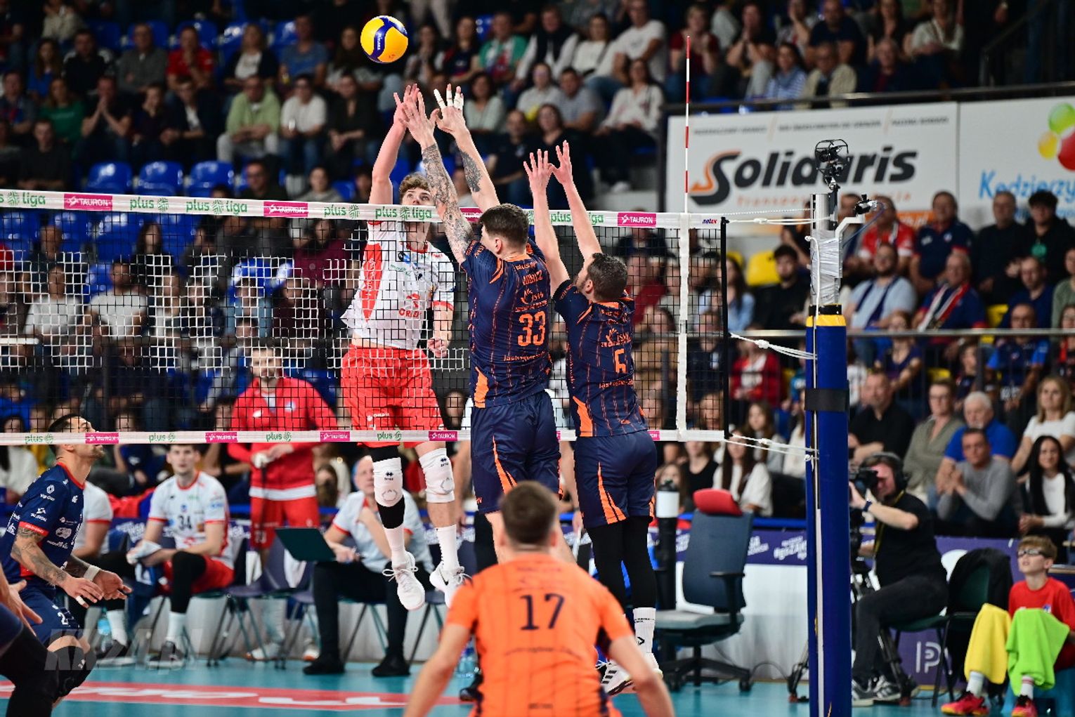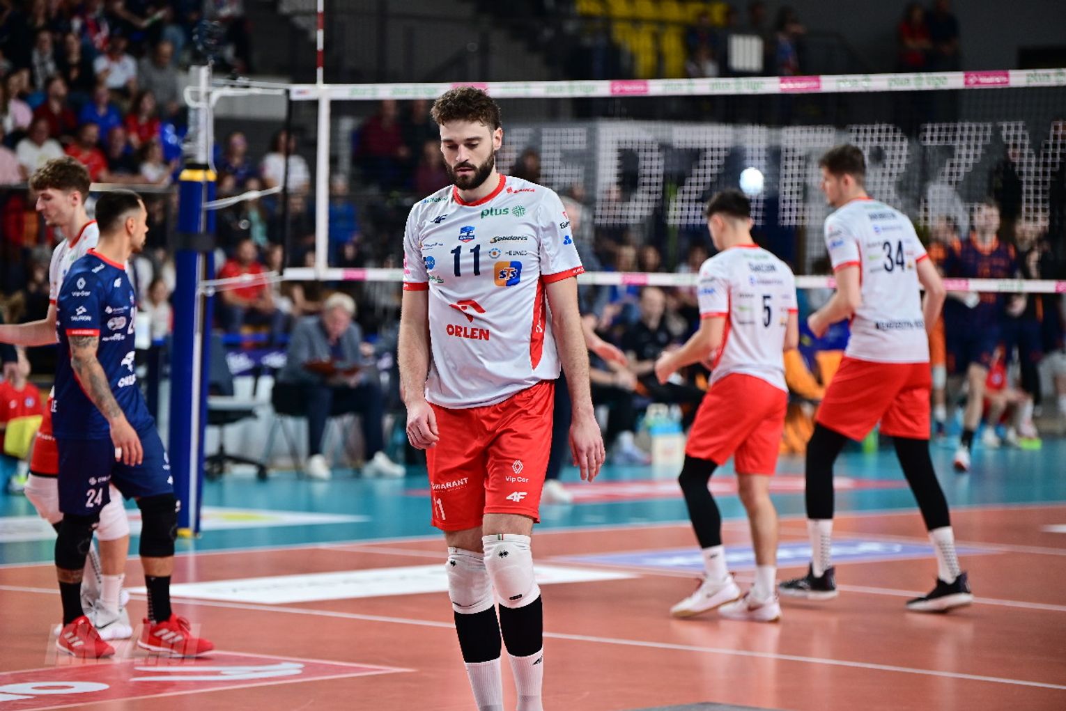 Równie wyrównany był drugi set spotkania, tym razem nieco lepszy start zapewnił rywalom Szerszeń, jednak kolejne zagrania Igora Grobelnego i as serwisowy Rafała Szymury doprowadziły do wyrównania (4:4). W tej części meczu swoje noty na środku siatki poprawił jeszcze Karol Urbanowicz, niestety w szeregi naszego zespołu wkradły się problemy z przyjęciem serwisu Szerszenia, co miało odzwierciedlenie na tablicy wyników (7:10). Nasz zespół z niewygodnego ustawienia wyprowadził Rafał Szymura, niestety nie był to koniec problemów i po ataku z przechodzącej piłki Kujundzicia dystans wzrósł do czterech oczek (8:12). Nasz zespół grał jednak cierpliwie, mocne ataki przeplatając technicznymi zagraniami i po ataku Igora Grobelnego z lewego skrzydła zmniejszyliśmy nieco stratę (12:14). Na skuteczne ataki naszego zespołu rywale odpowiadali błędami (15:17), niestety seria zagrywek Szerszenia dała ekipie trenera nieco oddechu przy prowadzeniu rywali 19:15 Andrea Giani postanowił przerwać grę. Po wznowieniu rywalizacji skutecznym atakiem popisał się Rafał Szymura. Kolejne akcje należały do naszego zespołu, przy celnych zagrywkach Karola Urbanowicza udało nam się odzyskać kontakt punktowy (18:19). W kluczowej fazie seta nie brakowało długich, zaciętych akcji, czujność naszego trenera przy wykorzystywaniu wideoweryfikacji dała nam wyrównanie na 20:20. Przy celne zagrywce Rafała Szymury wyszliśmy na prowadzenie, kolejne akcje należały do Karola Urbanowicza, seta zakończył autowy atak Lorenca (25:23).