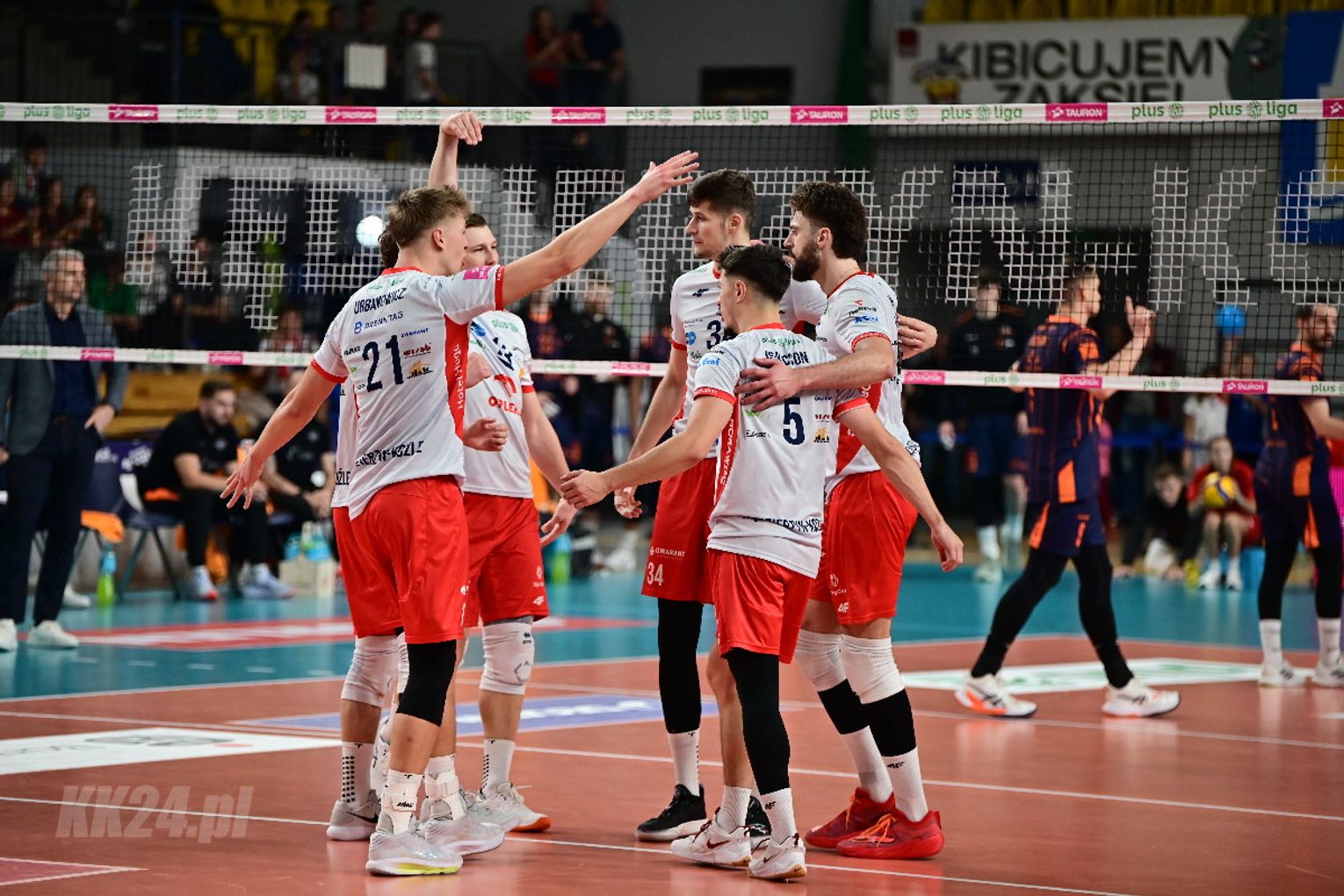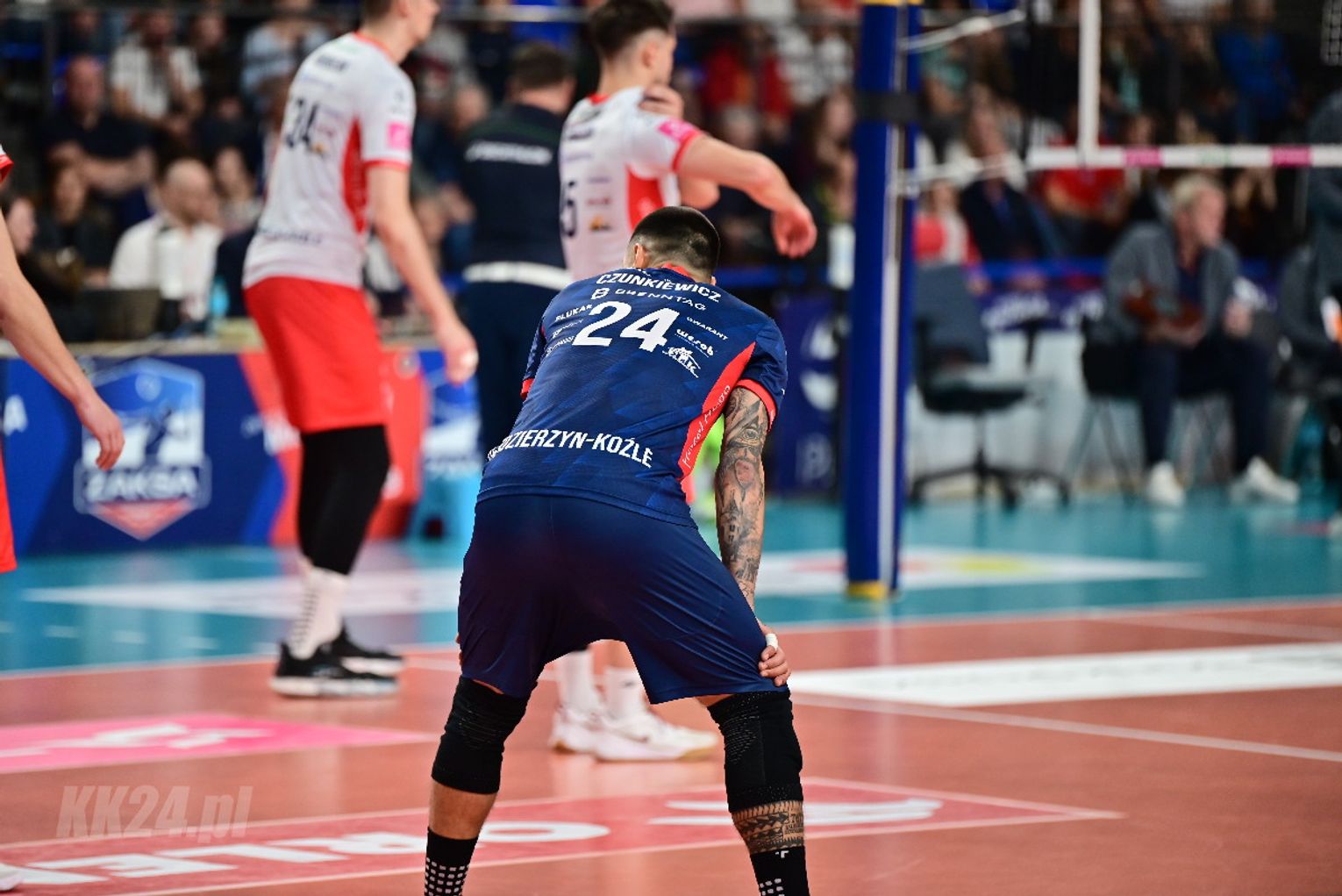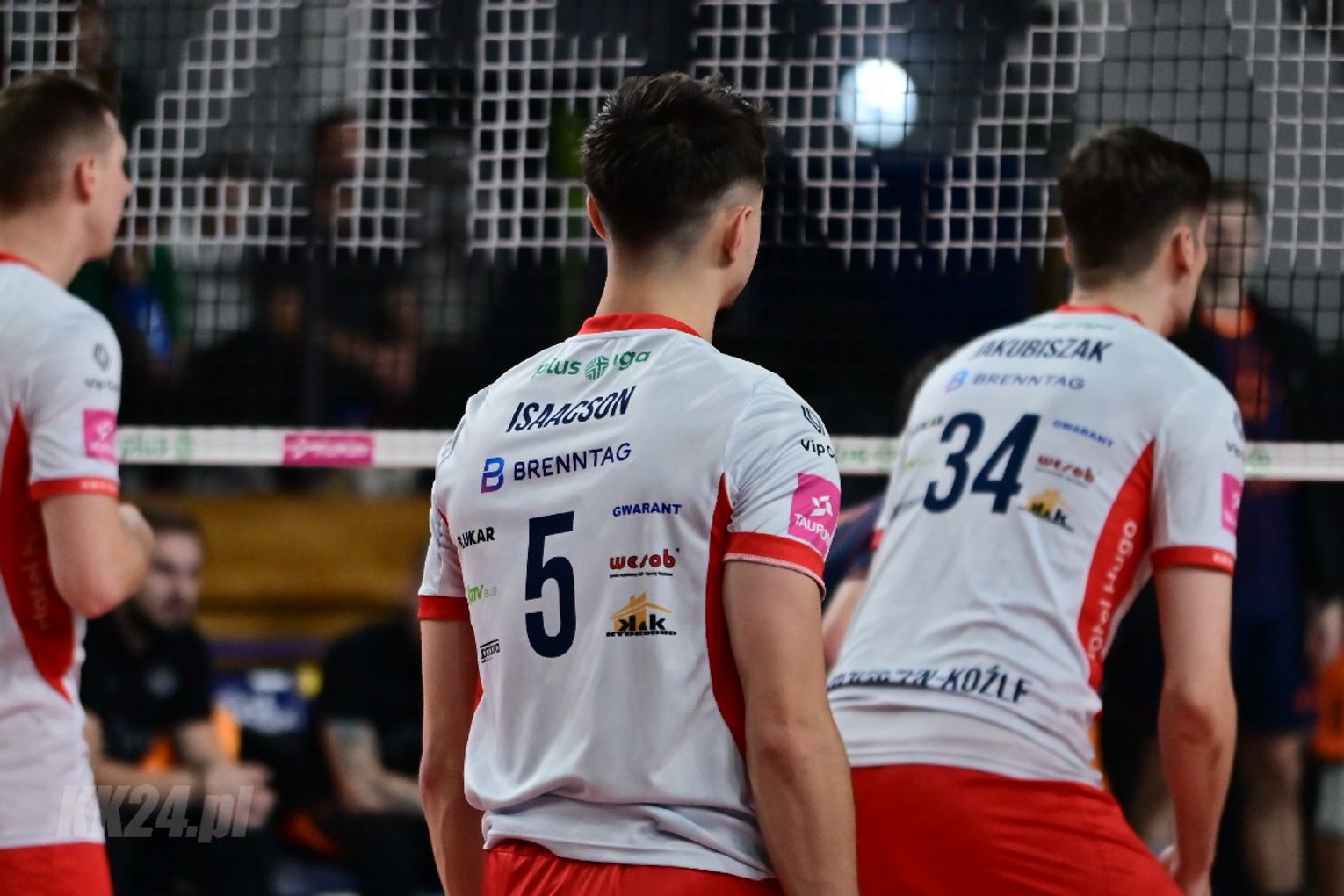 Mecz rozpoczęliśmy składem: Quinn Isaacson, Kamil Rychlicki, Karol Urbanowicz, Szymon Jakubiszak, Rafał Szymura, Igor Grobelny, Mateusz Czunkiewicz (libero).