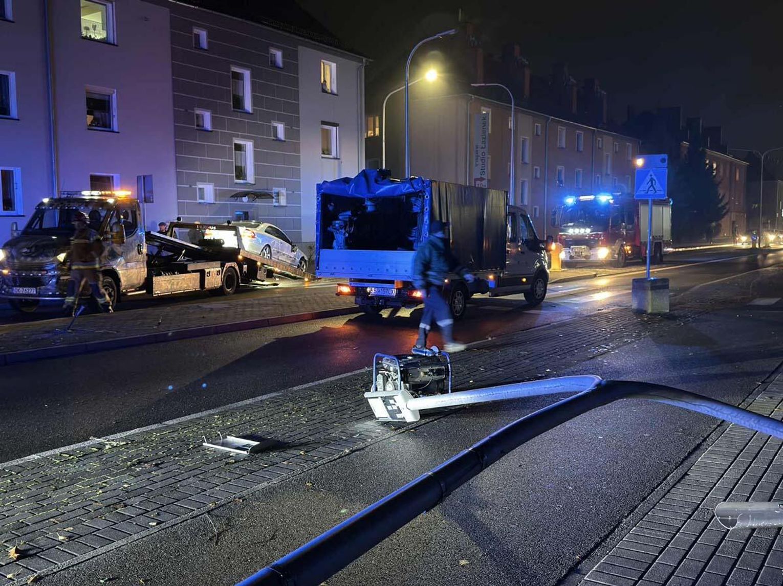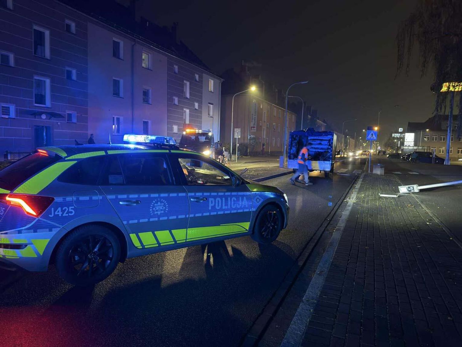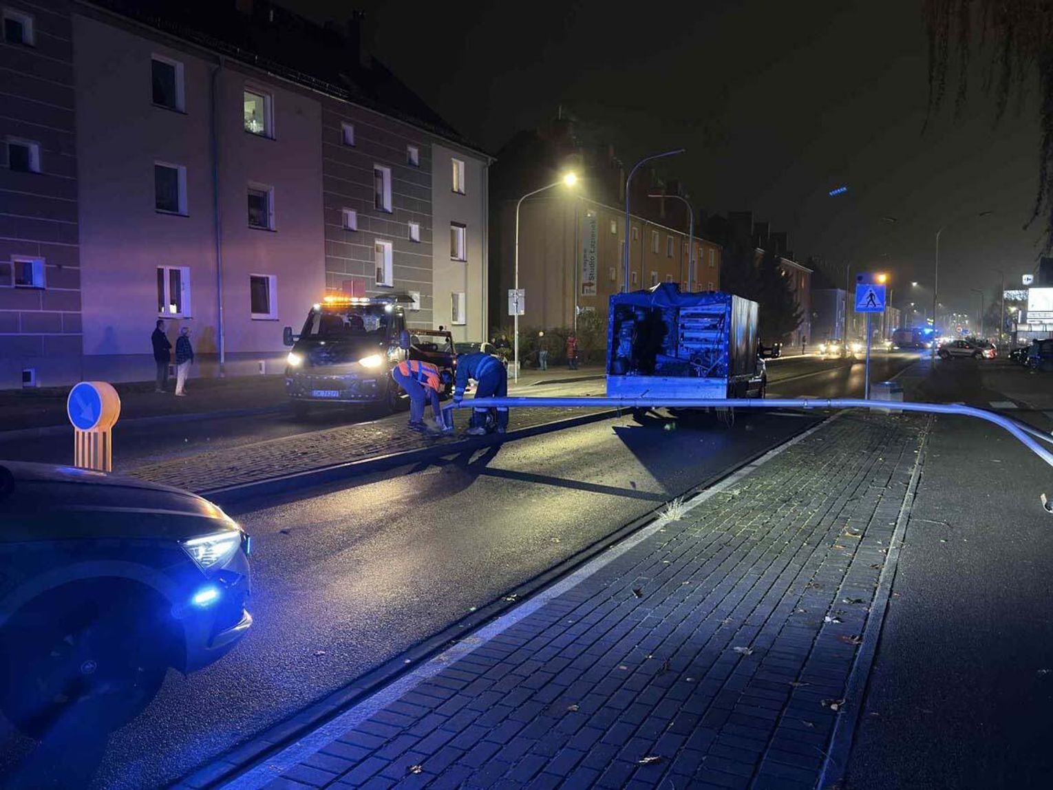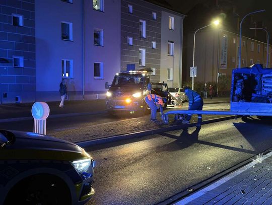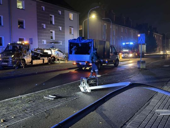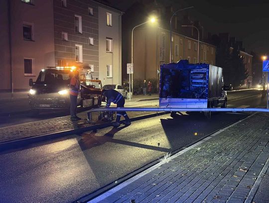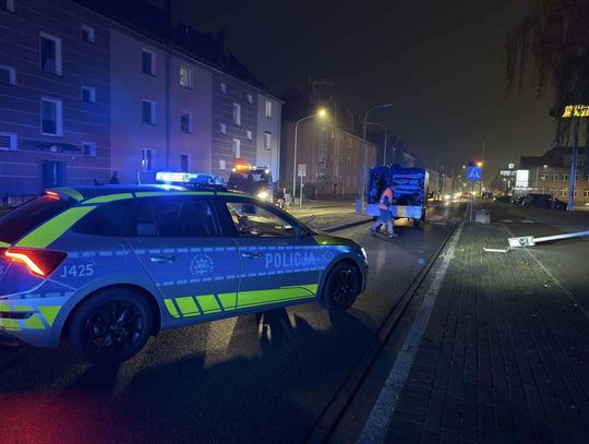 Niecodzienne zdarzenie drogowe na ulicy Kozielskiej. Po kolizji latarnia przewróciła się na jezdnię.