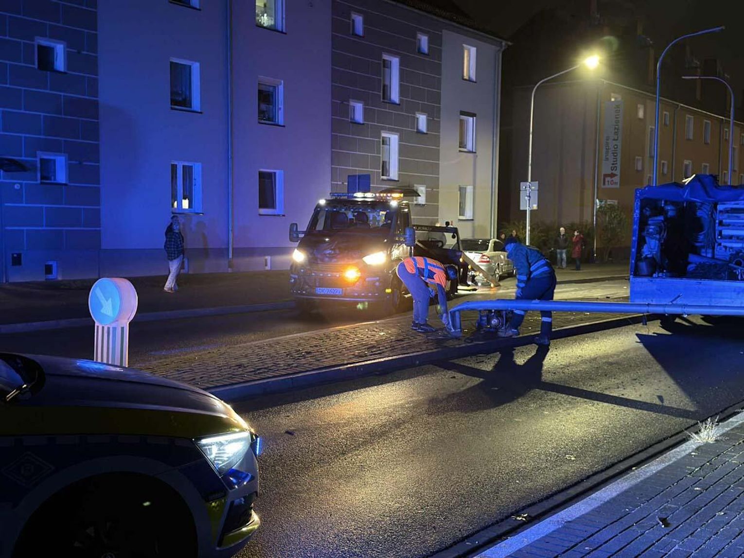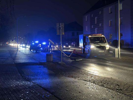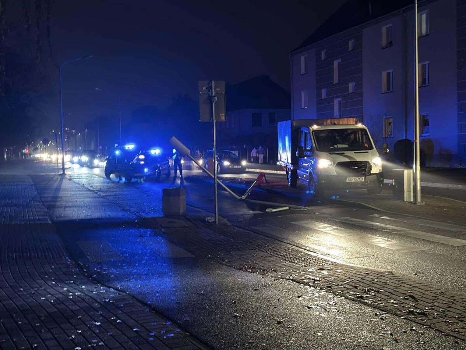 Kobieta w mercedesie "skosiła" latarnię na ulicy Kozielskiej. Słup upadł na jezdnię i zablokował ruch