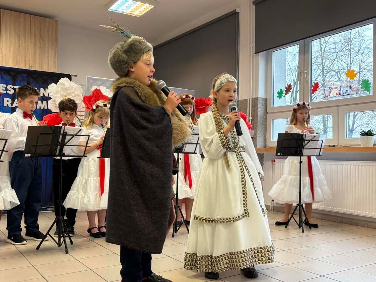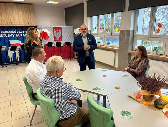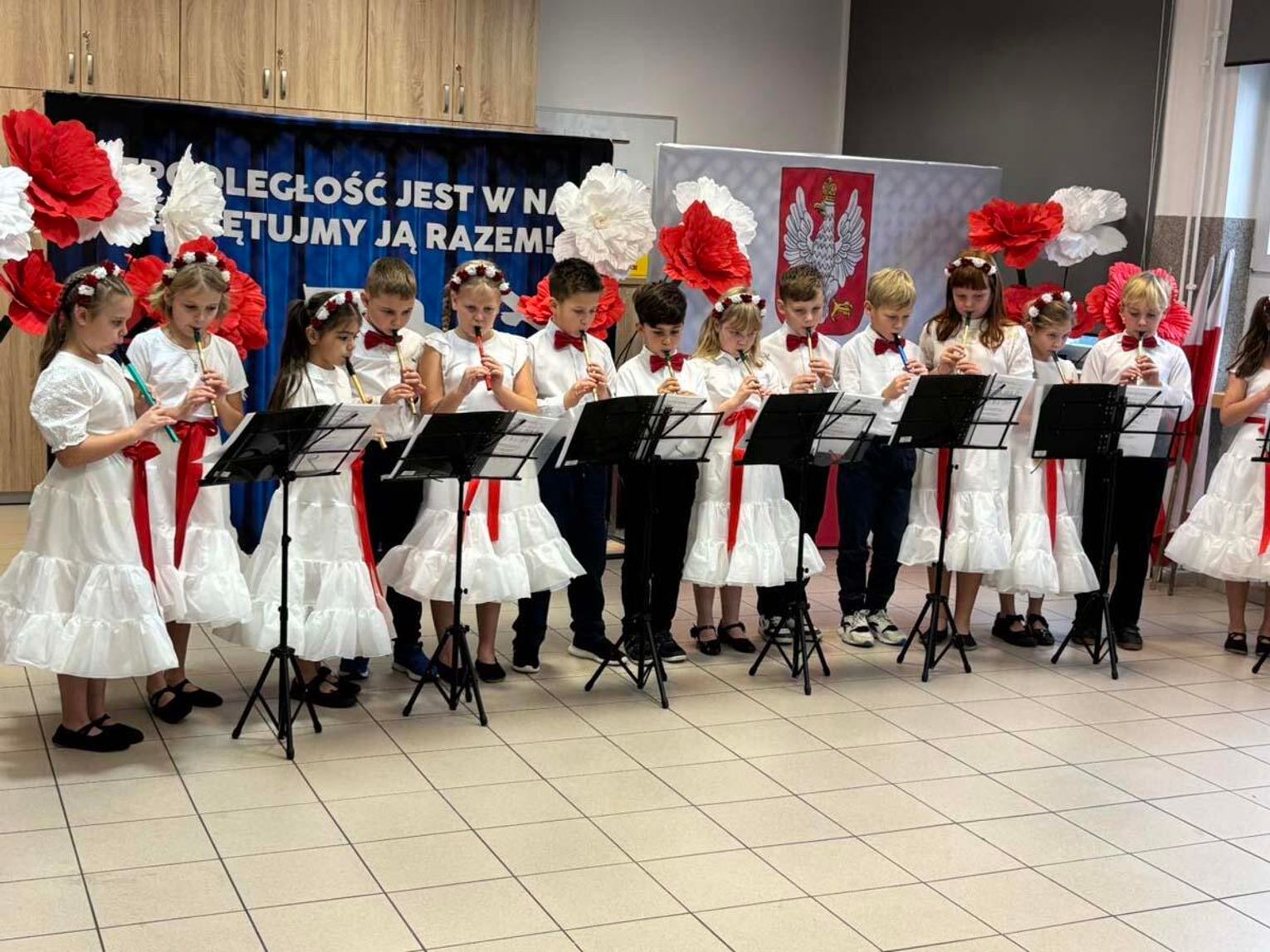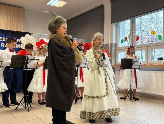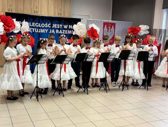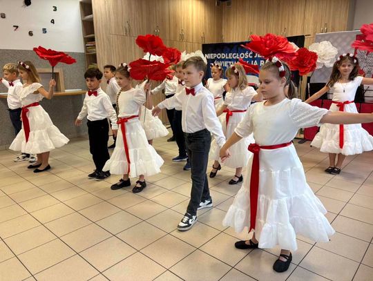 Miłą uroczystość oddania sali do użytku swoim występem uświetnili uczniowie z programem nawiązującym do obchodów rocznicy odzyskania Niepodległości.