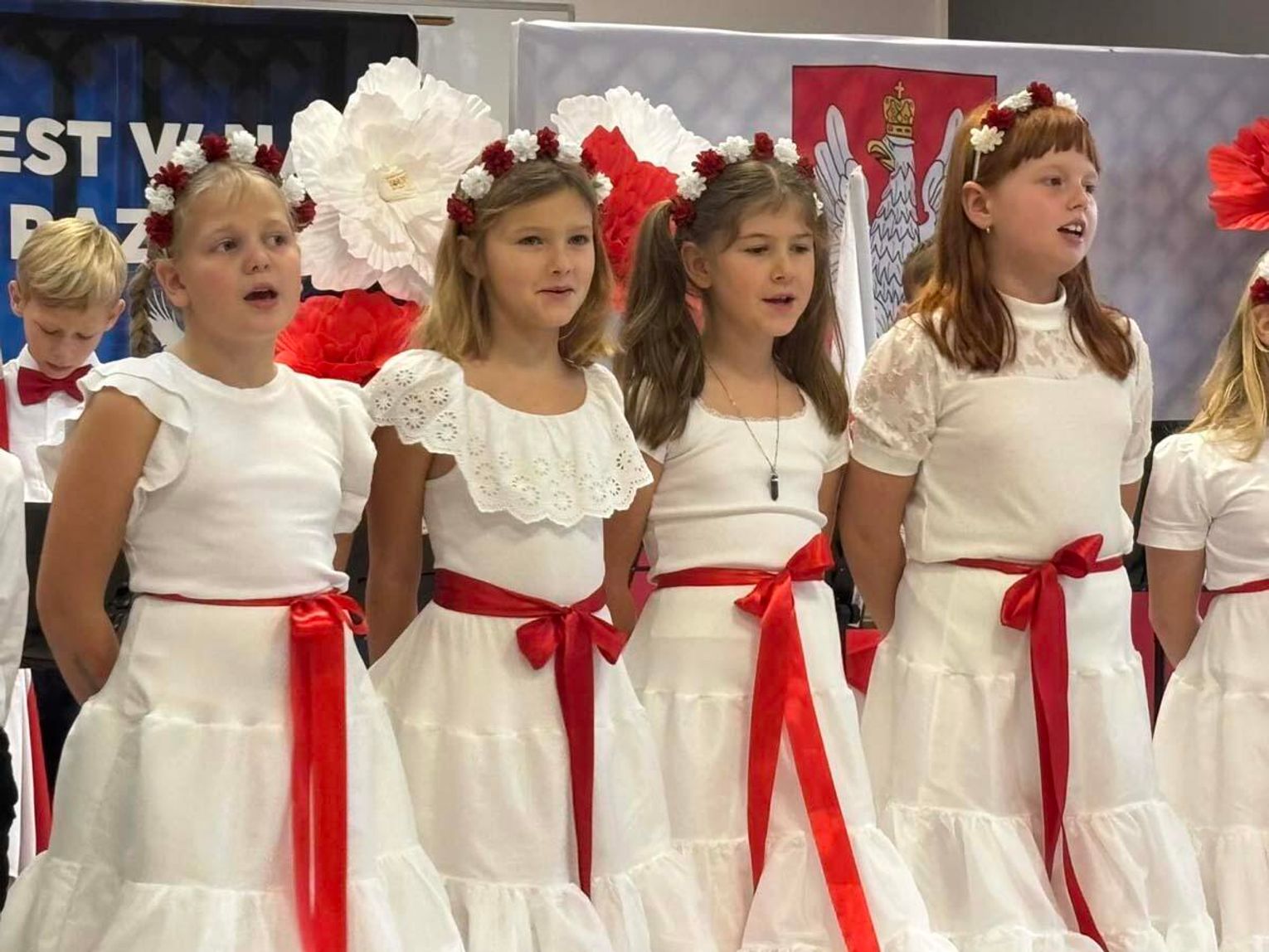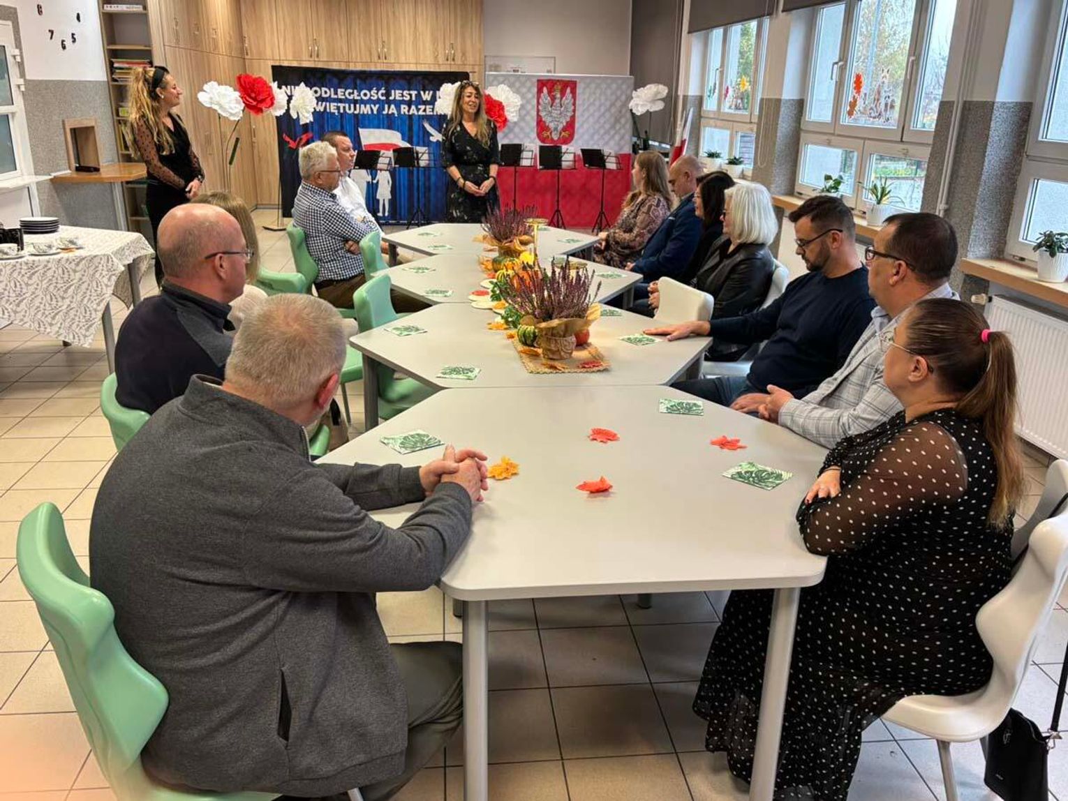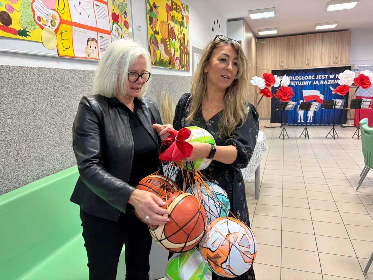 Miłą uroczystość oddania sali do użytku swoim występem uświetnili uczniowie z programem nawiązującym do obchodów rocznicy odzyskania Niepodległości.