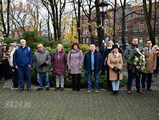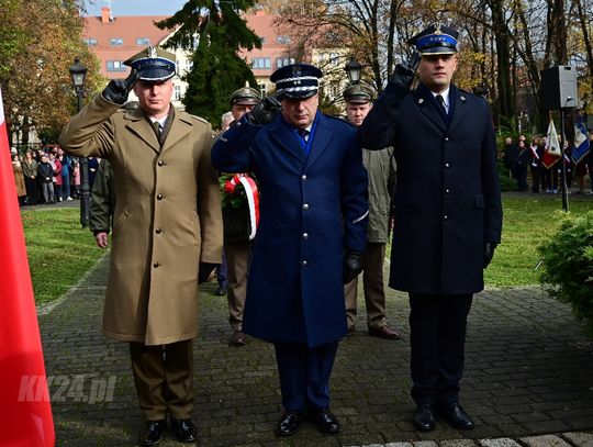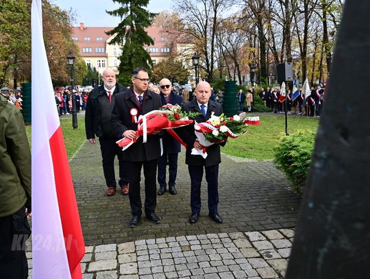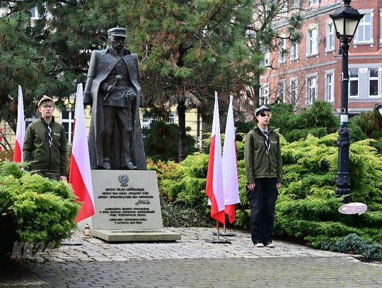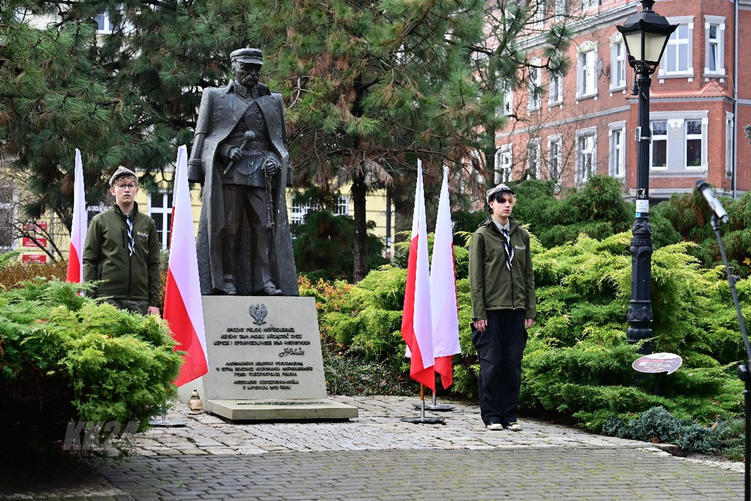 Uroczystości rozpoczęły się od odśpiewania hymnu państwowego. Następnie pod pomnikiem Marszałka Józefa Piłsudskiego złożono wieńce i kwiaty, oddając w ten sposób hołd tym, którzy walczyli o wolność Ojczyzny.