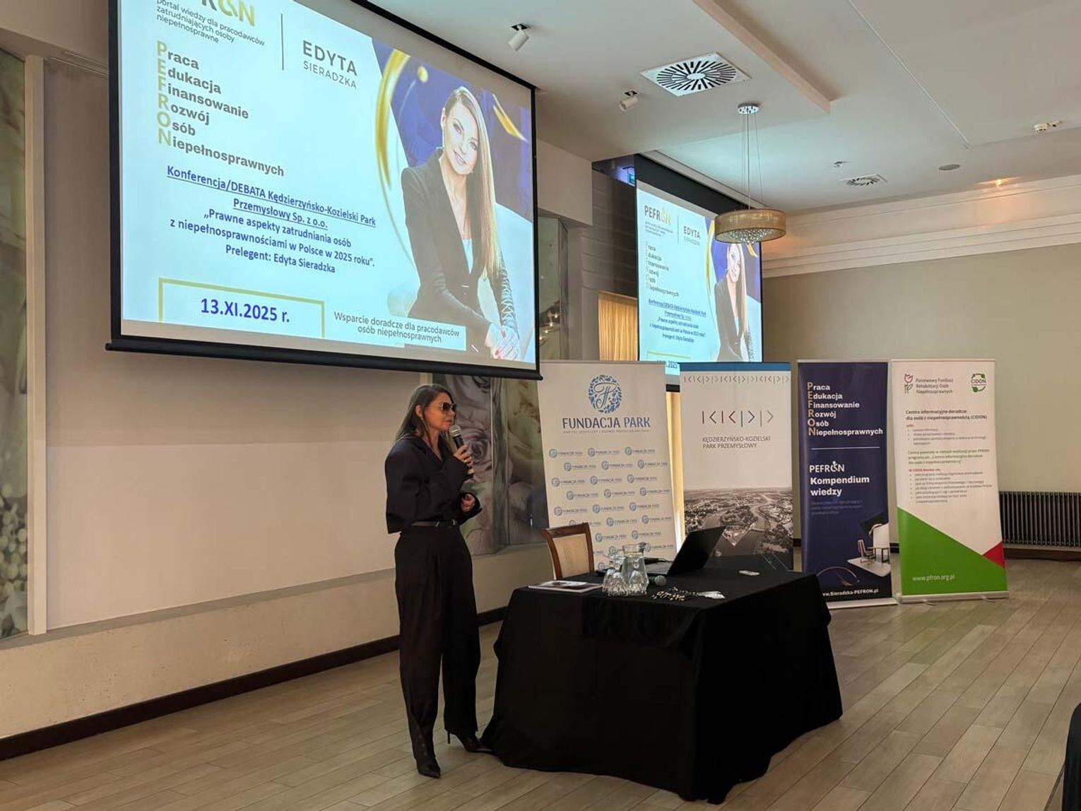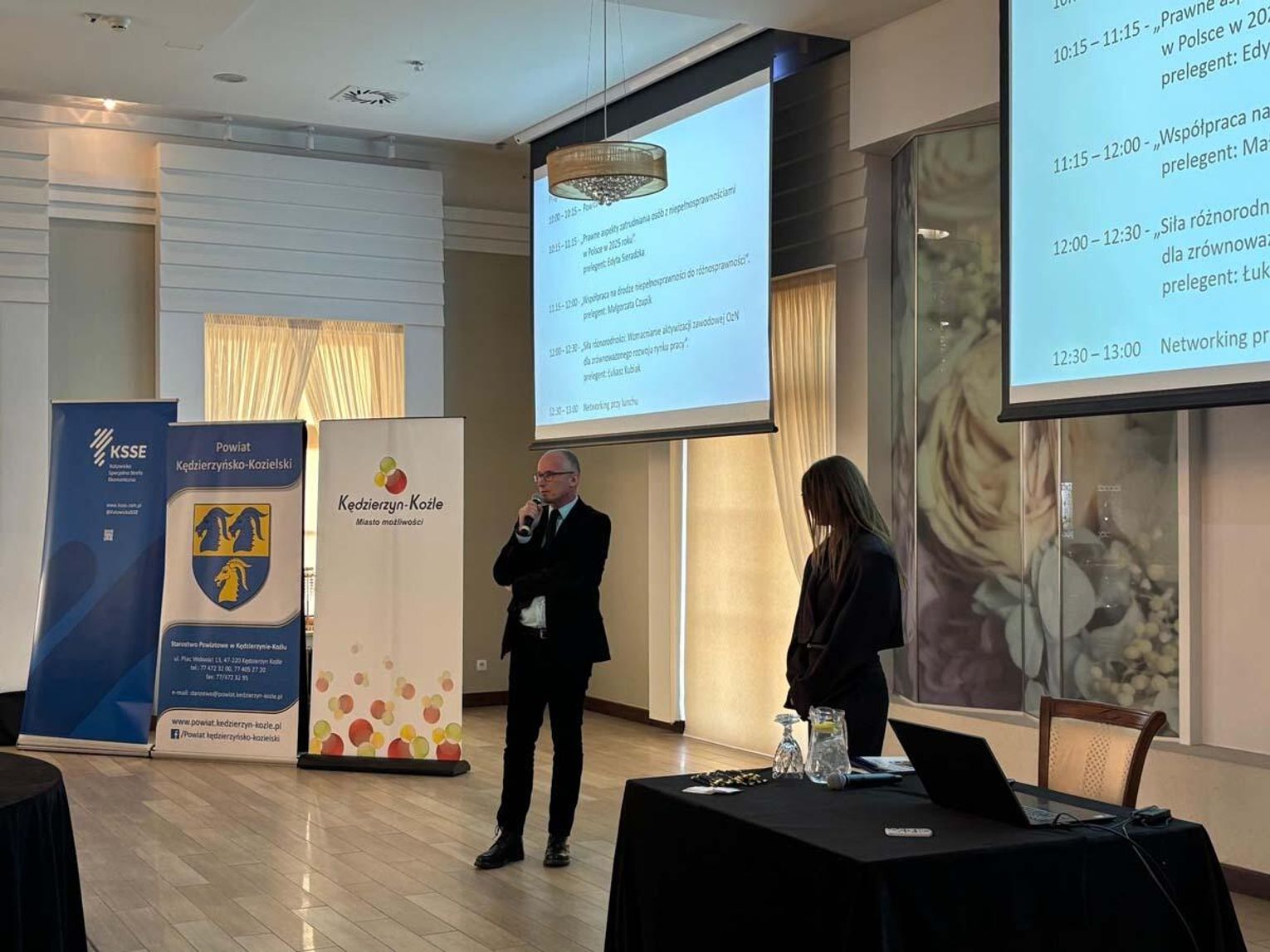 Prelegenci przedstawili dane i wskaźniki dotyczące zatrudniania osób z niepełnosprawnościami, wskazując zarówno na wymierne korzyści biznesowe, jak i społeczne. Jednocześnie odwoływali się do perspektywy osobistej – historii wielu osób, które mimo swoich ograniczeń posiadają cenne kompetencje, a przede wszystkim silną motywację do podjęcia pracy.
