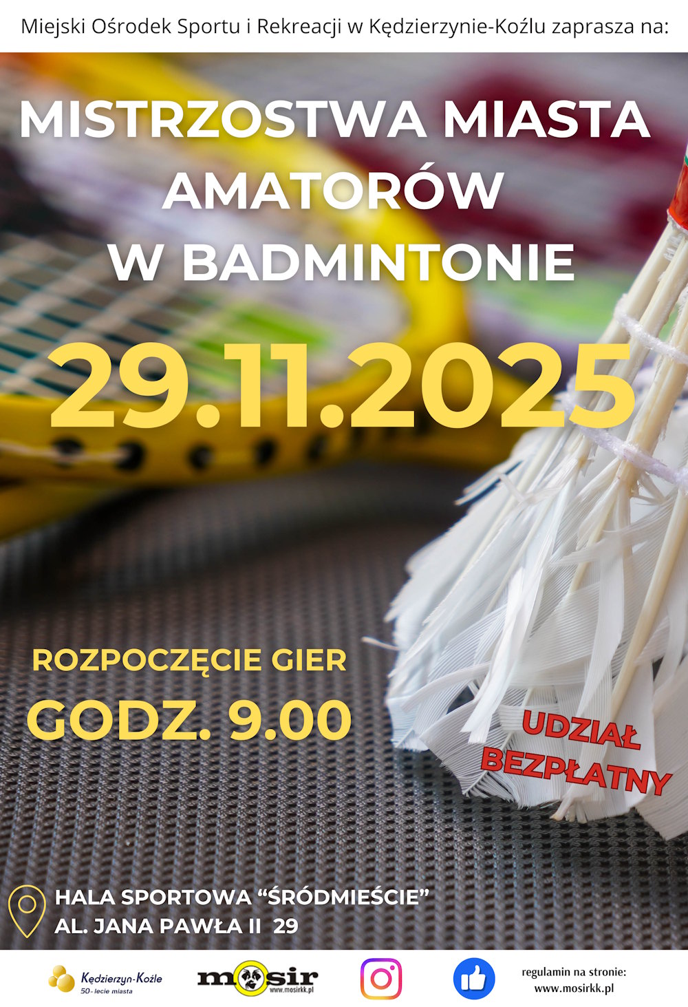 Zgłoszenia przyjmowane są do wtorku, 25 listopada, do godz. 12:00, wyłącznie drogą mailową pod adresem: [email protected]. Regulamin turnieju oraz szczegółowe informacje dostępne są na stronie Miejskiego Ośrodka Sportu i Rekreacji w Kędzierzynie-Koźlu (kliknij, aby przejść).