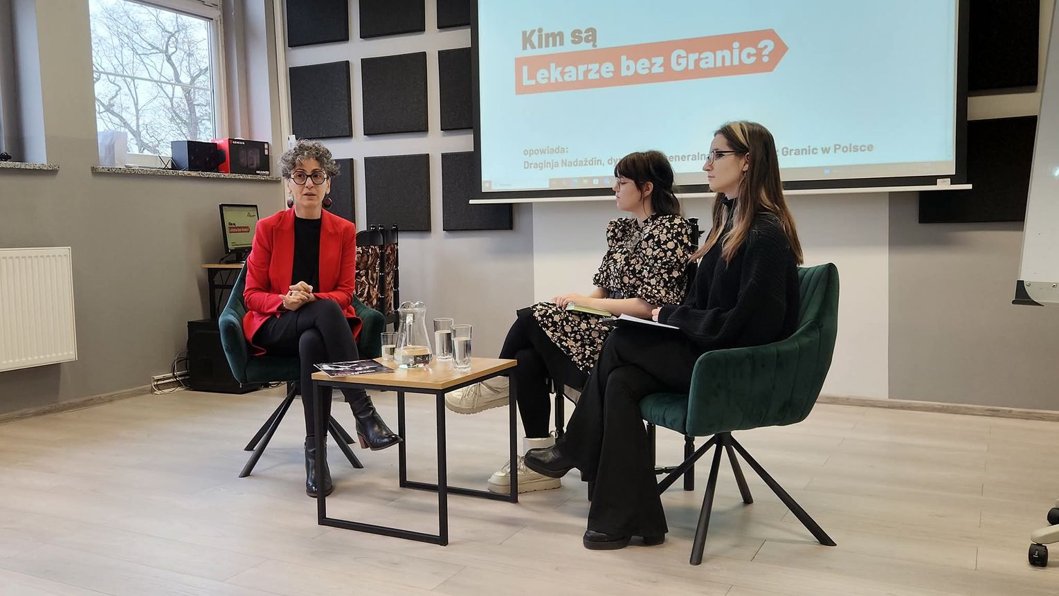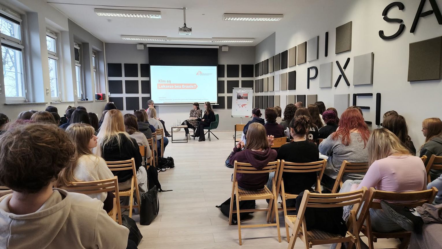 Podczas spotkania uczniowie mogli poznać kulisy pracy lekarzy i wolontariuszy działających w najtrudniejszych miejscach świata. Draginja Nadaždin opowiadała o misjach, wyzwaniach i ludziach, którym Lekarze Bez Granic codziennie ratują życie.