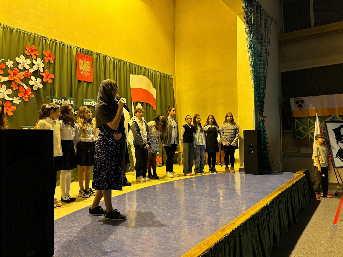 Przestrzeń wypełniona pieśniami niepodległościowymi, recytacjami i narodową symboliką zamieniła się w scenę hołdu dla Polski i tych, którzy walczyli o jej wolność. Wieczornica stała się nie tylko uroczystością, lecz także żywą lekcją patriotyzmu.