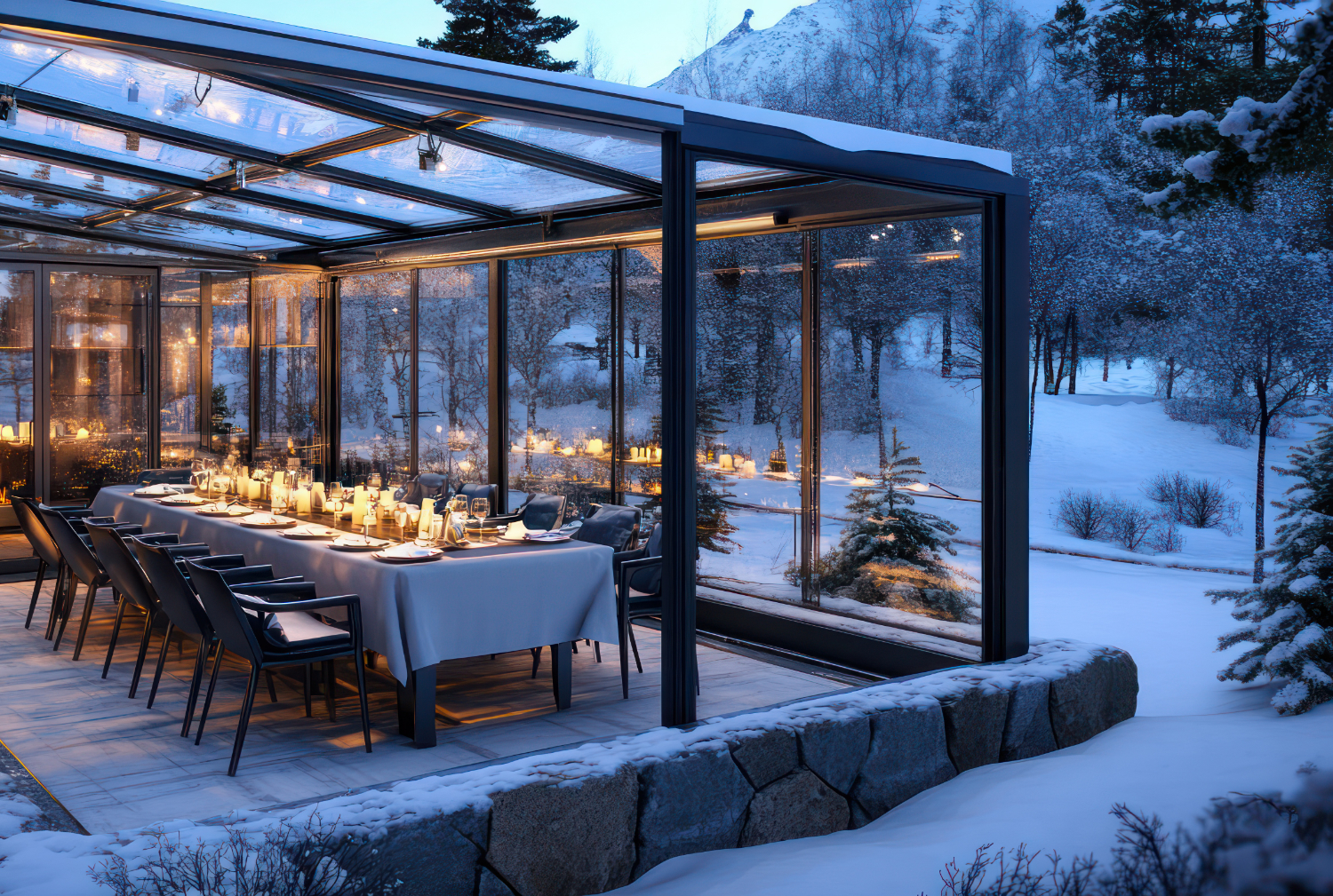 Aluminiowa konstrukcja zadaszenia tarasowego zapewnia stabilność. Nie boi się wiatru ani obciążenia śniegiem, a dobrze spasowane elementy minimalizują ryzyko przecieków. Takie zadaszenie możesz rozbudować o rolety zewnętrzne, screeny lub przesuwne szklenia. W ten sposób zyskujesz przestrzeń, która działa niemal przez cały rok i nie generuje wysokich kosztów. To rozwiązanie często wybierają lokale gastronomiczne. Daje im pewną ochronę przed pogodą, a jednocześnie spełnia wymagania sanitarno-epidemiologiczne.