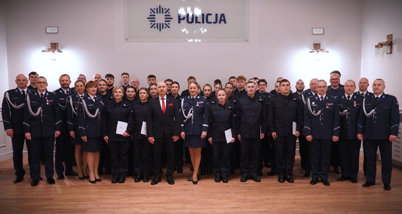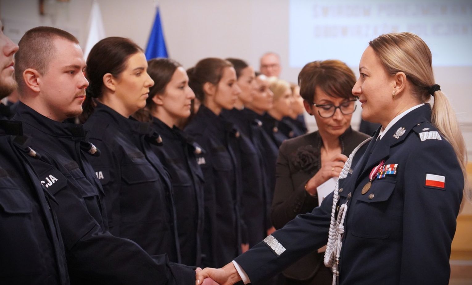 W sali im. insp. Wiktora Ludwikowskiego odbyło się dziś (01.12) uroczyste ślubowanie nowo przyjętych policjantów. W gronie uczestników znaleźli się ich przyszli przełożeni oraz rodziny. Nadinsp. Magdalena Nguyen-Fudala podkreśliła, że służba w Policji to droga wymagająca. Stawia wysokie oczekiwania, żąda odpowiedzialności oraz odwagi i konsekwencji. Pani Komendant podkreśliła, że obecność nowo przyjętych funkcjonariuszy świadczy o ich determinacji, dojrzałości i świadomym wyborze tej ścieżki. Głos zabrał także Wicewojewoda Opolski Sławomir Gradzik, który w swoim wystąpieniu życzył nowym policjantom powodzenia w realizacji zadań służbowych.