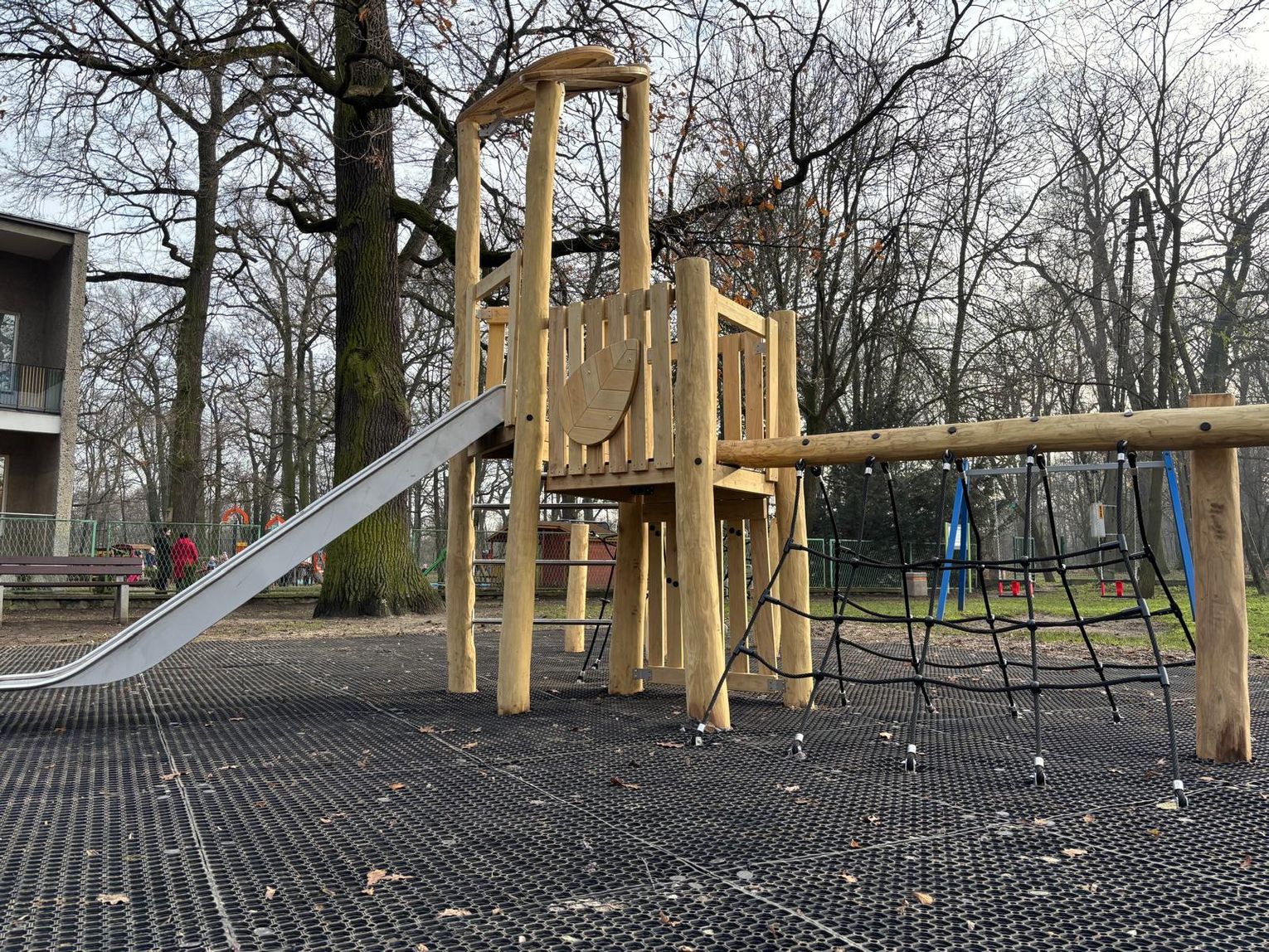 W trakcie robót zdemontowano najbardziej zużyte elementy, część urządzeń poddano renowacji, a na placu pojawiły się również zupełnie nowe atrakcje. Dzieci mogą korzystać m.in. z wysokiego zestawu wspinaczkowego dla starszych użytkowników oraz z bujaka. Teren został także doposażony w dodatkowe kosze na śmieci, tablicę z regulaminem oraz stojak na rowery.