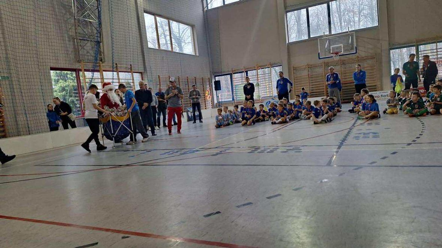 Od pierwszego gwizdka było jasne, że wszyscy przyjechali tu nie tylko po rywalizację, ale przede wszystkim po dobrą zabawę. Po ostatnim meczu, gdy emocje nieco opadły, Mikołaj wkroczył na parkiet, by nagrodzić zawodników za ich waleczność, energię i uśmiechy. Każde dziecko otrzymało pamiątkowy medal i upominek.