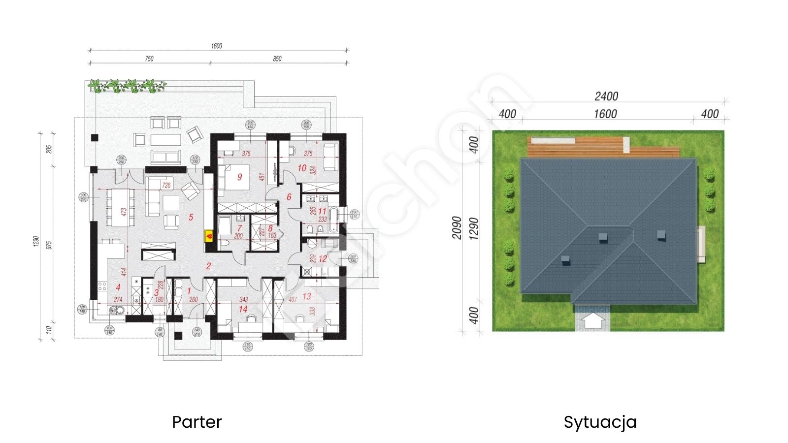minimalne wymiary działki: 24,0 m x 20,9 m