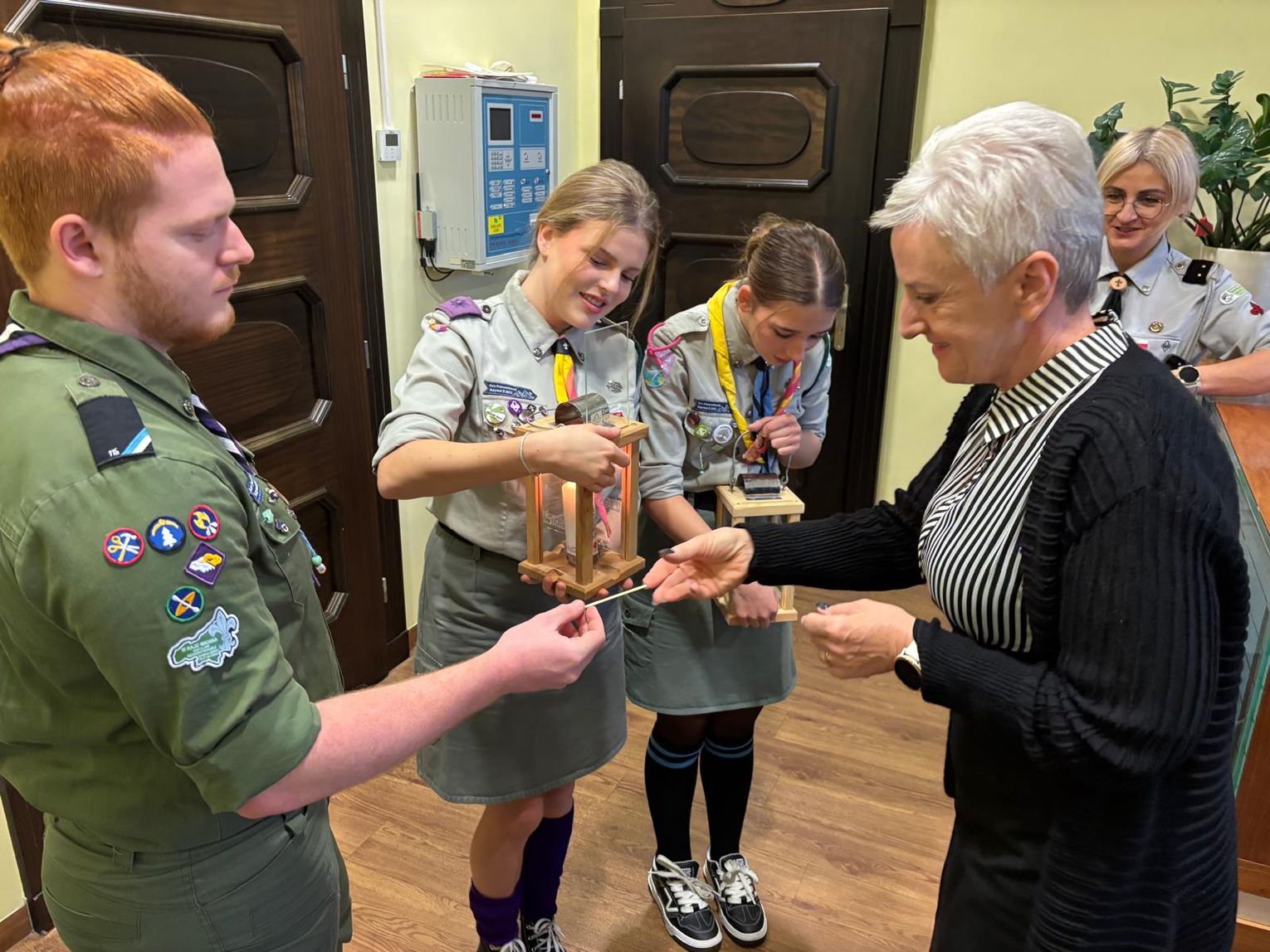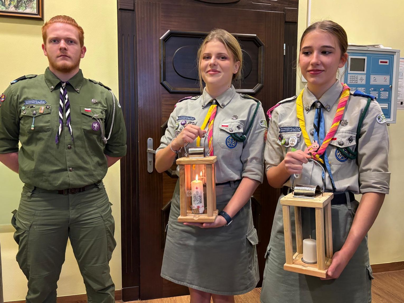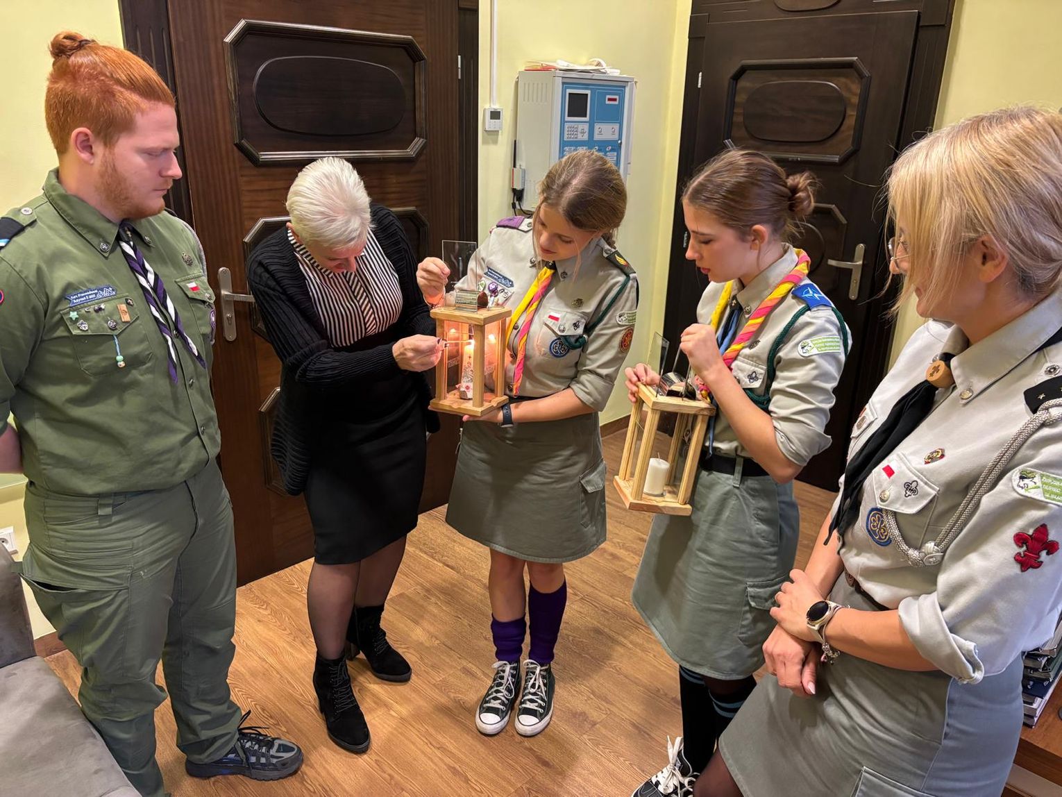 Ogień, który niesie radość w imieniu mieszkańców odebrała prezydent Sabina Nowosielska. Jego płomień przywędrował do urzędu miasta aż z Groty Narodzenia Pańskiego. To właśnie tam, co roku odpala się jedną malutką świeczkę, której światło niesione przez skautów obiega świat.