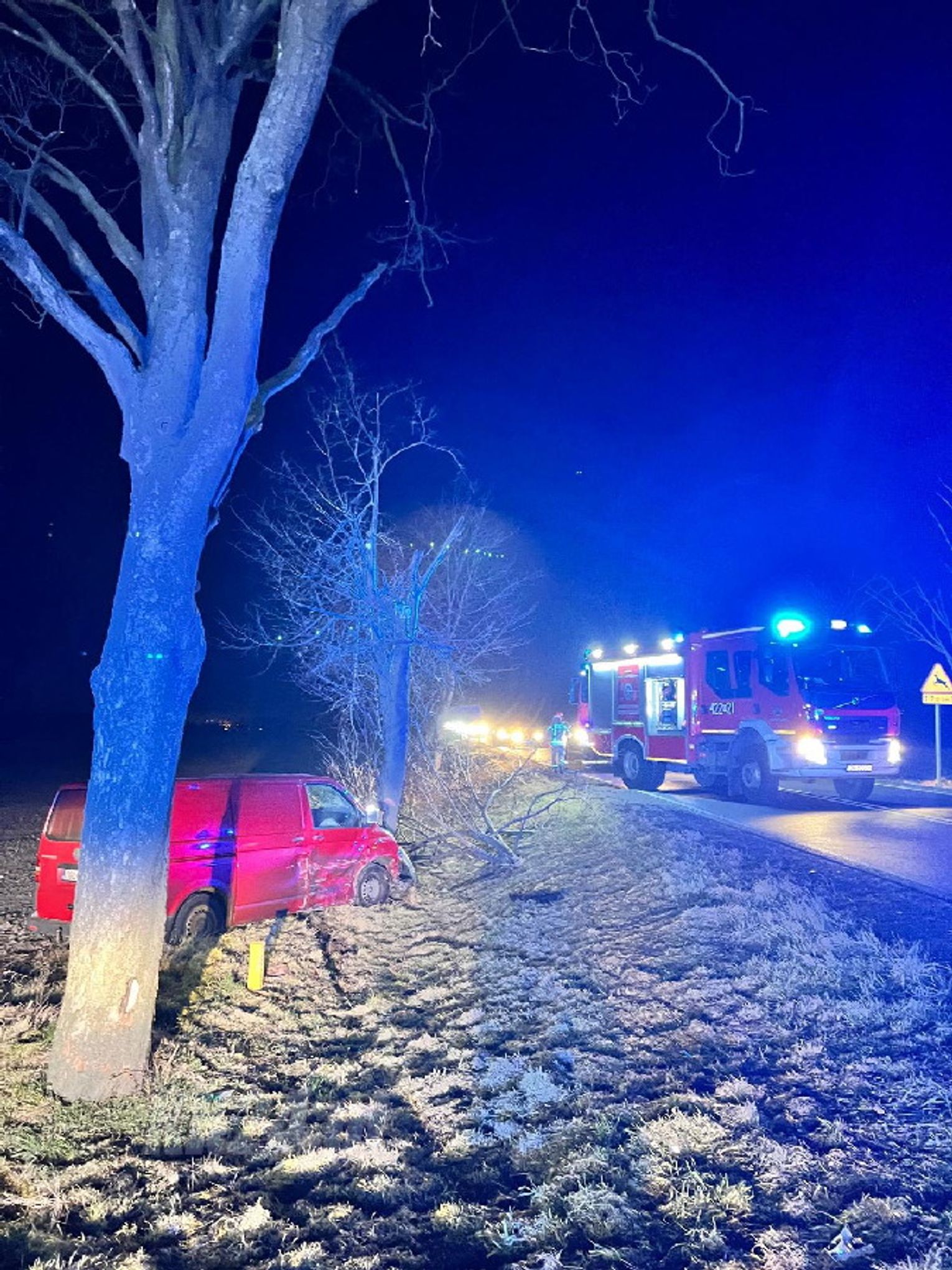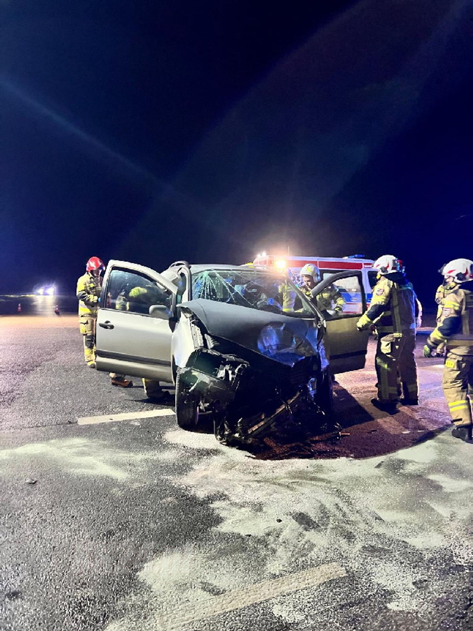 W wypadku brało udział łącznie pięć osób, w tym jedna osoba nieletnia. W kolizji uczestniczyły samochód osobowy marki Ford Galaxy oraz samochód dostawczy Volkswagen Transporter. Na miejsce zdarzenia skierowano służby ratunkowe - straż pożarną, Zespół Ratownictwa Medycznego oraz policję. Strażacy zabezpieczyli miejsce wypadku, odłączyli akumulatory w uszkodzonych pojazdach, zneutralizowali wycieki płynów eksploatacyjnych oraz usunęli z jezdni rozbite elementy karoserii i szkło.