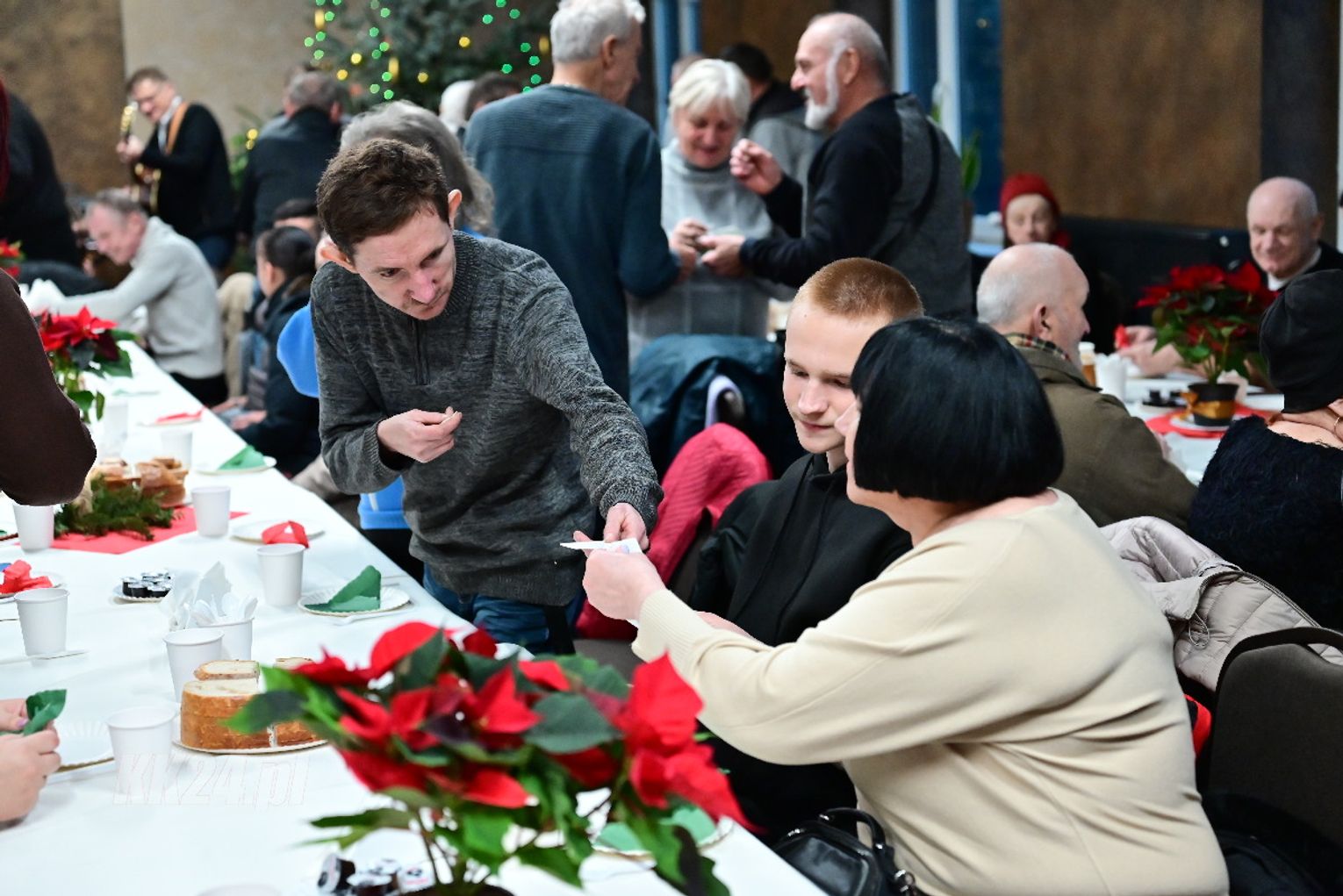 Parafia dziękuje również za ofiary przekazywane za pośrednictwem ofiaromatu, dary składane do Kosza Miłosierdzia, a także za pomoc okazaną podczas zbiórek prowadzonych w sklepach, takich jak Biedronka i Carrefour. Wyrazy wdzięczności skierowano także do osób zaangażowanych w akcję „Rodzina Rodzinie”, darczyńców słodyczy dla dzieci, przekazanej mąki, żywności, chleba i ciast na wieczerzę wigilijną, a także ofiarodawców choinek. Parafialna Wigilia dla ubogich po raz kolejny pokazała, że wspólnota Parafii św. Eugeniusza de Mazenod potrafi jednoczyć się wokół idei pomocy i solidarności, niosąc realne wsparcie tym, którzy najbardziej go potrzebują – zwłaszcza w wyjątkowym, bożonarodzeniowym czasie.