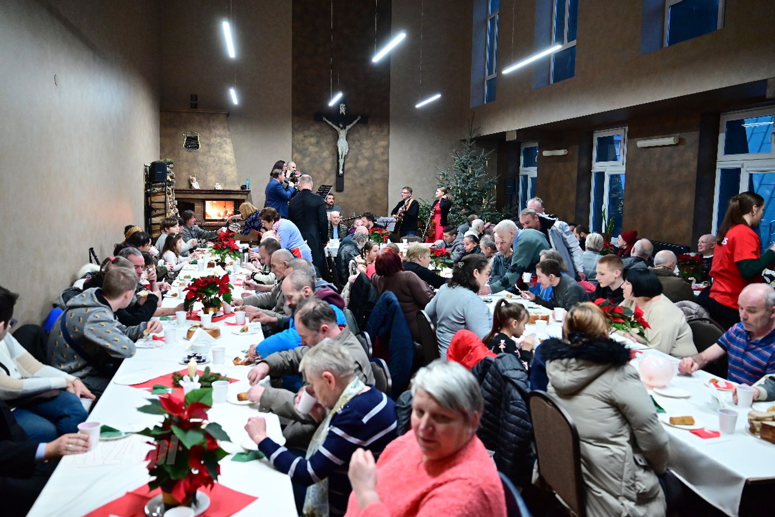 Wydarzenie rozpoczęło się o godzinie 14.15 wspólnym kolędowaniem w kościele. Następnie, o godzinie 15.00, uczestnicy zasiedli do wieczerzy wigilijnej. Wieczerza została przygotowana dla około 150 osób. Równolegle parafia zadbała również o pomoc materialną - przygotowano łącznie 244 paczki świąteczne, w tym 68 paczek dla ubogich dzieci z terenu parafii. Dzięki temu wiele rodzin mogło doświadczyć radości i wsparcia w trudnym, przedświątecznym czasie.