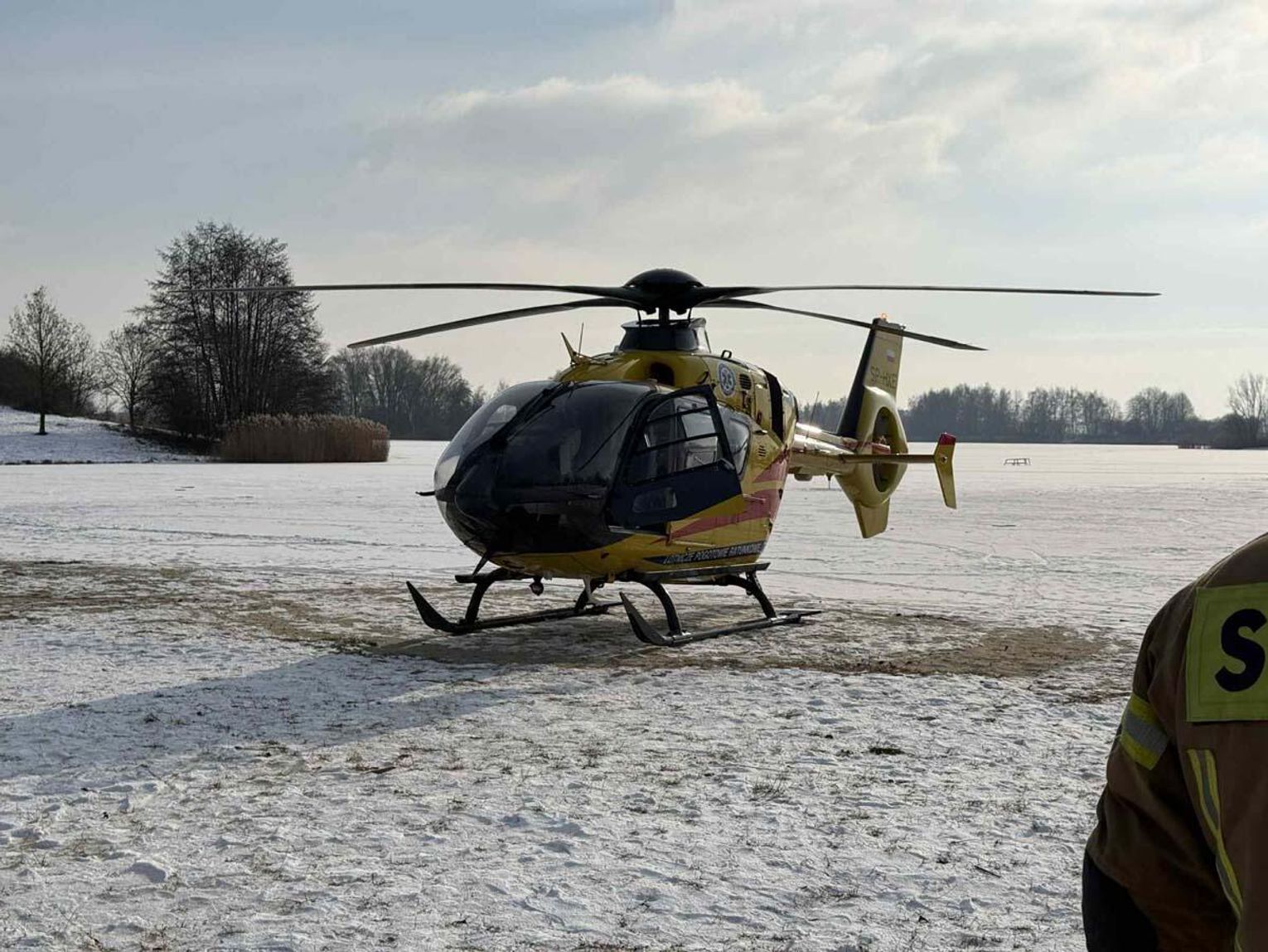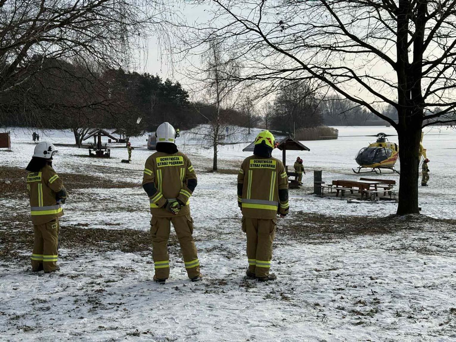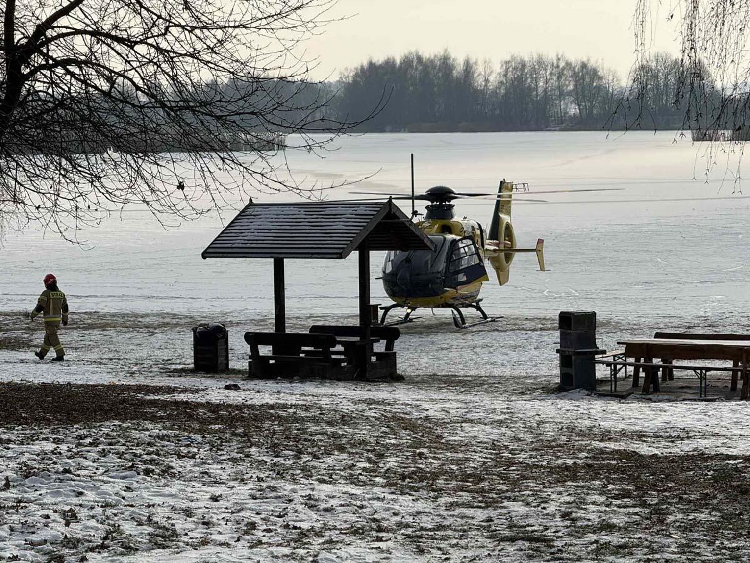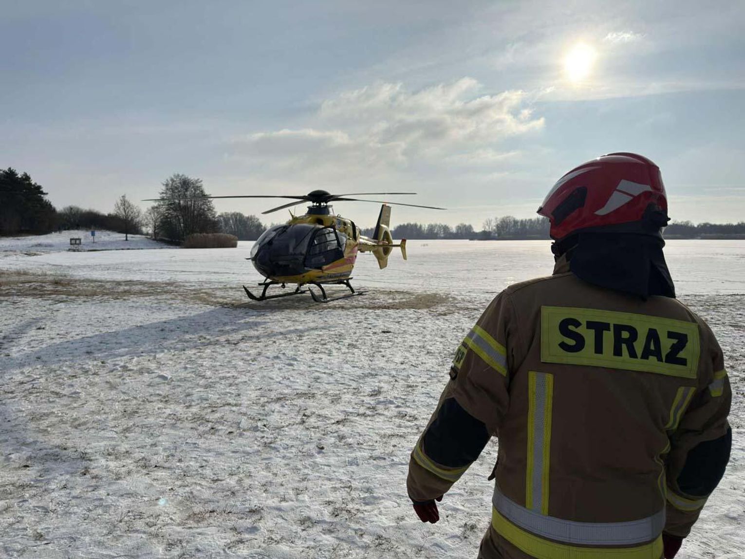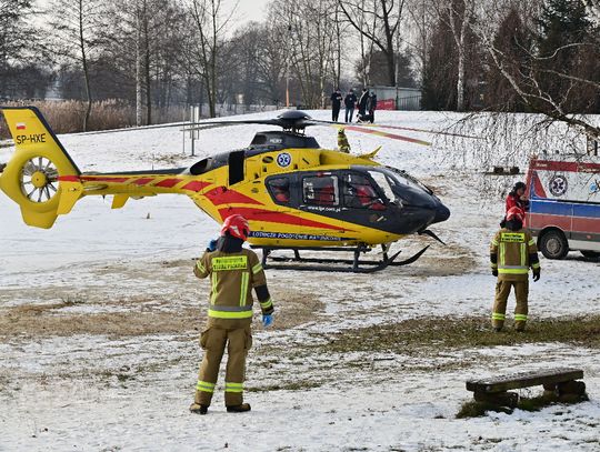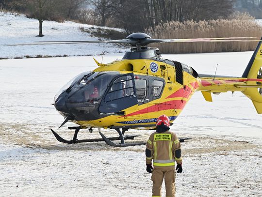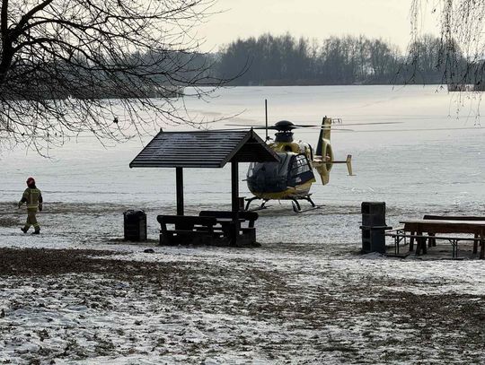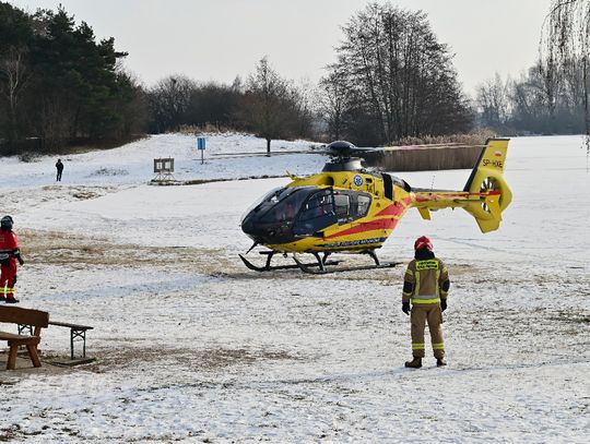 Mężczyzna miał jeździć na łyżwach po zamarzniętej tafli, przewrócił się jednak i doznał urazu głowy. Trwa akcja ratunkowa. Na głównej plaży lądował śmigłowiec Lotniczego Pogotowia Ratunkowego. Na miejscu działania prowadzą strażacy.