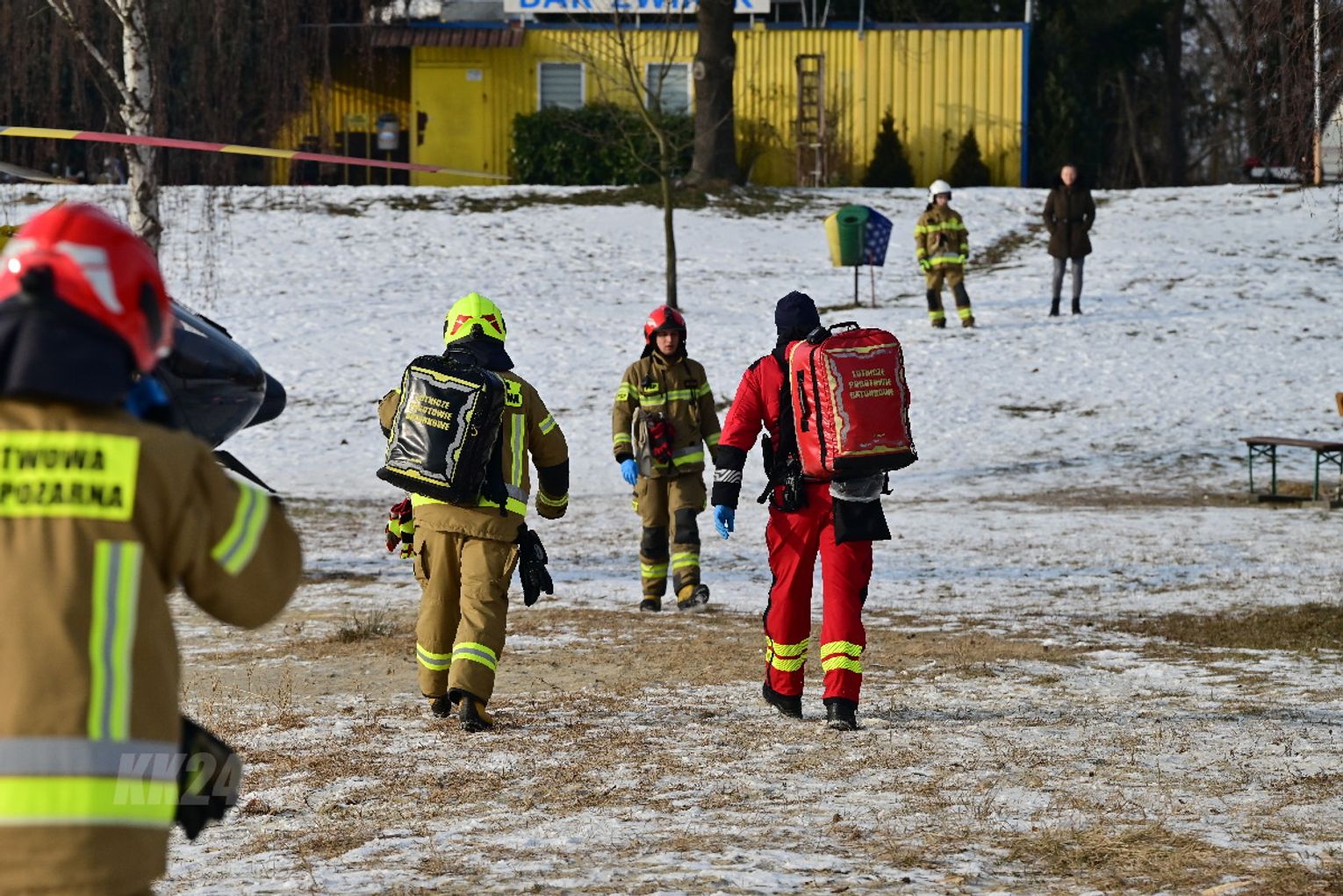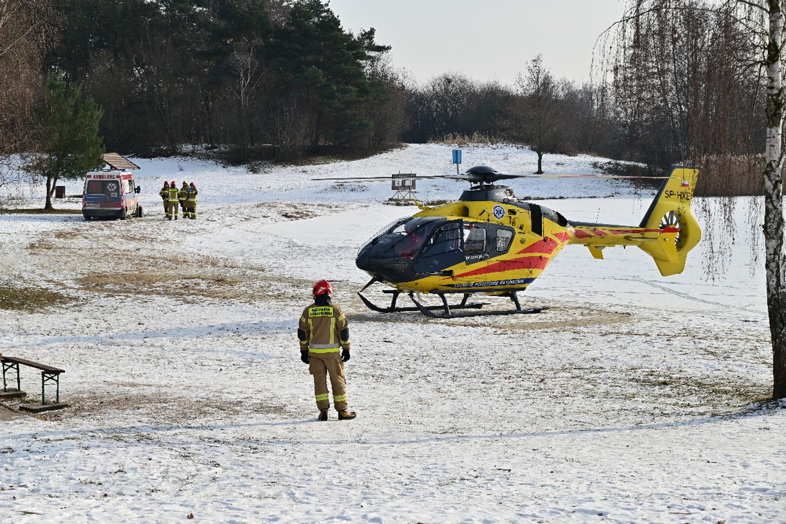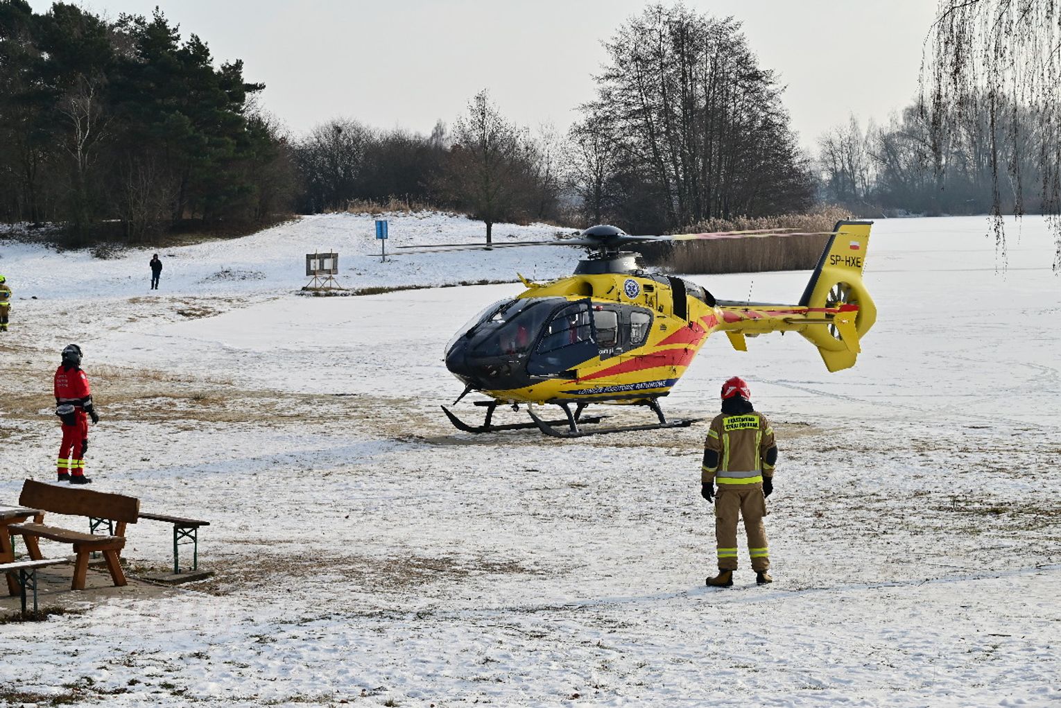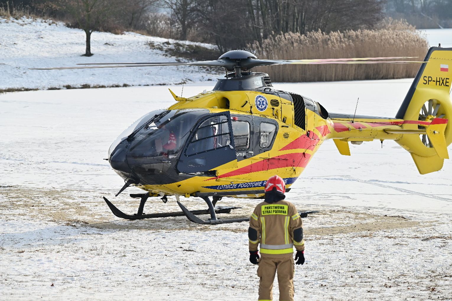 Mężczyzna miał jeździć na łyżwach po zamarzniętej tafli, przewrócił się jednak i doznał urazu głowy. Trwa akcja ratunkowa. Na głównej plaży lądował śmigłowiec Lotniczego Pogotowia Ratunkowego. Na miejscu działania prowadzą strażacy.