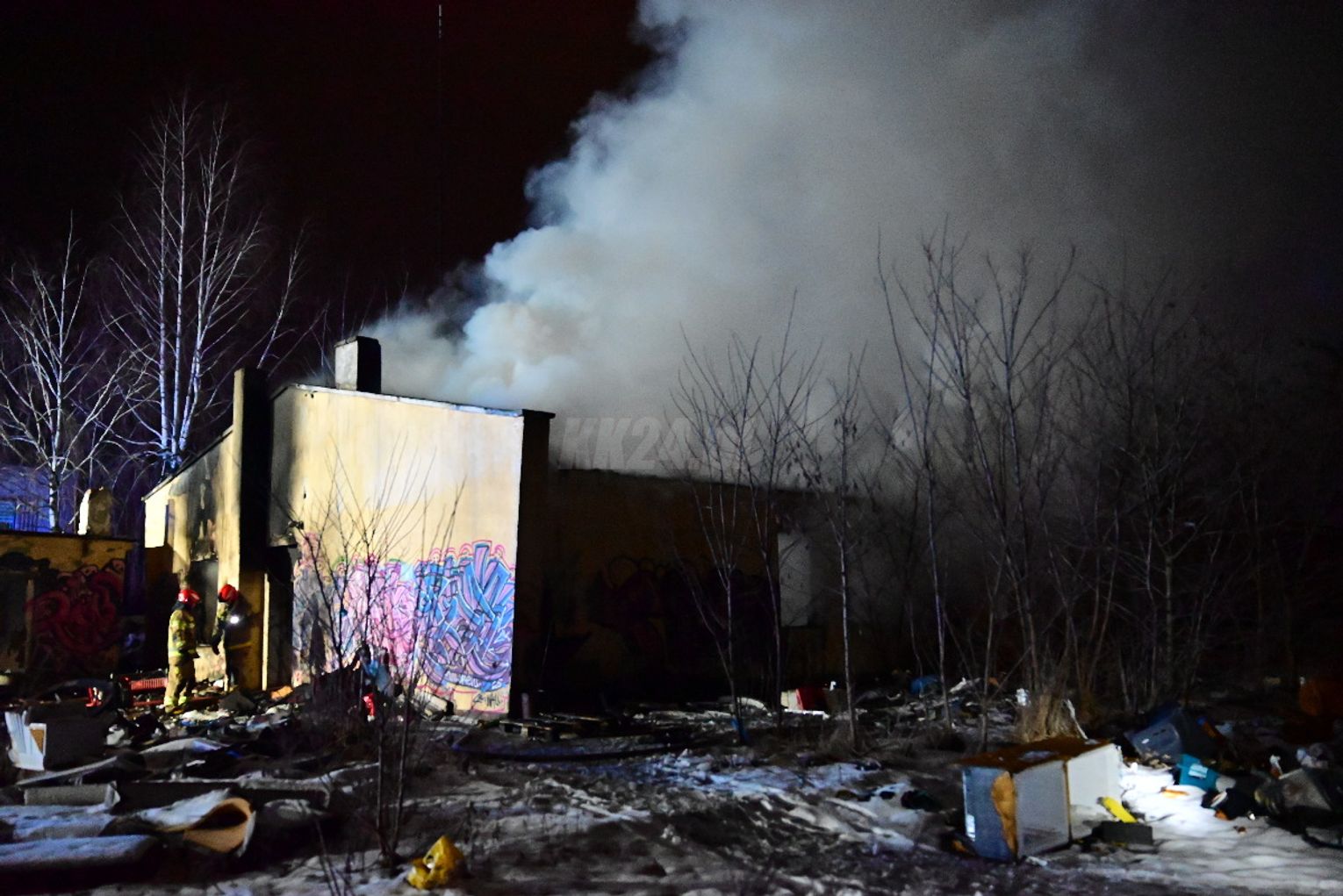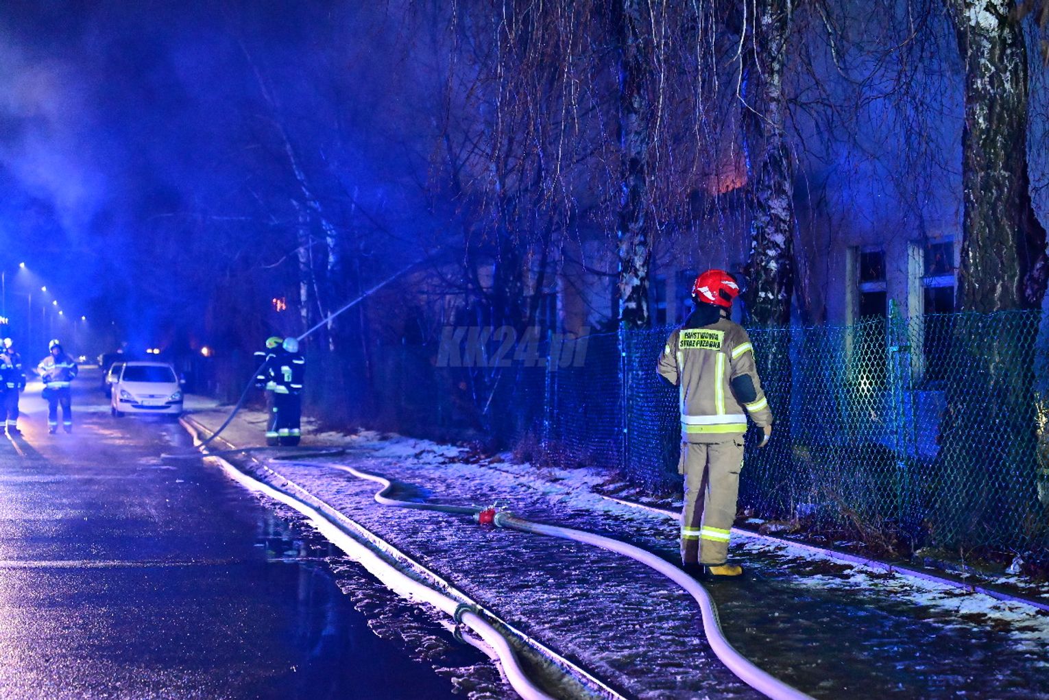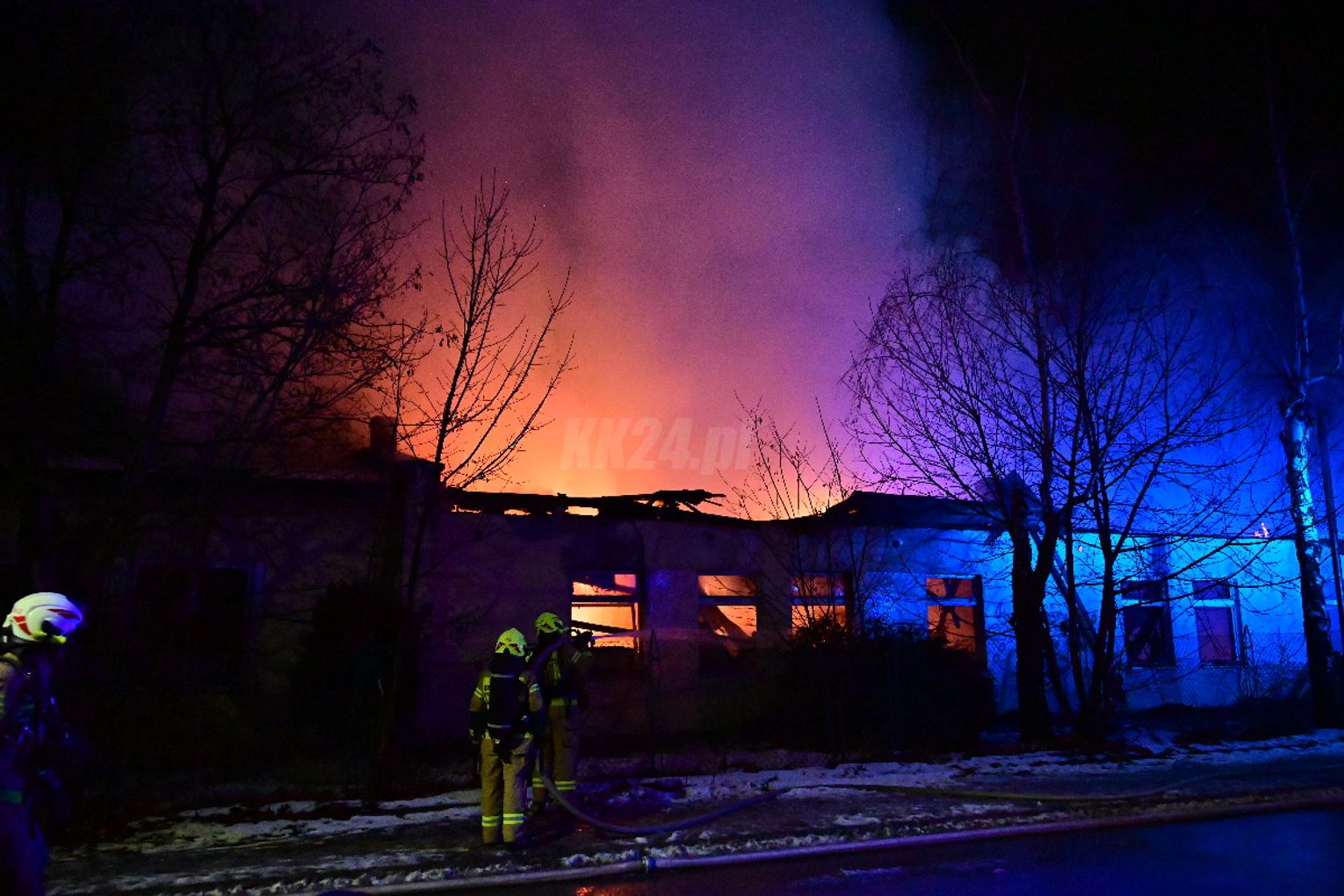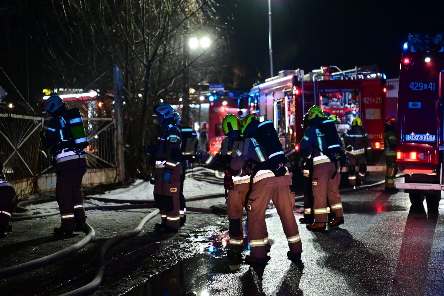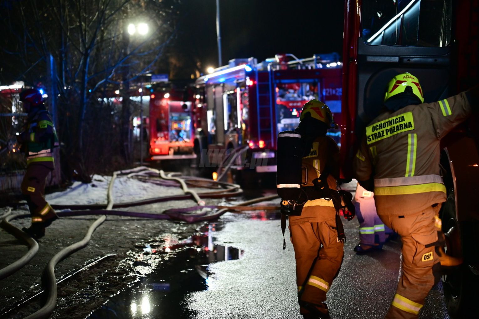 Po dojeździe pierwszych zastępów okazało się, że ogniem objęte są dwa budynki, w tym opuszczona hala. Pożar był dobrze rozwinięty, co wymagało zaangażowania kilkunastu zastępów straży pożarnej z terenu całego powiatu. Działania strażaków koncentrowały się na gaszeniu płomieni oraz niedopuszczeniu do rozprzestrzenienia się ognia na sąsiednie obiekty. Wstępnie nie odnotowano osób poszkodowanych. Ze wstępnych ustaleń wynika, że pożar mógł być wynikiem celowego podpalenia. Okoliczności zdarzenia będą wyjaśniane przez odpowiednie służby.