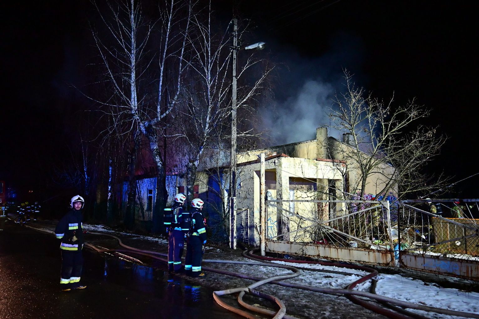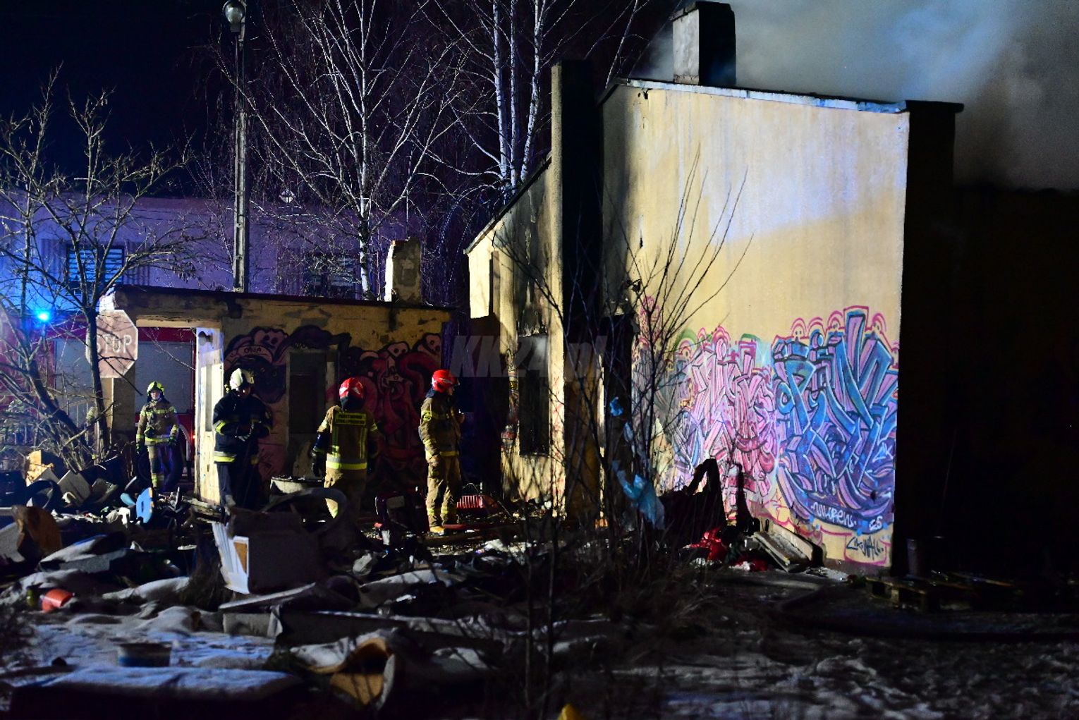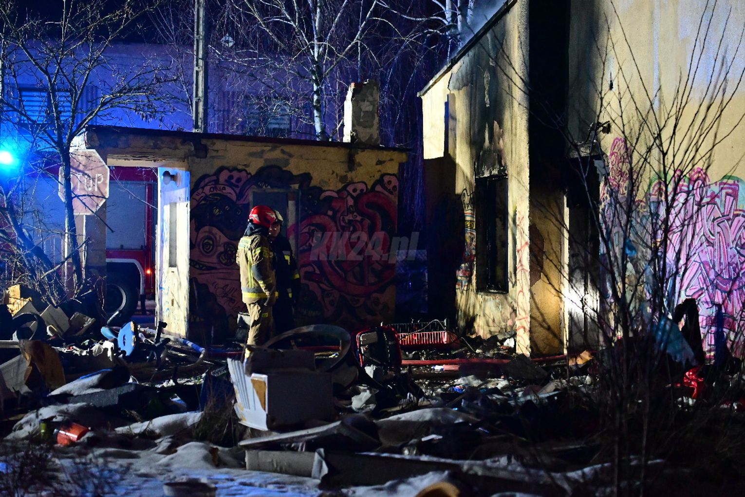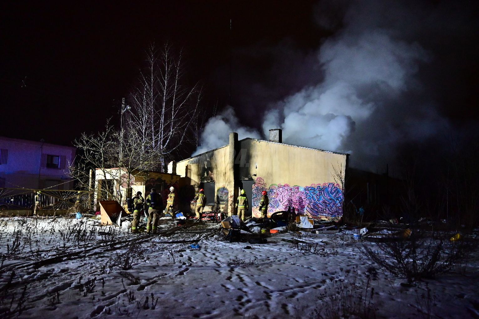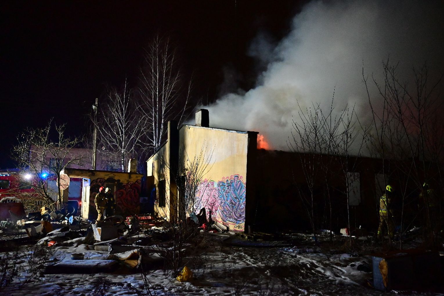 Po dojeździe pierwszych zastępów okazało się, że ogniem objęte są dwa budynki, w tym opuszczona hala. Pożar był dobrze rozwinięty, co wymagało zaangażowania kilkunastu zastępów straży pożarnej z terenu całego powiatu. Działania strażaków koncentrowały się na gaszeniu płomieni oraz niedopuszczeniu do rozprzestrzenienia się ognia na sąsiednie obiekty. Wstępnie nie odnotowano osób poszkodowanych. Ze wstępnych ustaleń wynika, że pożar mógł być wynikiem celowego podpalenia. Okoliczności zdarzenia będą wyjaśniane przez odpowiednie służby.