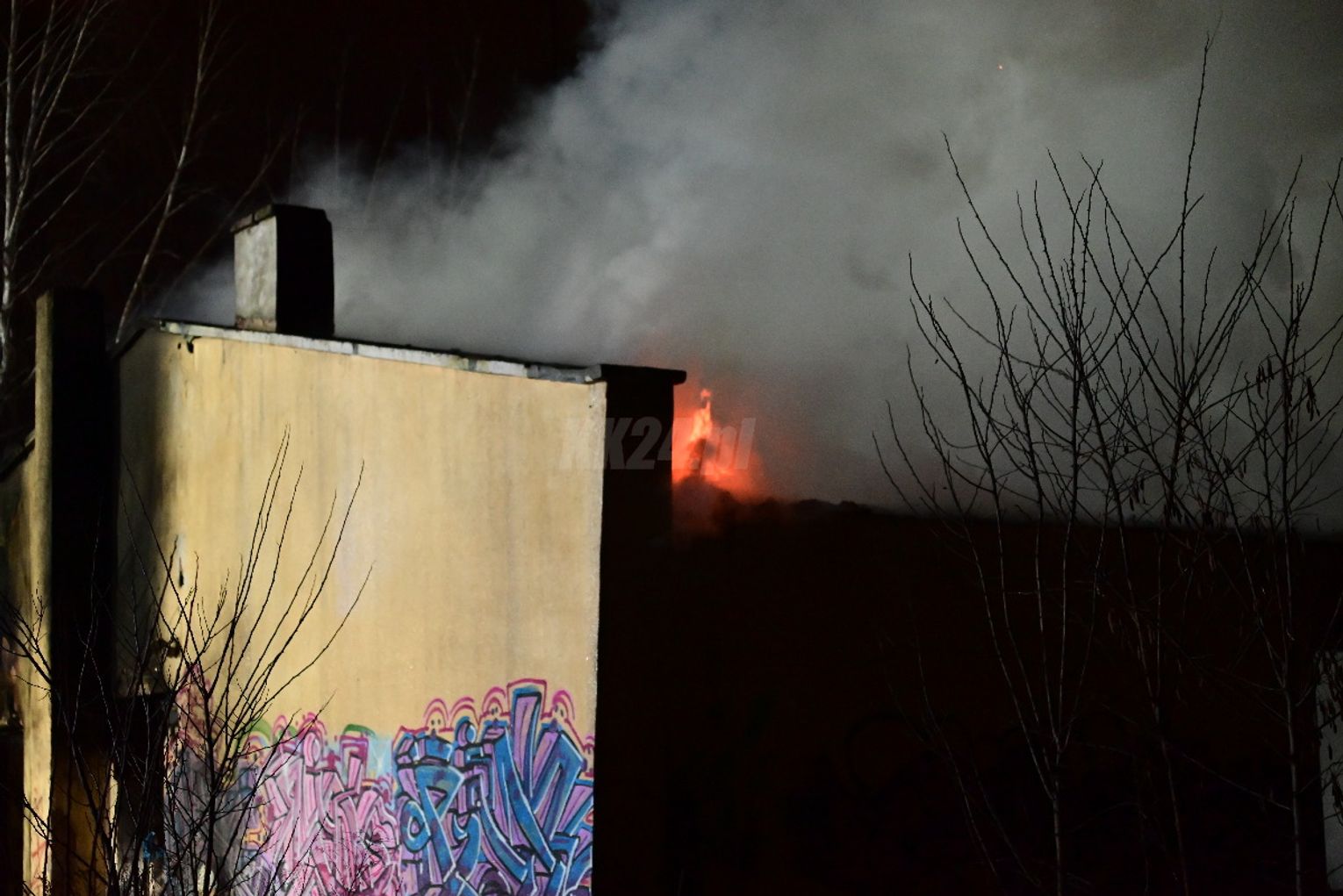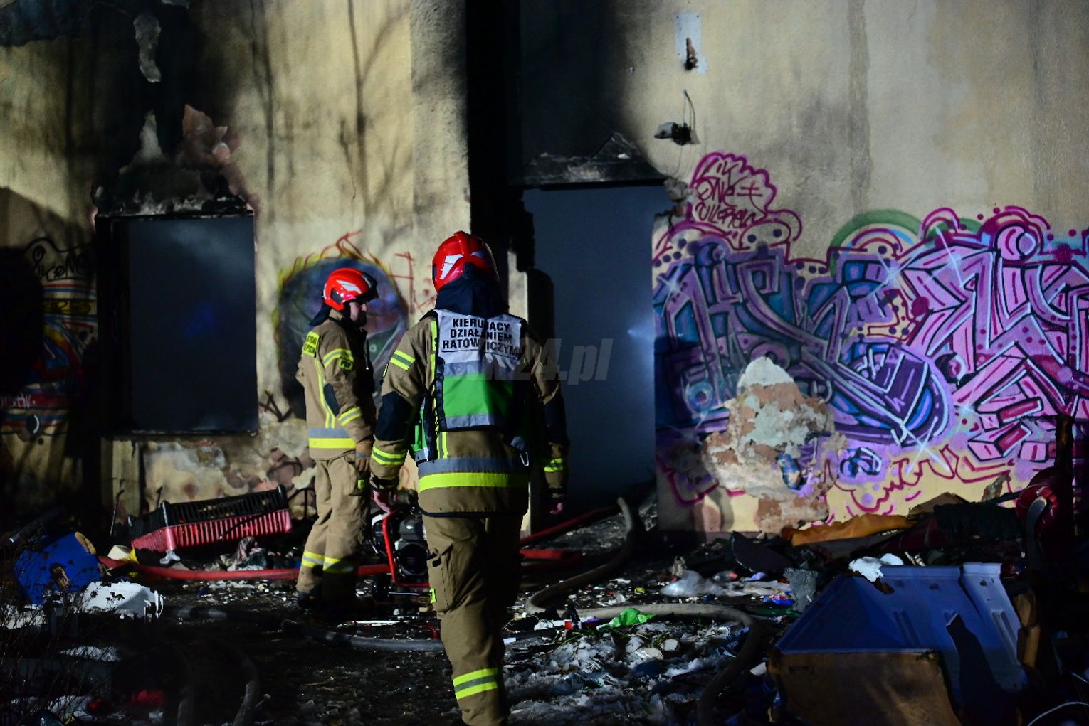 Przed godziną 2 w nocy operator numeru alarmowego odebrał zgłoszenie o pożarze kompleksu pustostanów przy ulicy Powstańców w Śródmieściu. Na miejsce natychmiast skierowano liczne siły i środki straży pożarnej.