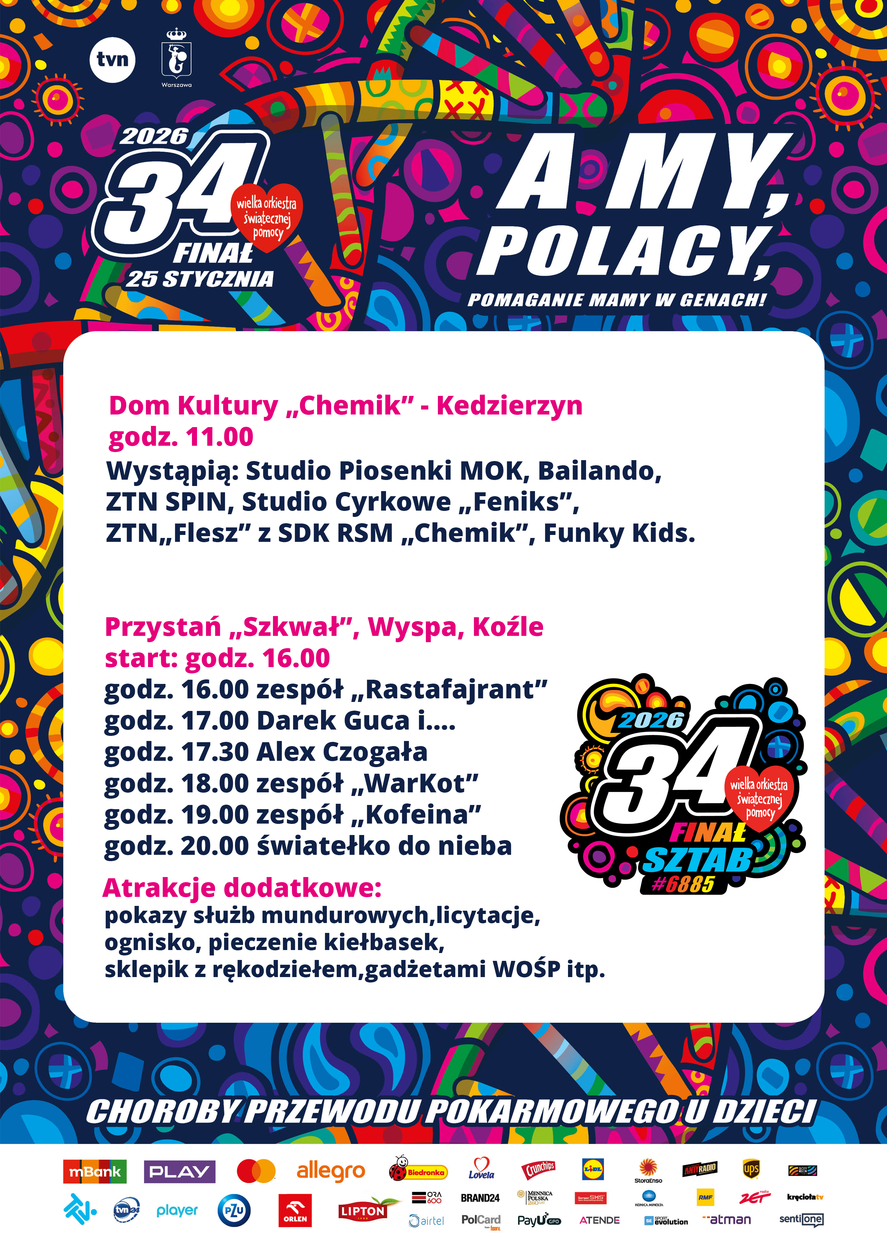 Finałowy dzień zapowiada się jako wydarzenie pełne emocji, muzyki i rodzinnych atrakcji. Od rana do późnego wieczora w różnych częściach miasta odbywać się będą występy artystyczne, koncerty na żywo oraz liczne inicjatywy towarzyszące, których wspólnym celem jest zbiórka środków na leczenie najmłodszych pacjentów.