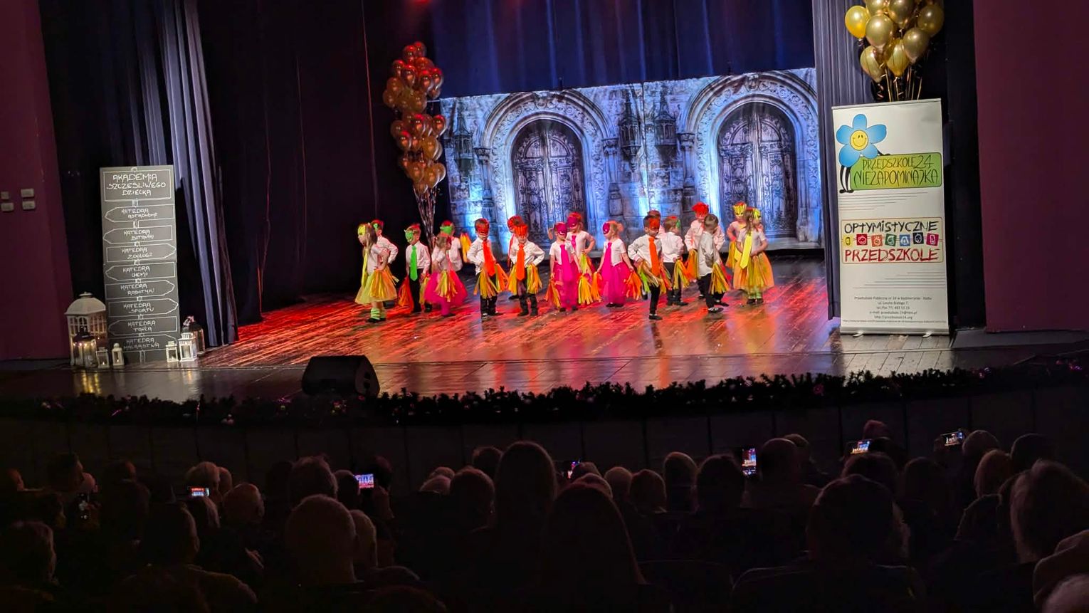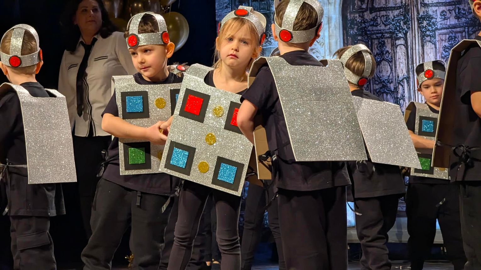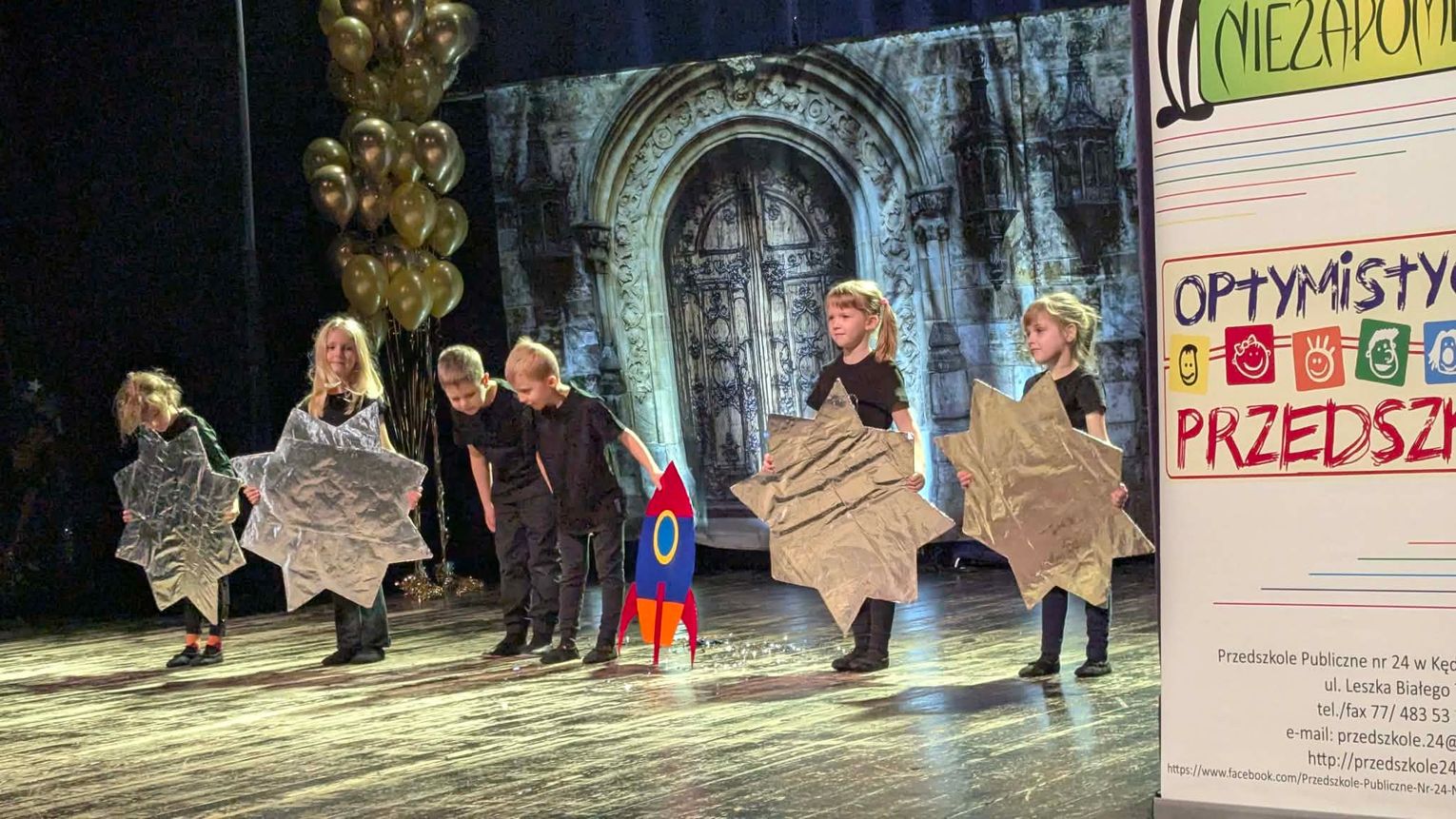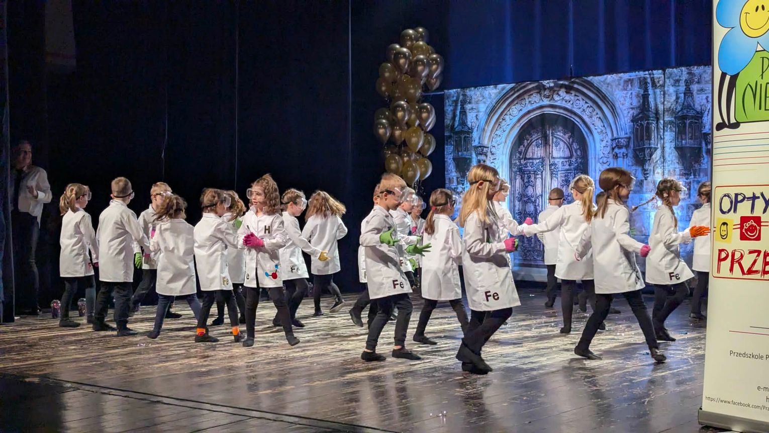 Tym razem przedszkolny koncert ma szczególną formę. Dzieci zapraszają swoich bliskich do świata Akademii Szczęśliwego Dziecka, w której każda grupa wciela się w rolę adeptów różnych katedr – od tańca, przez sport, chemię, botanikę i robotykę, aż po malarstwo i astronomię. Mali artyści prezentują swoje talenty, pasje i umiejętności, pokazując, że nauka może być radością, ruchem i wspólnym przeżywaniem emocji.