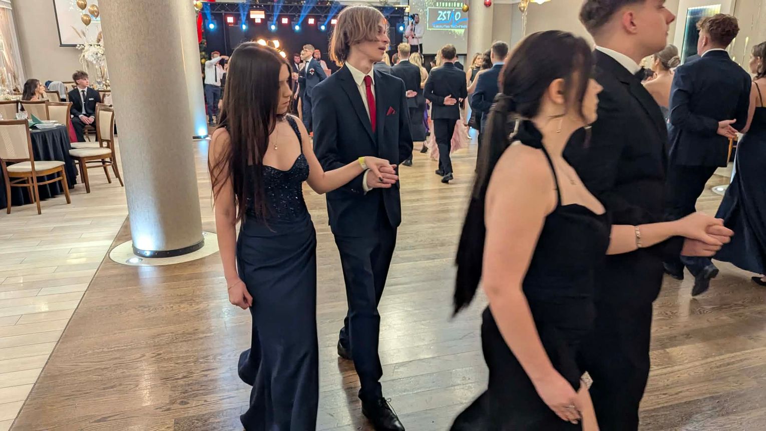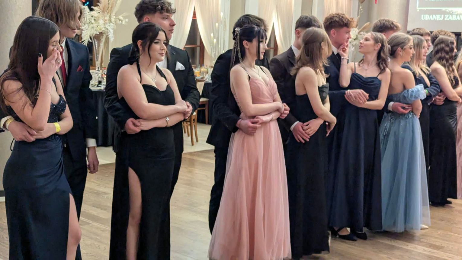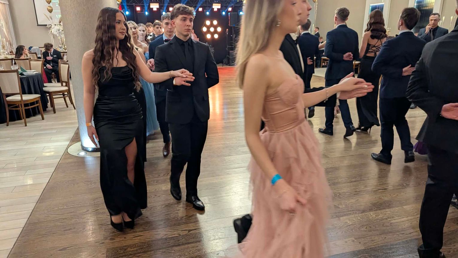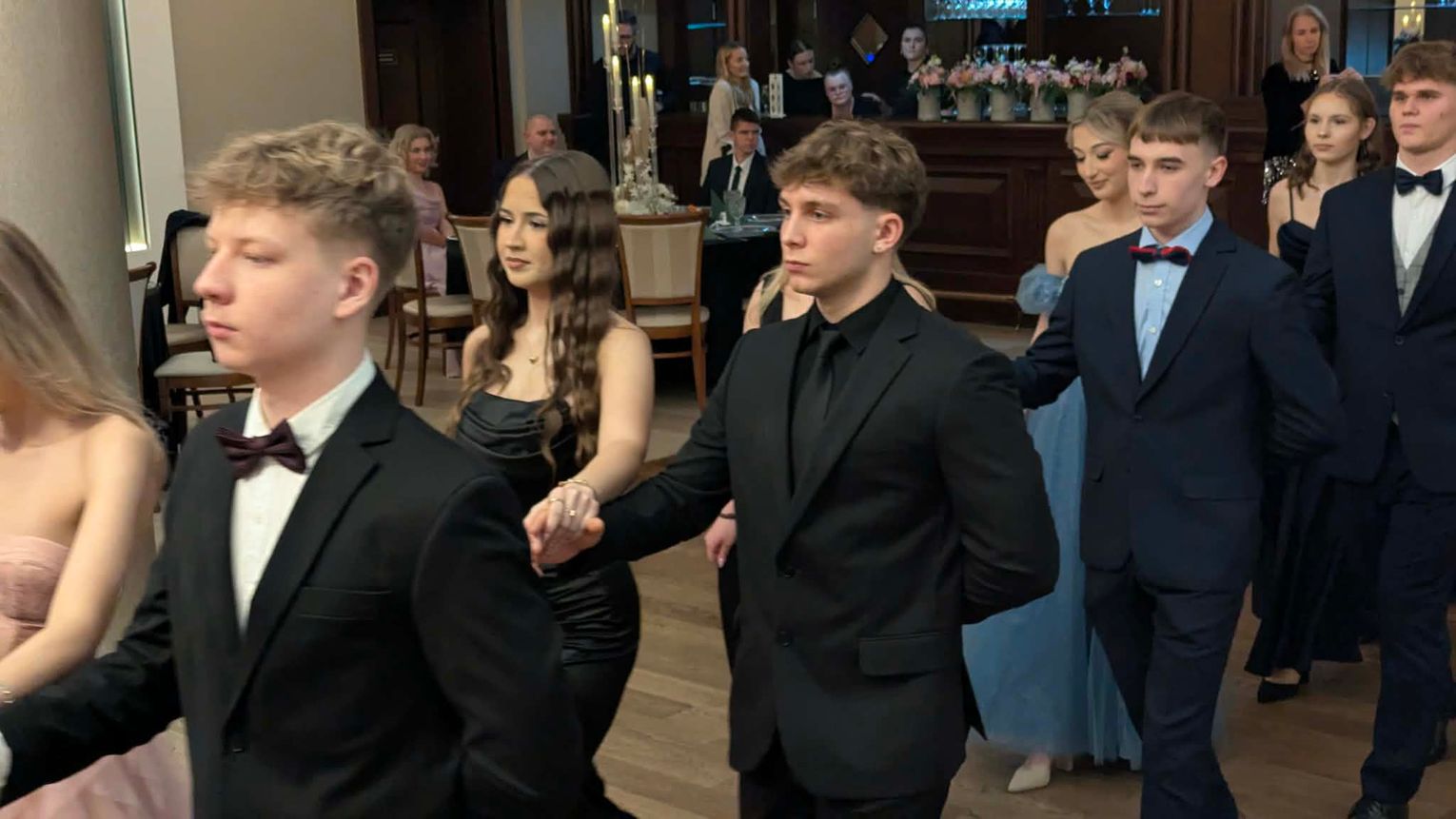 Po części artystycznej przyszedł czas na moment najbardziej wyczekiwany i symboliczny – uroczyste odtańczenie poloneza. Młodzież zaprezentowała się elegancko i z dużym zaangażowaniem, podkreślając wyjątkowy charakter tego wieczoru.