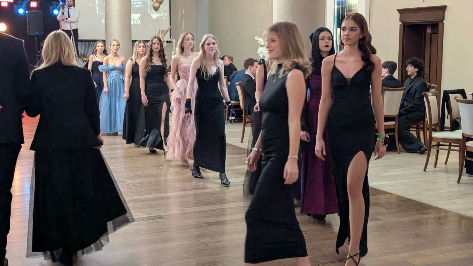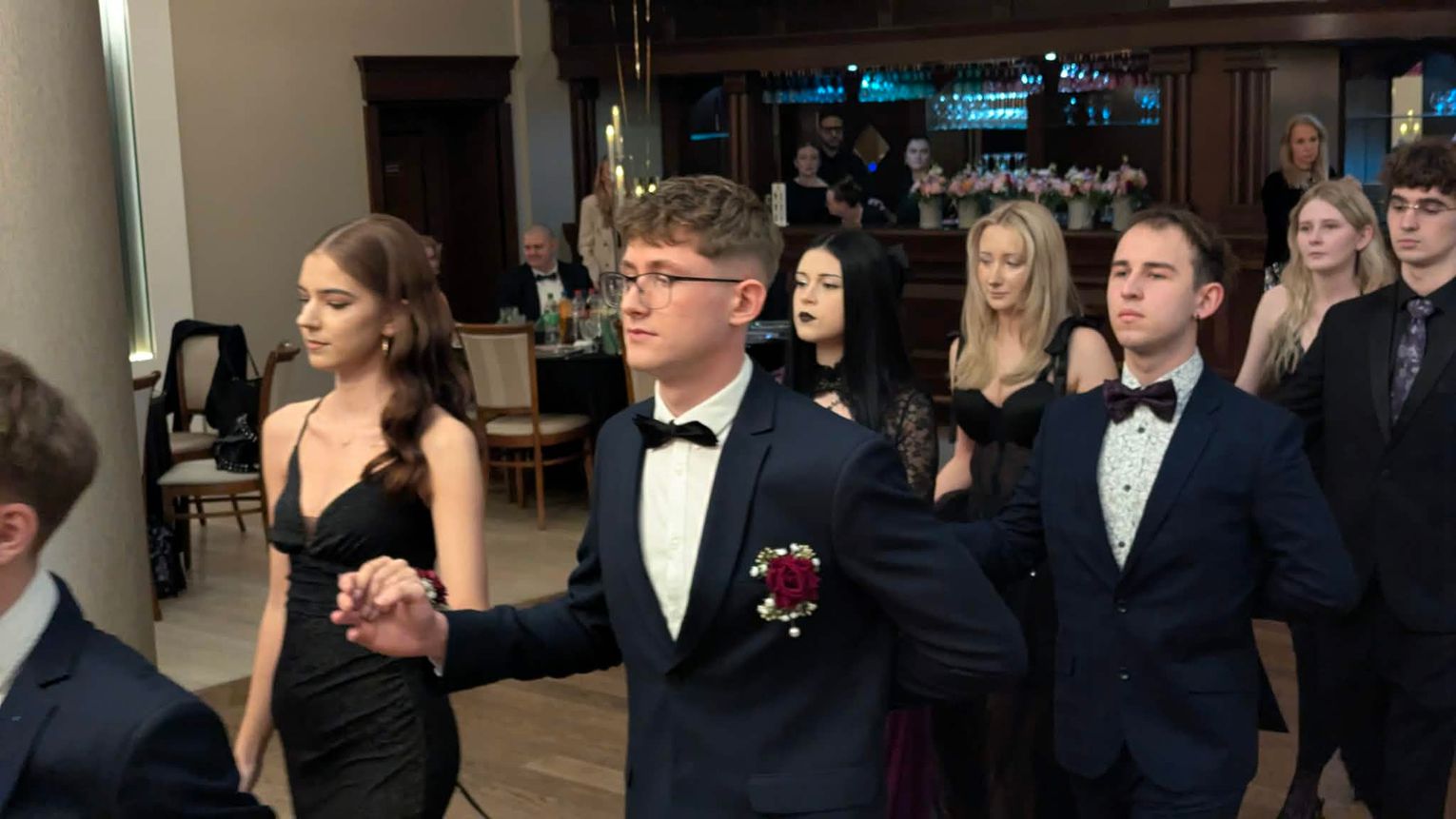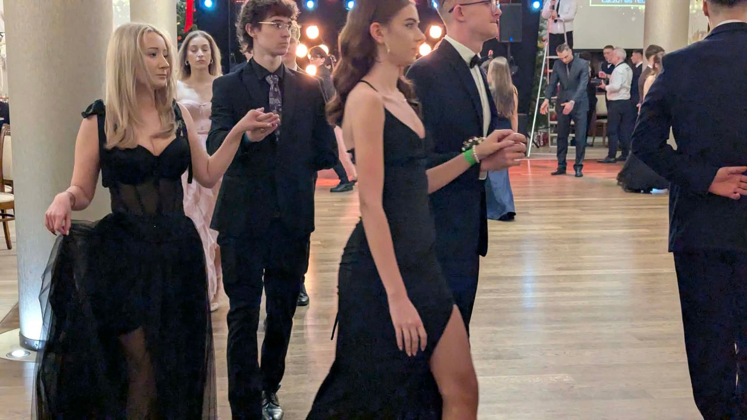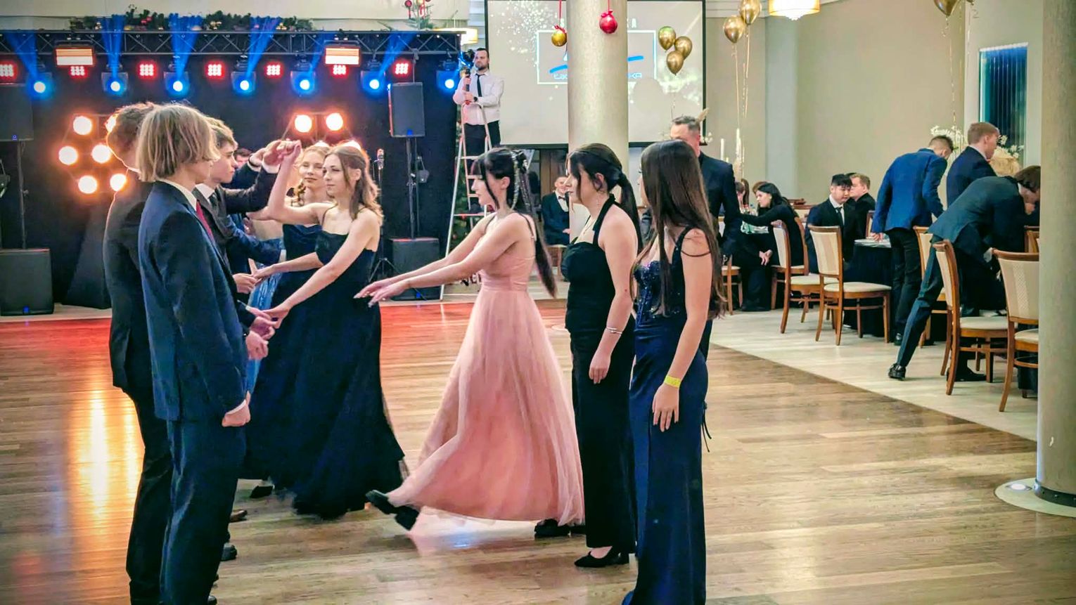Po części artystycznej przyszedł czas na moment najbardziej wyczekiwany i symboliczny – uroczyste odtańczenie poloneza. Młodzież zaprezentowała się elegancko i z dużym zaangażowaniem, podkreślając wyjątkowy charakter tego wieczoru.