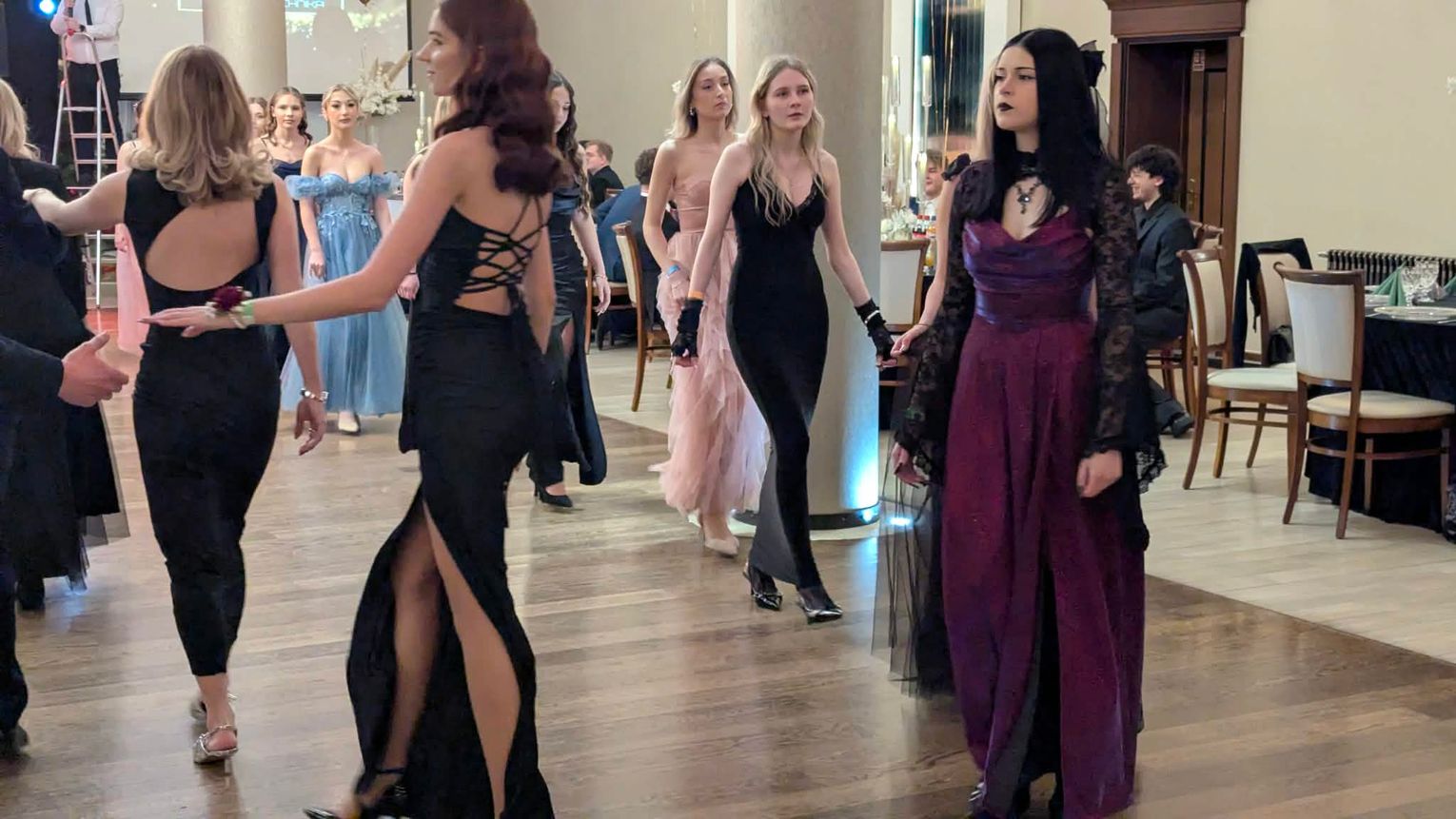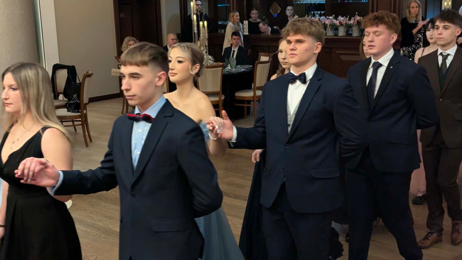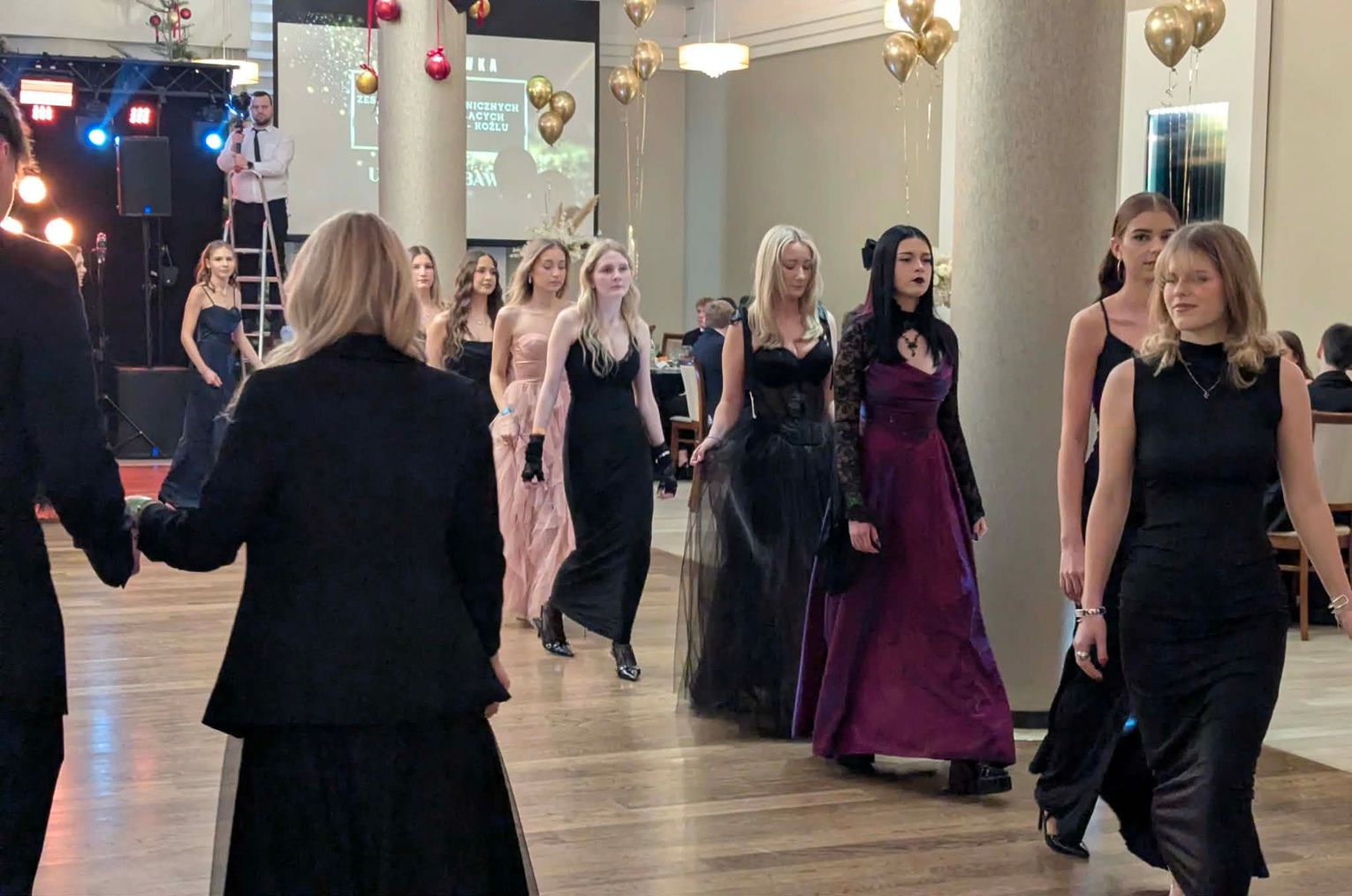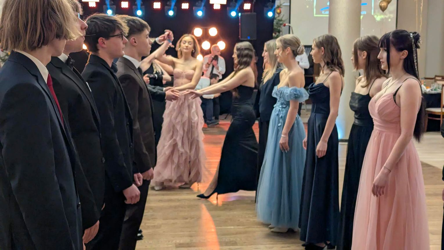 Po części artystycznej przyszedł czas na moment najbardziej wyczekiwany i symboliczny – uroczyste odtańczenie poloneza. Młodzież zaprezentowała się elegancko i z dużym zaangażowaniem, podkreślając wyjątkowy charakter tego wieczoru.