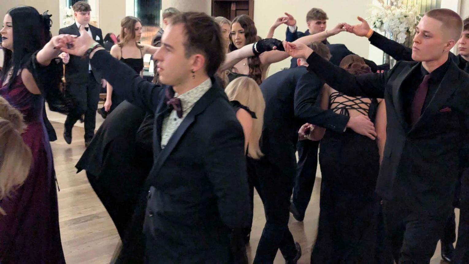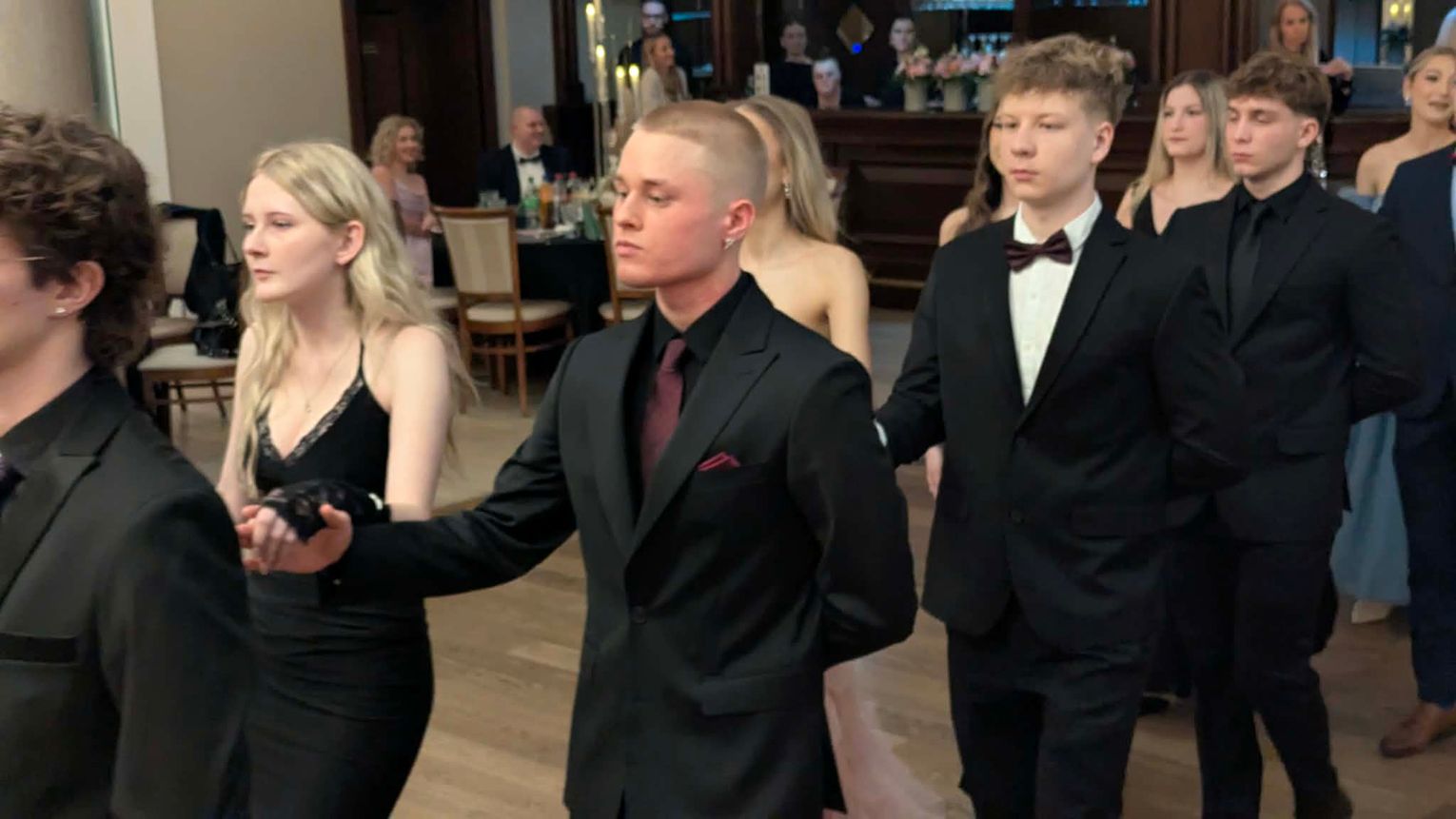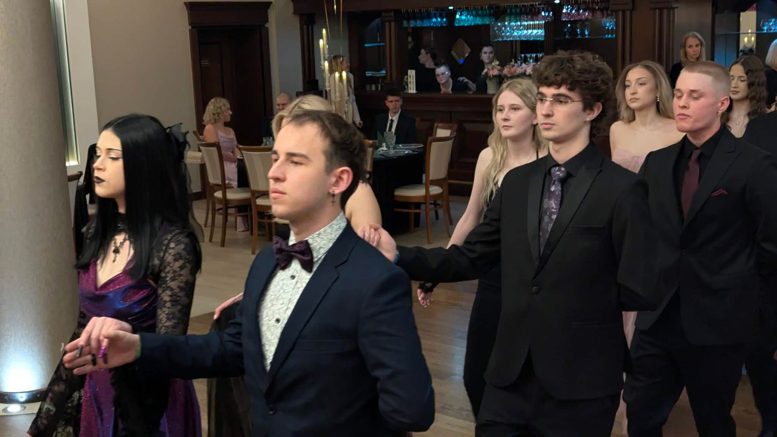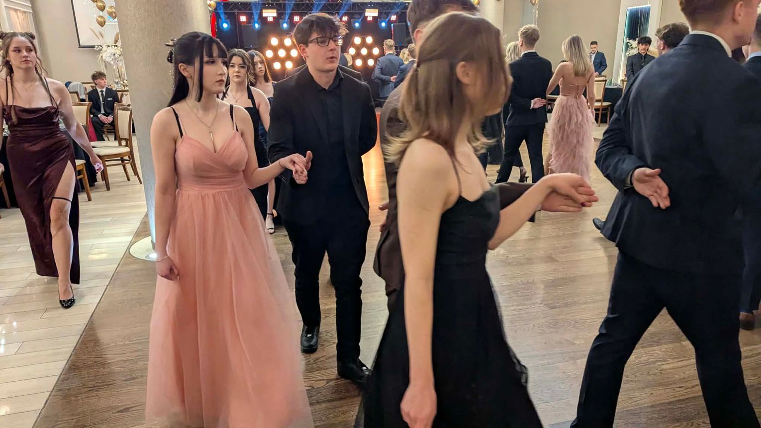 Po części artystycznej przyszedł czas na moment najbardziej wyczekiwany i symboliczny – uroczyste odtańczenie poloneza. Młodzież zaprezentowała się elegancko i z dużym zaangażowaniem, podkreślając wyjątkowy charakter tego wieczoru.