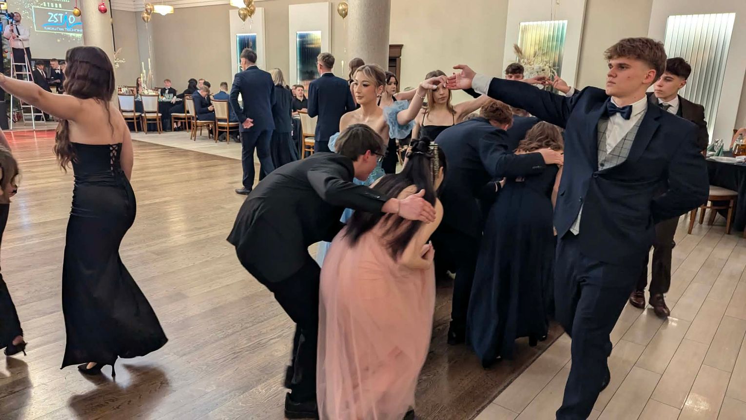 Studniówka ZSTiO w Dworku Komorno. Młodzież rozpoczęła bal z humorem i klasą