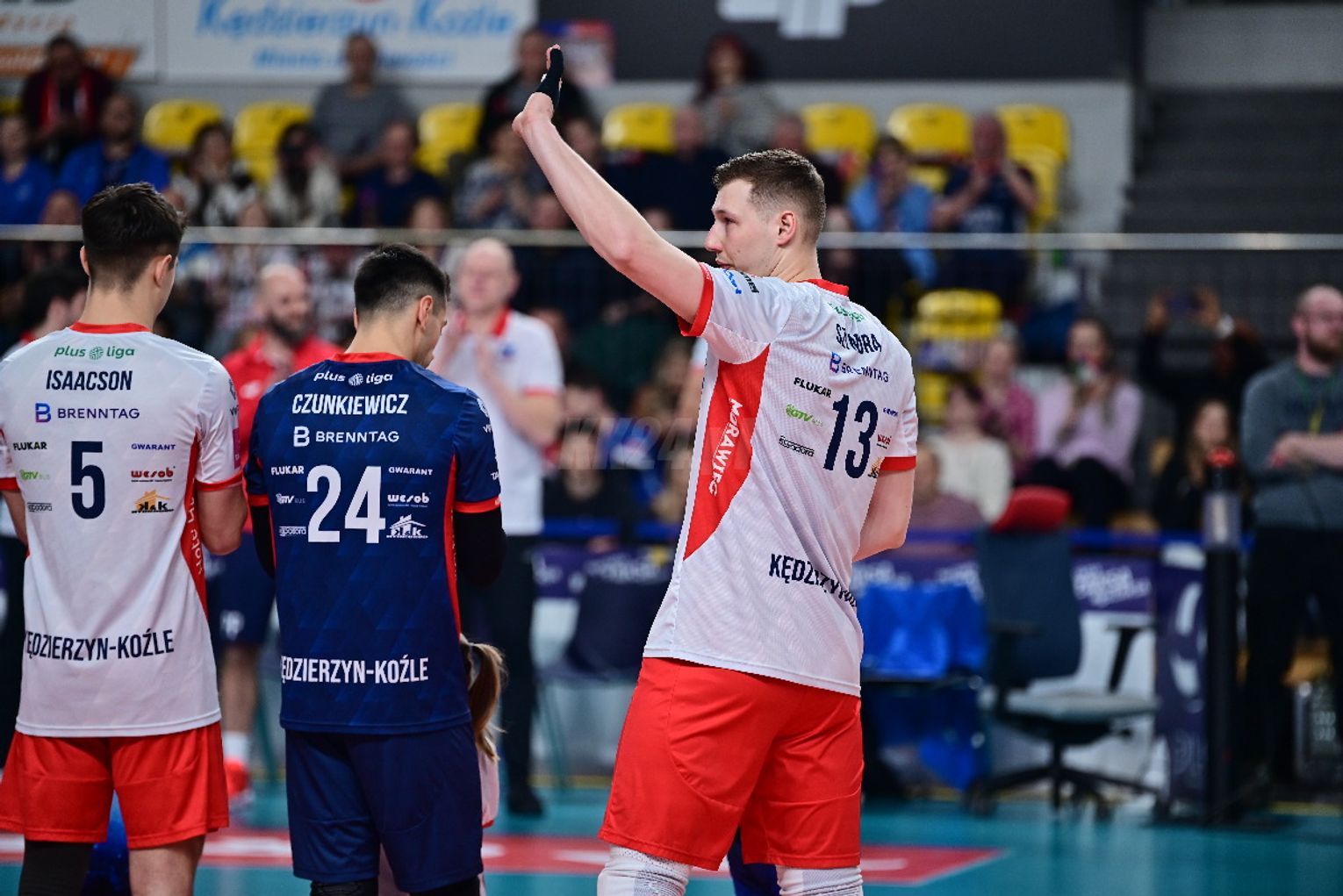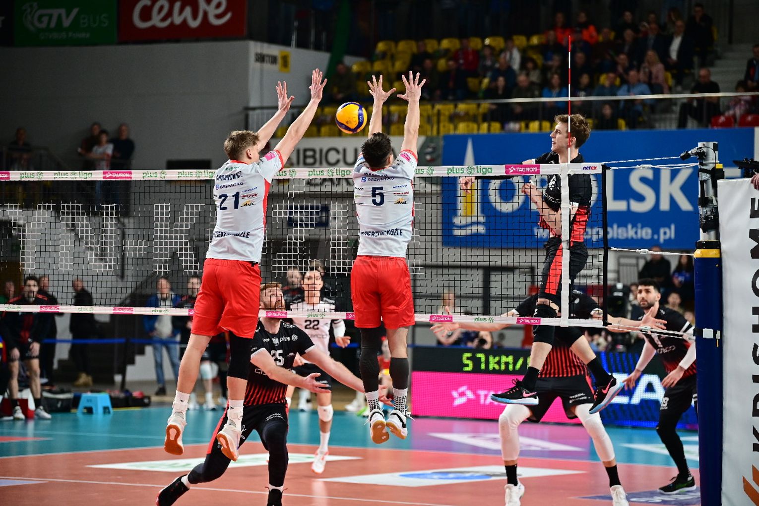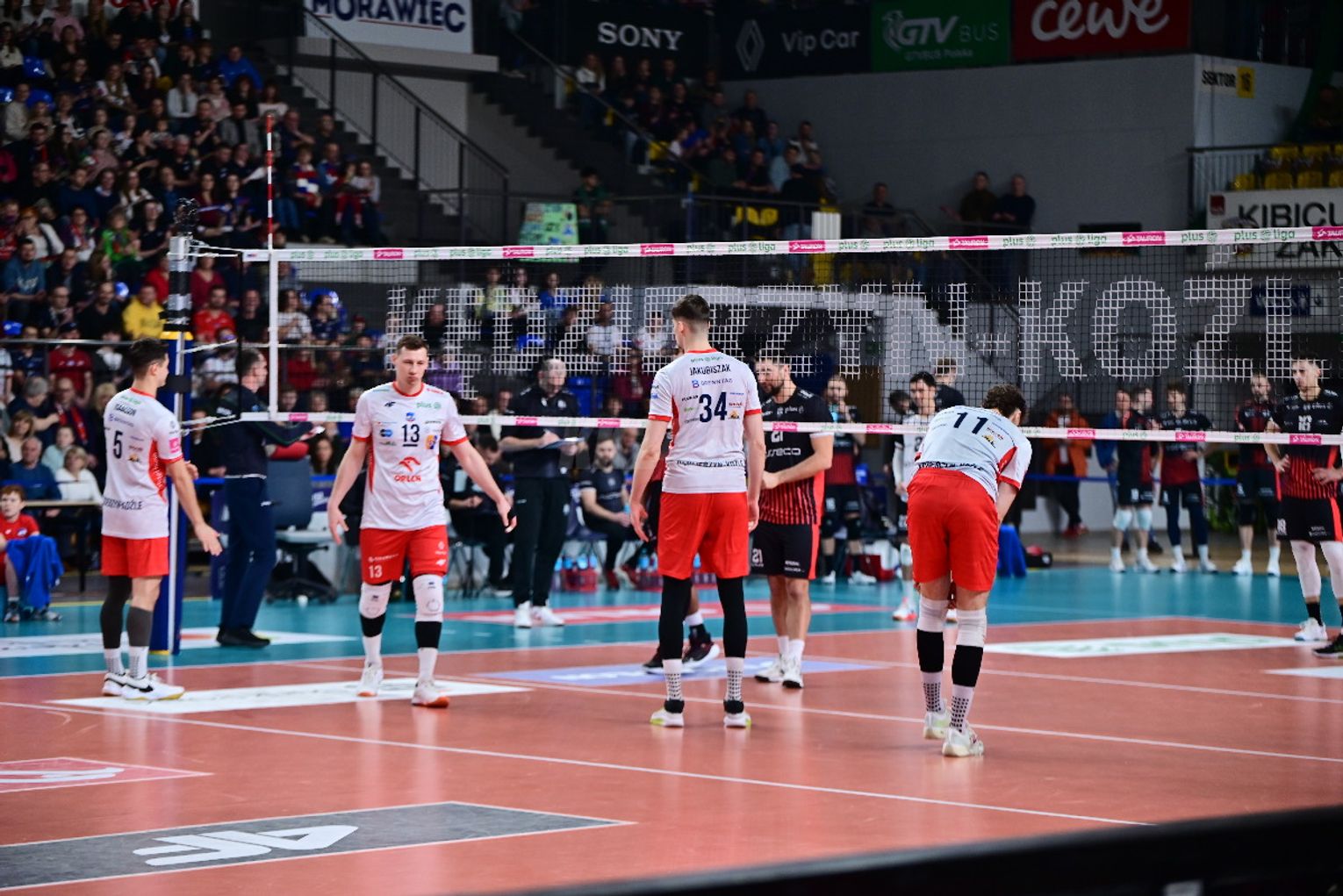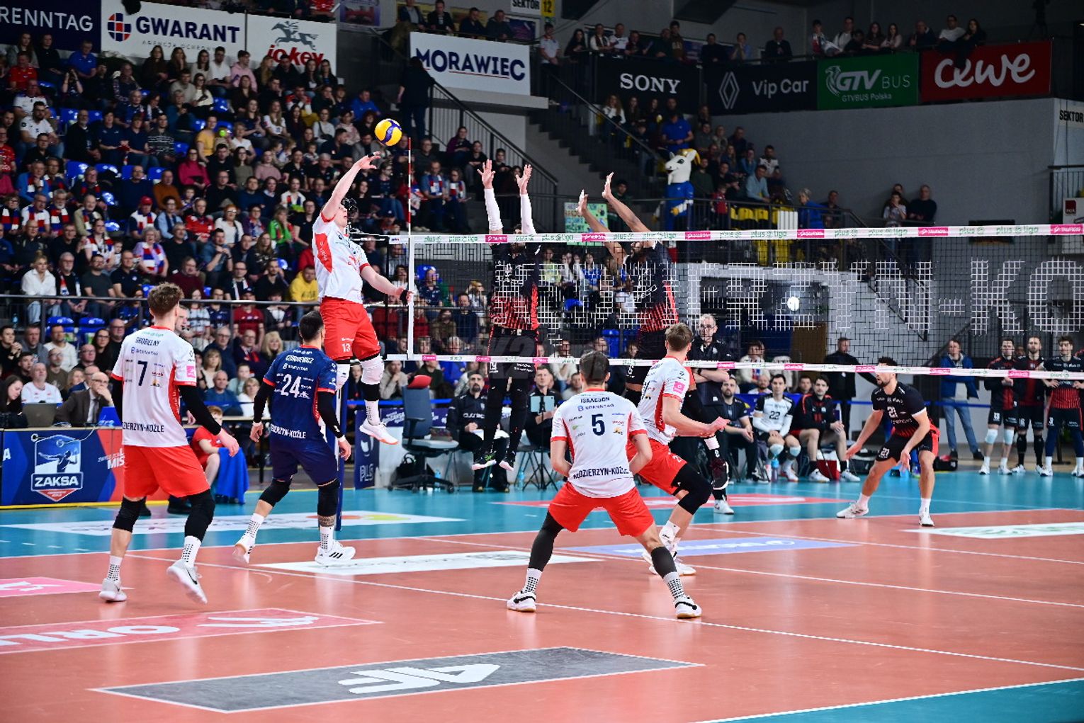 Już pierwsza partia przyniosła licznie zgromadzonym kibicom duże emocje. Żadnemu z zespołów nie udało się odskoczyć od przeciwnika na więcej niż dwa oczka i oglądaliśmy niezwykle zacięte widowisko. W końcówce najpierw asa posłał Artur Szalpuk, po chwili na blok nadział się na Kamil Rychlicki i było 20:22. Kędzierzynianie błyskawicznie odrobili jednak straty. Goście mieli piłkę setową (23:24), ale nie wykorzystali jej, a po chwili koncert dał Rychlicki. Dwa skuteczne ataki i as serwisowy naszego gracza dały ZAKSIE wygraną do 24.