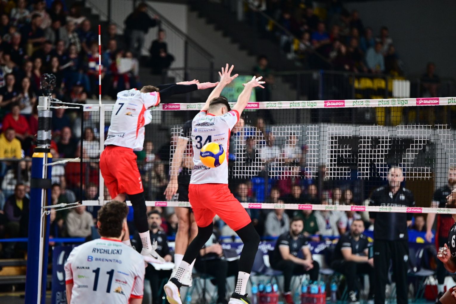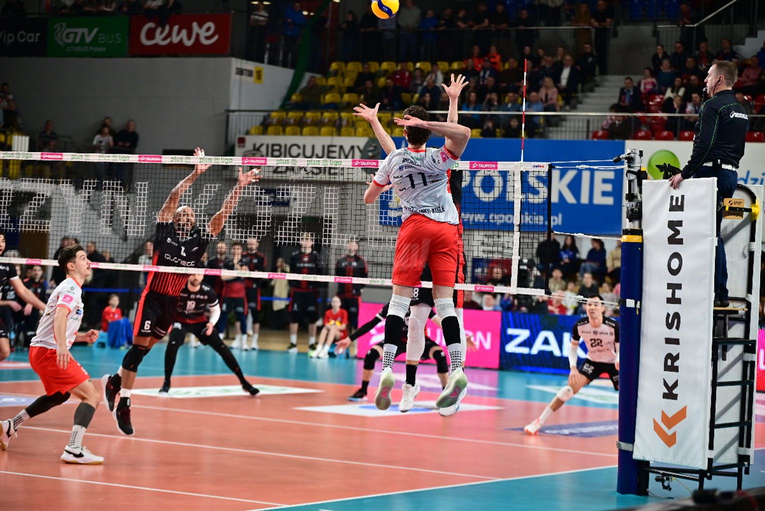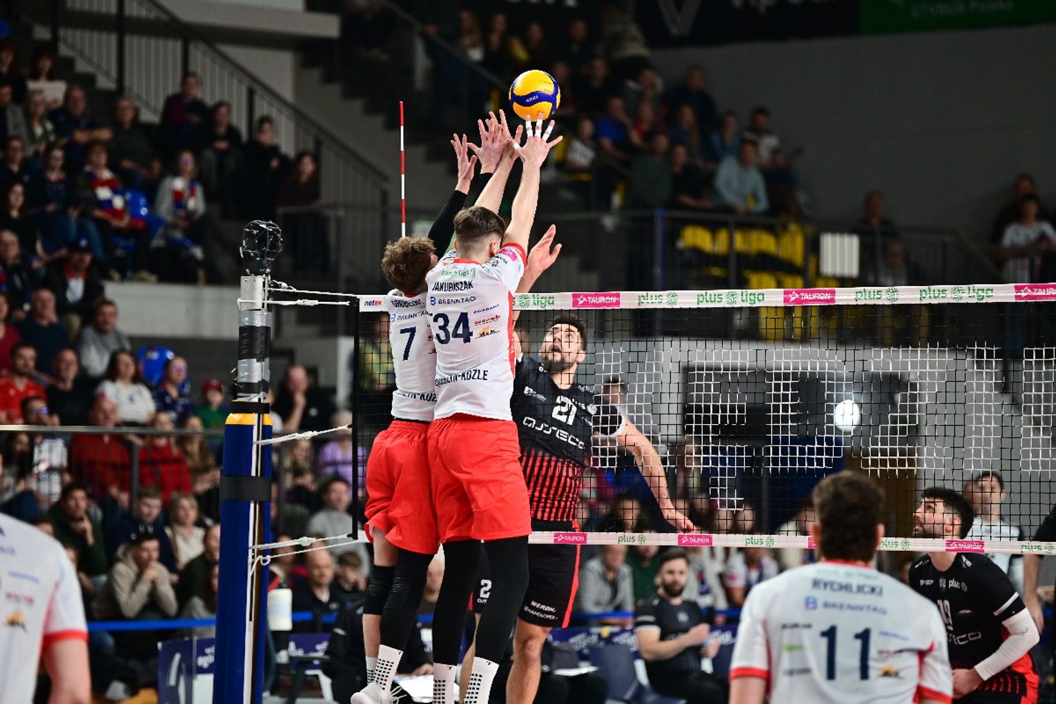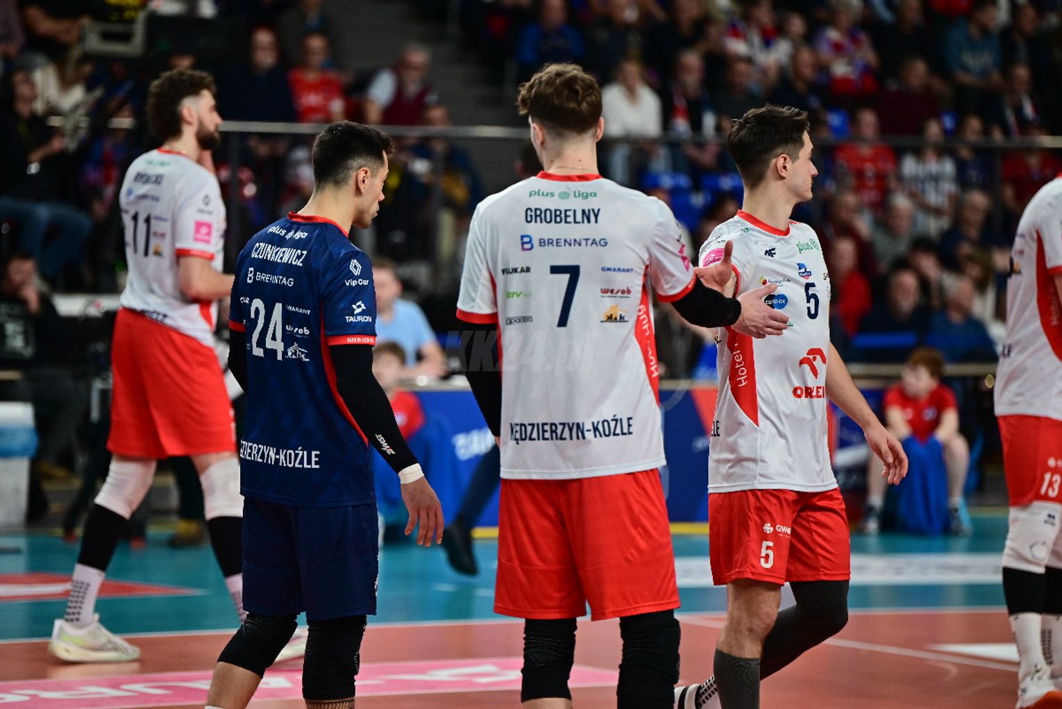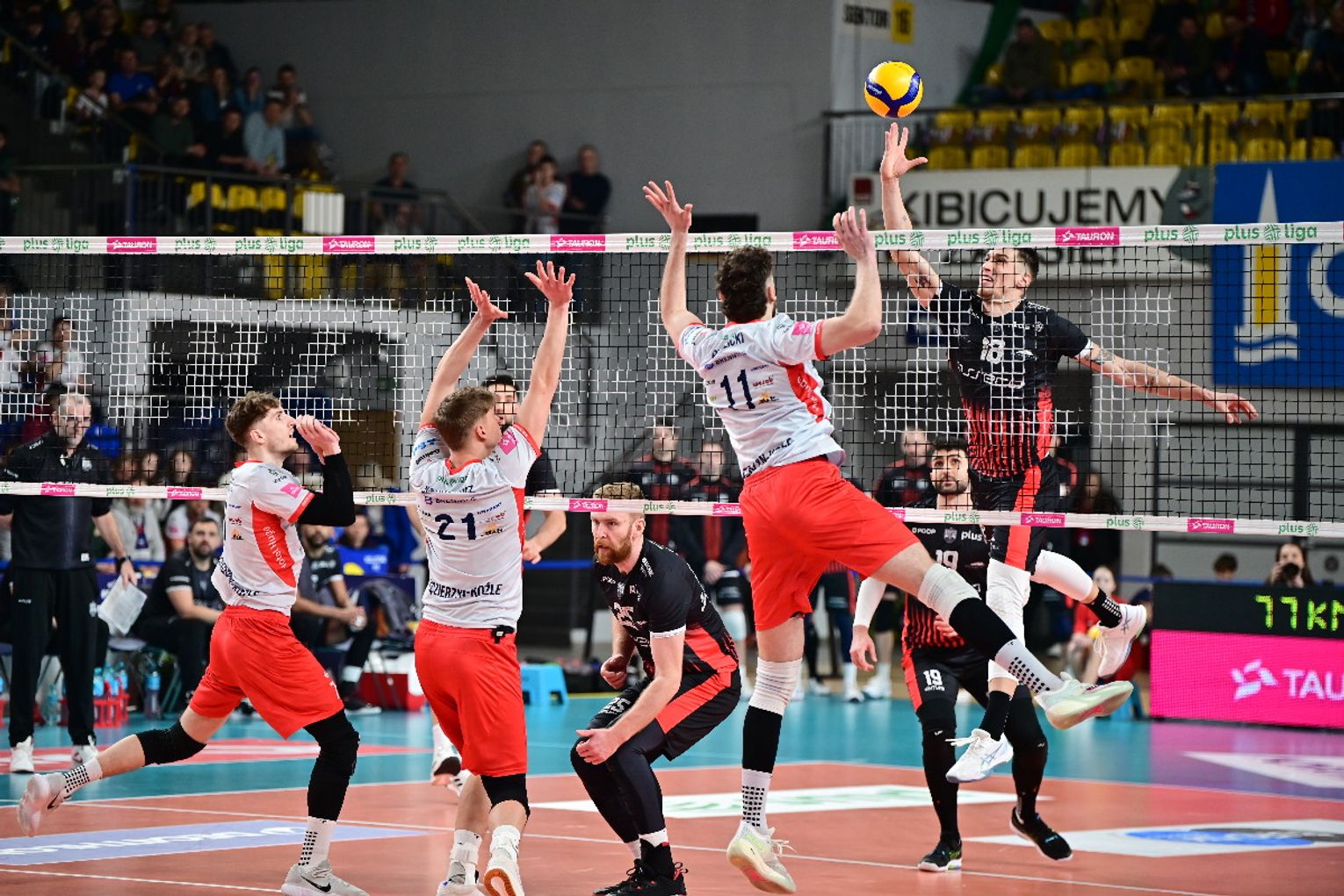 Już pierwsza partia przyniosła licznie zgromadzonym kibicom duże emocje. Żadnemu z zespołów nie udało się odskoczyć od przeciwnika na więcej niż dwa oczka i oglądaliśmy niezwykle zacięte widowisko. W końcówce najpierw asa posłał Artur Szalpuk, po chwili na blok nadział się na Kamil Rychlicki i było 20:22. Kędzierzynianie błyskawicznie odrobili jednak straty. Goście mieli piłkę setową (23:24), ale nie wykorzystali jej, a po chwili koncert dał Rychlicki. Dwa skuteczne ataki i as serwisowy naszego gracza dały ZAKSIE wygraną do 24.