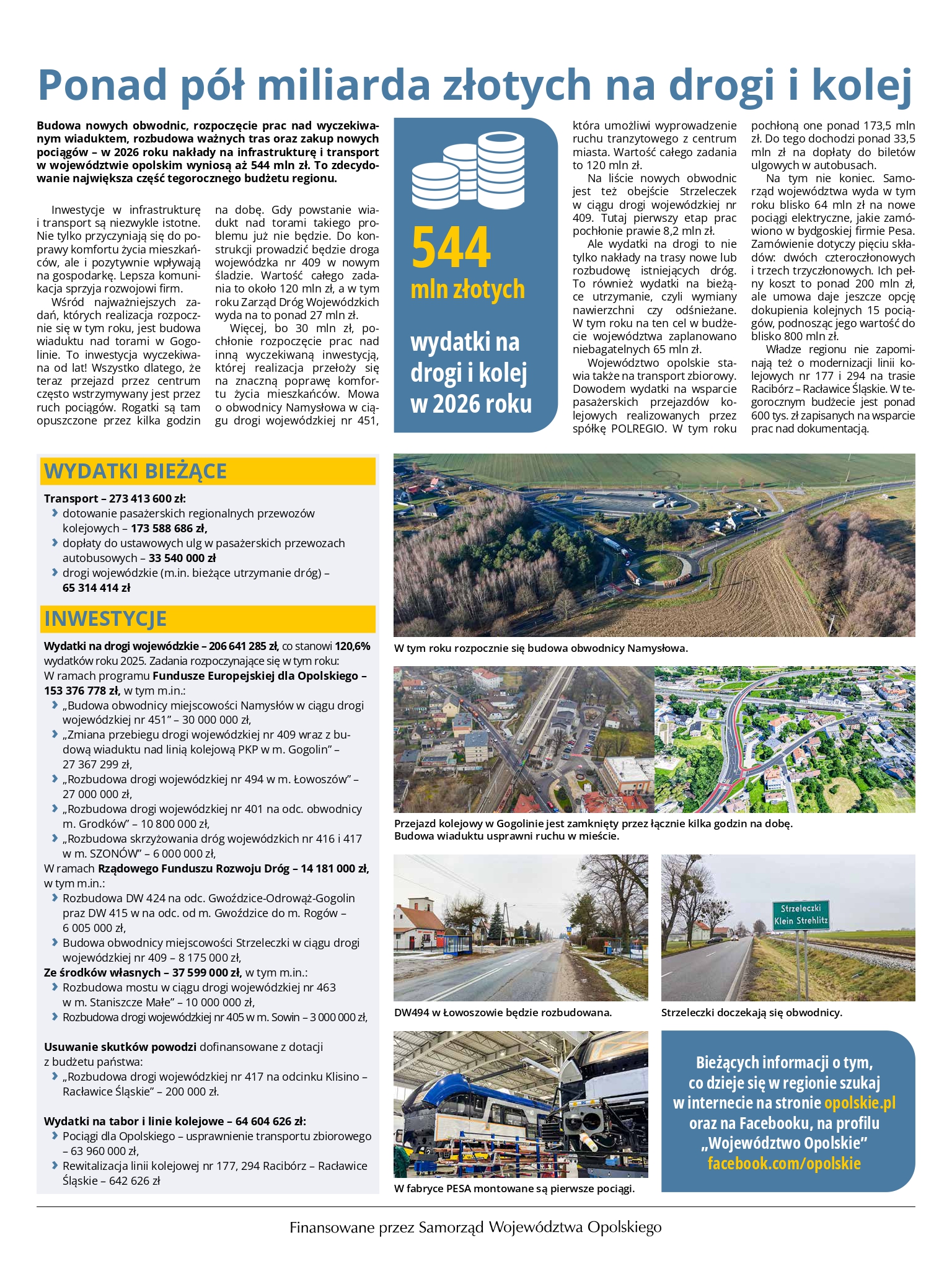 Inwestujemy w infrastrukturę i transport – Samorząd Województwa Opolskiego planuje wydać ponad pół miliarda złotych na drogi i kolej