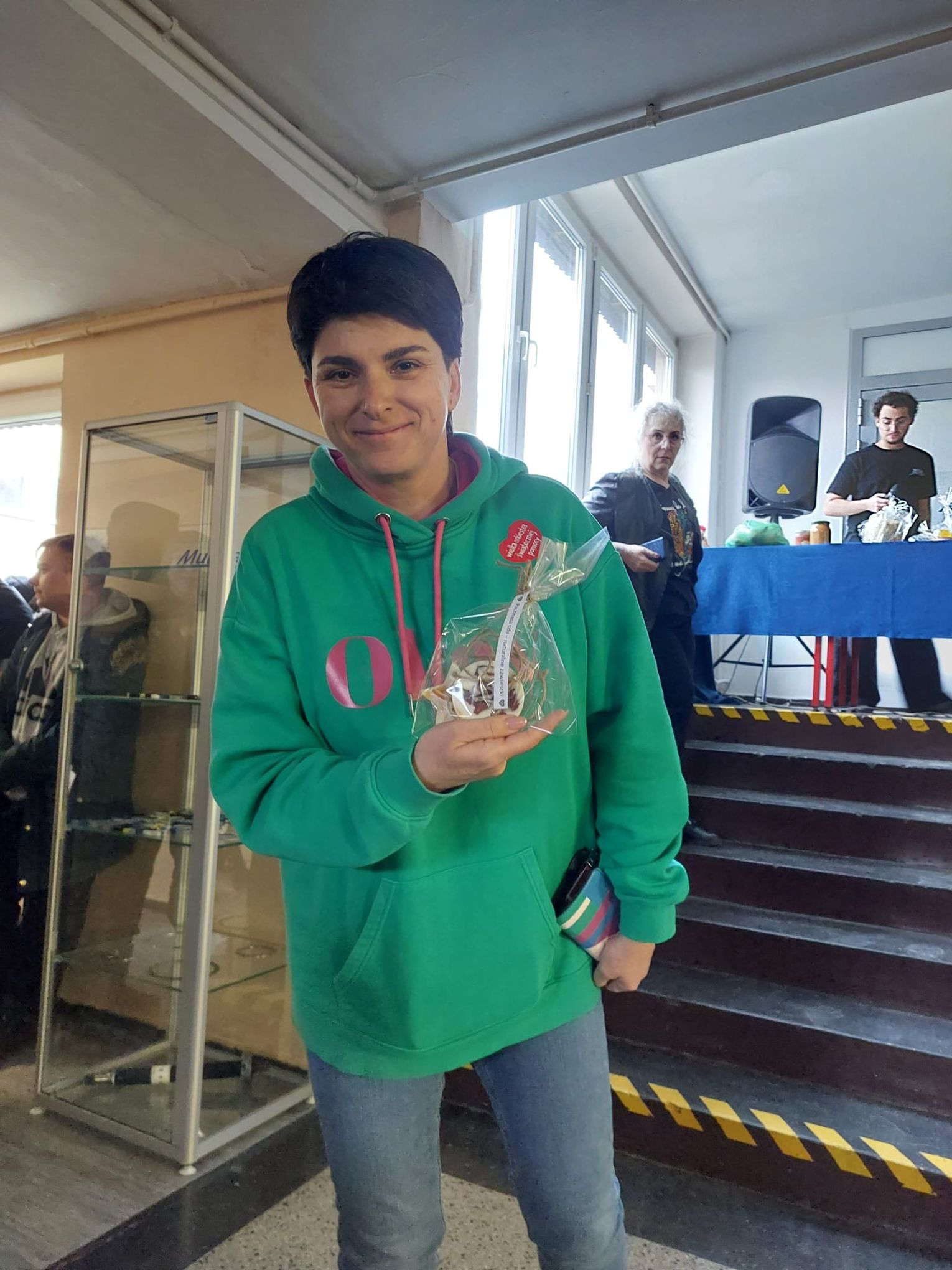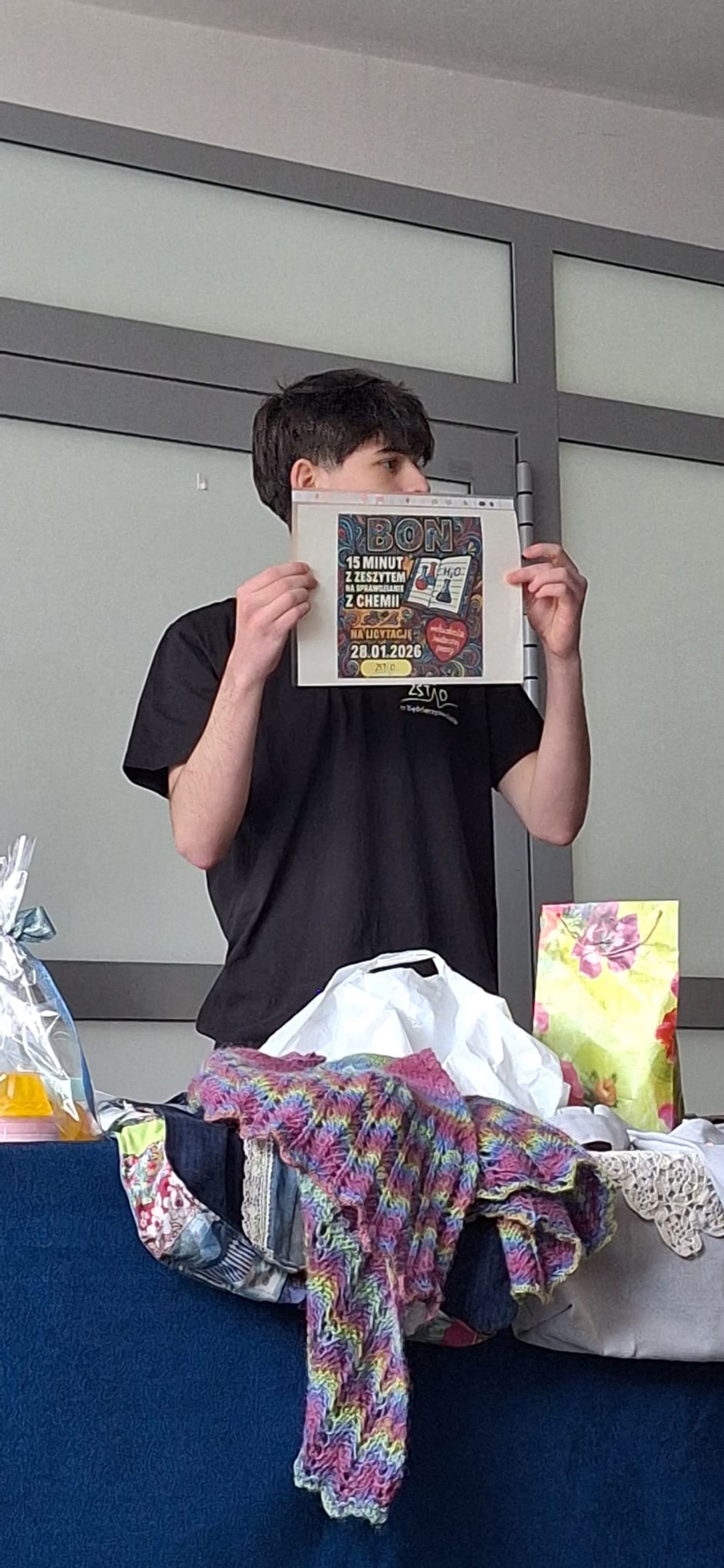 Nie zabrakło także innych atrakcji: kupiono patelnię wraz z książką kucharską pana Ramsa, domowe wyroby i owoce od pana Łękawskiego, szydełkowe i drutowe rękodzieło nauczycielek języka angielskiego, solidne torby na zakupy, gry oraz maskotki. Sporą radość wzbudziły również „fanty edukacyjne” – zdrapki gwarantujące m.in. dzień bez pytania, 15 minut z zeszytem na sprawdzianie czy możliwość zadania pytania nauczycielowi.