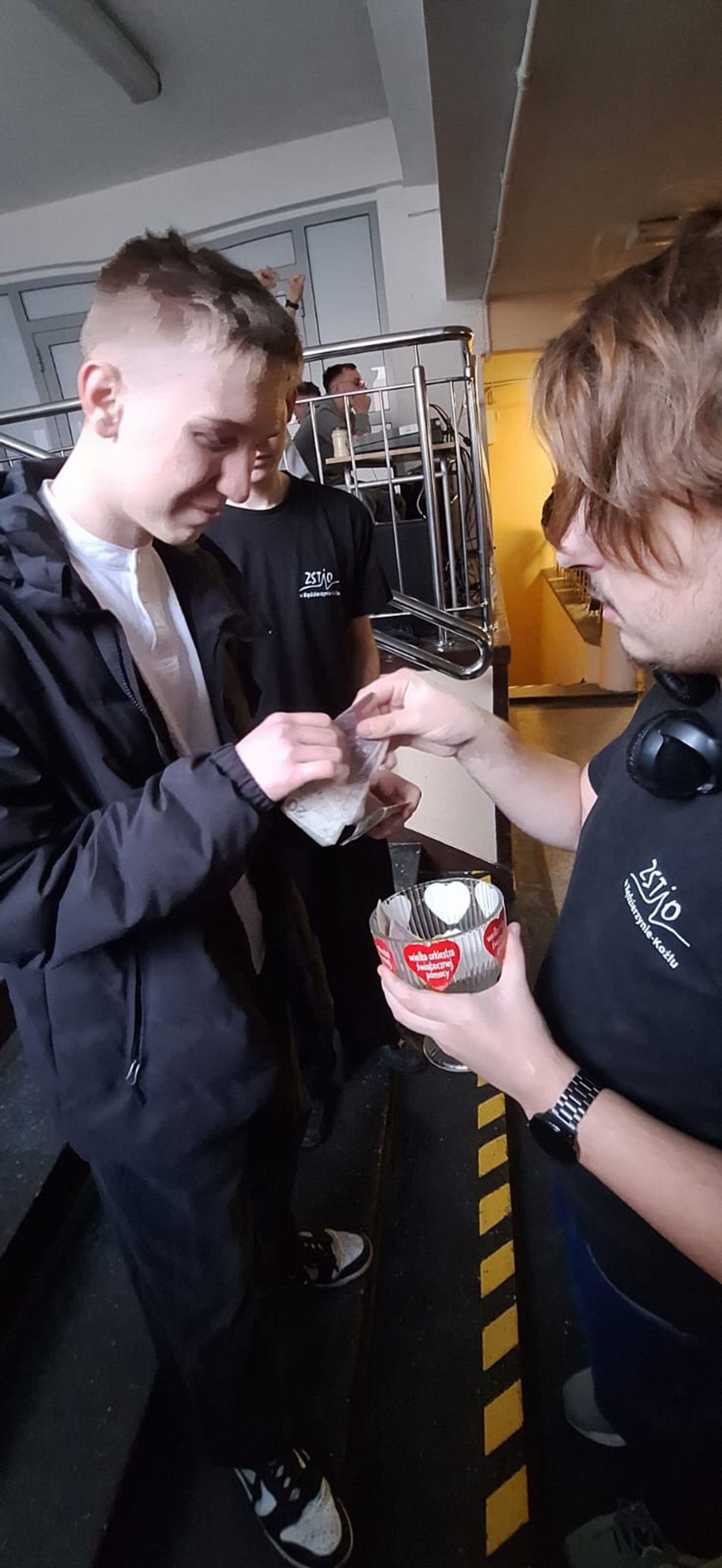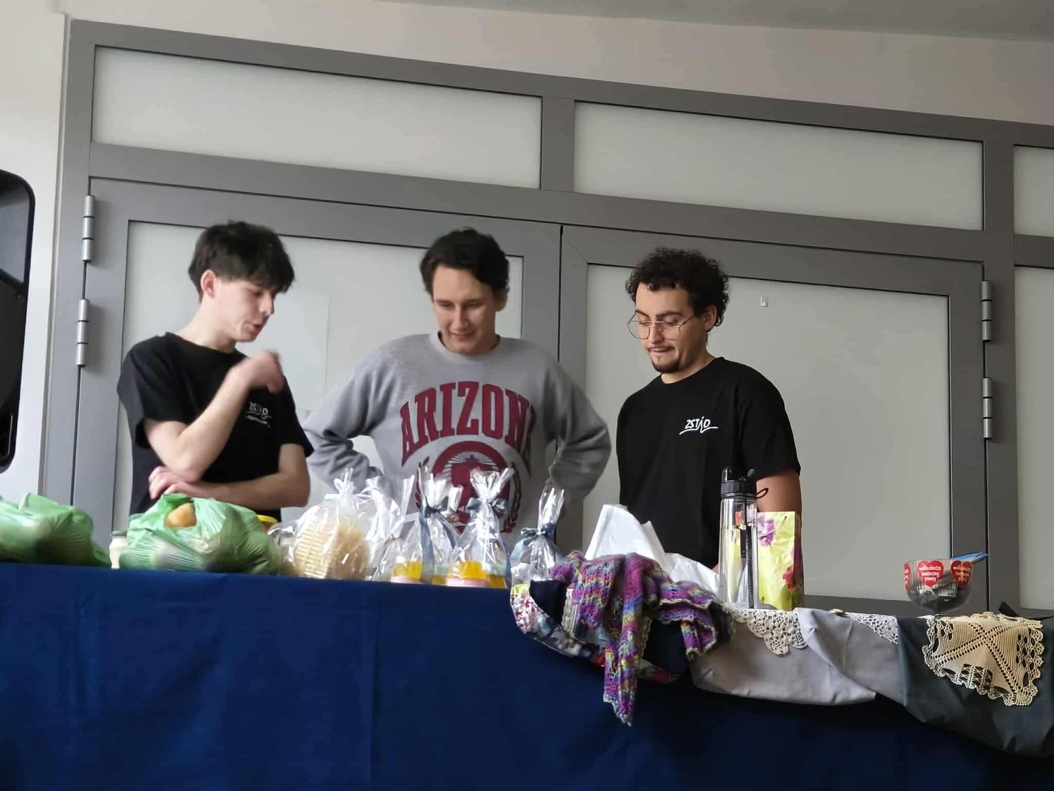 Licytację z dużym zaangażowaniem i humorem prowadzili uczniowie klasy 4 mechatronik – Daniel, Kuba i Wiktor – którzy zadbali o świetną atmosferę i tempo wydarzeń.