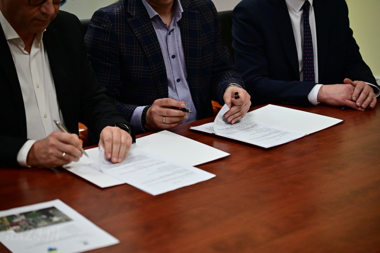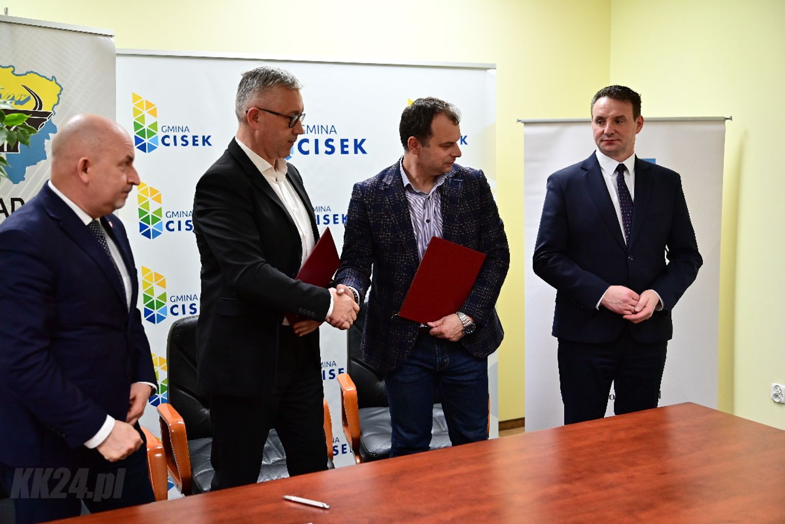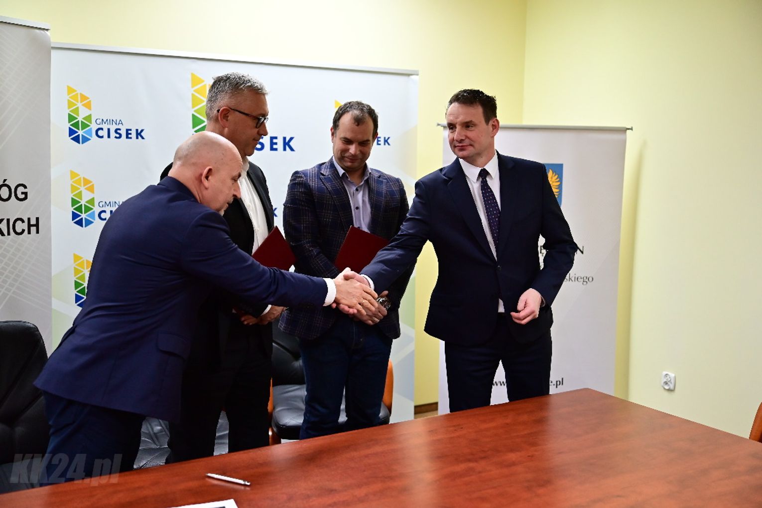 Umowa została zawarta w obecności Członka Zarządu Województwa Opolskiego Roberta Węgrzyna oraz wójta gminy Cisek Rajmunda Frischko. Dokument podpisali dyrektor Zarządu Dróg Wojewódzkich w Opolu ds. inwestycji Mirosław Sokołowski oraz właściciel firmy Arcus 2 - wykonawcy projektu - Tadeusz Hoszowski.