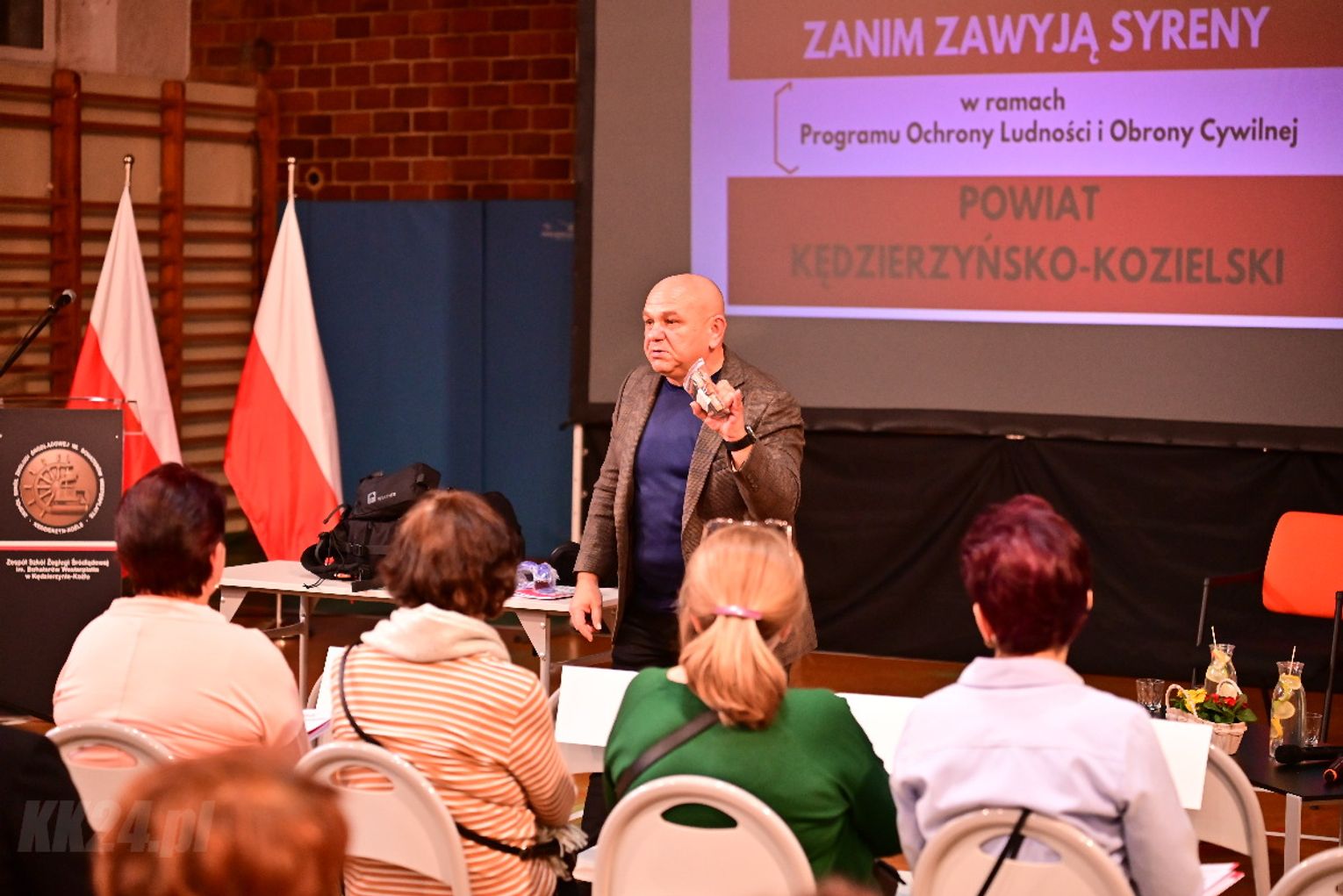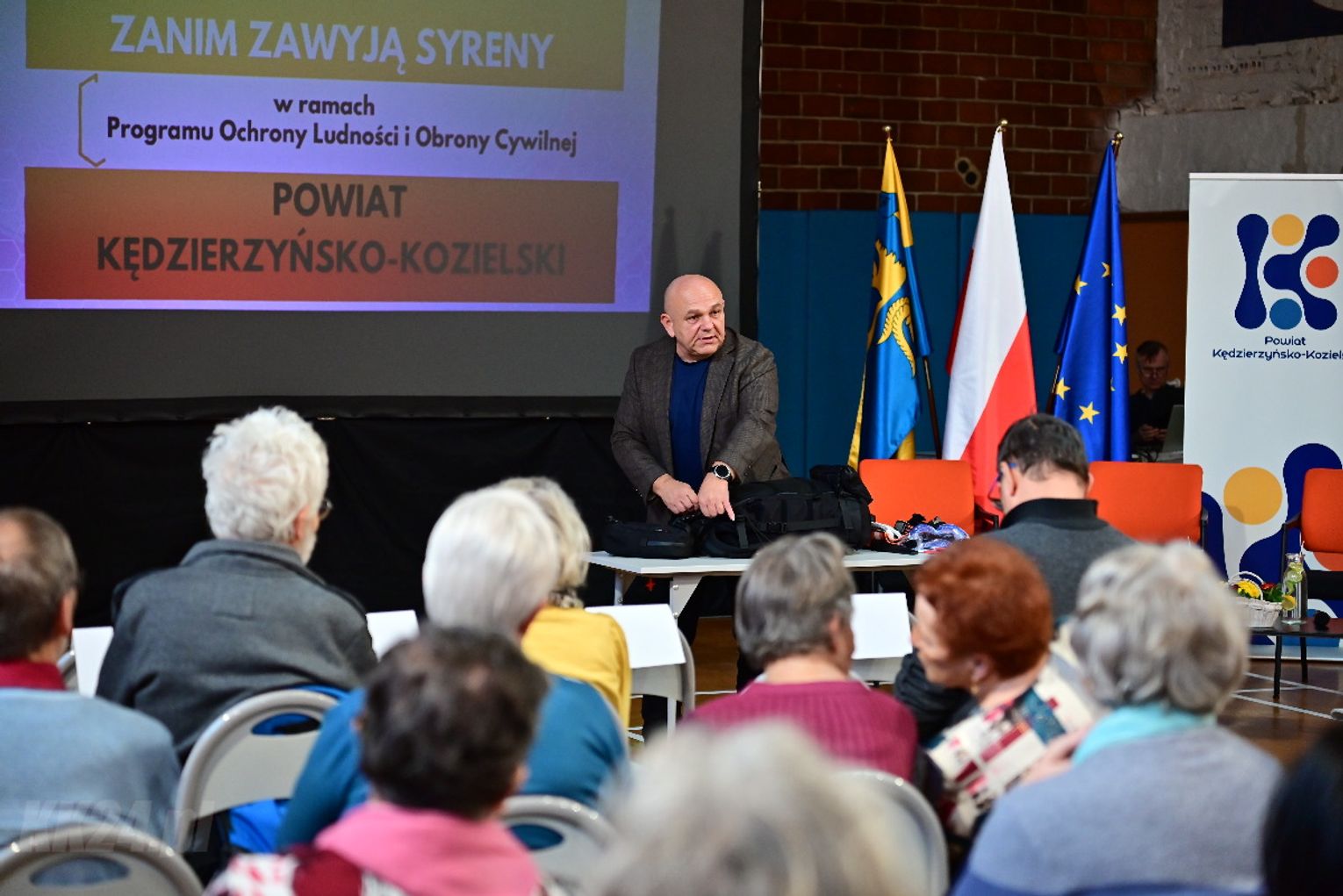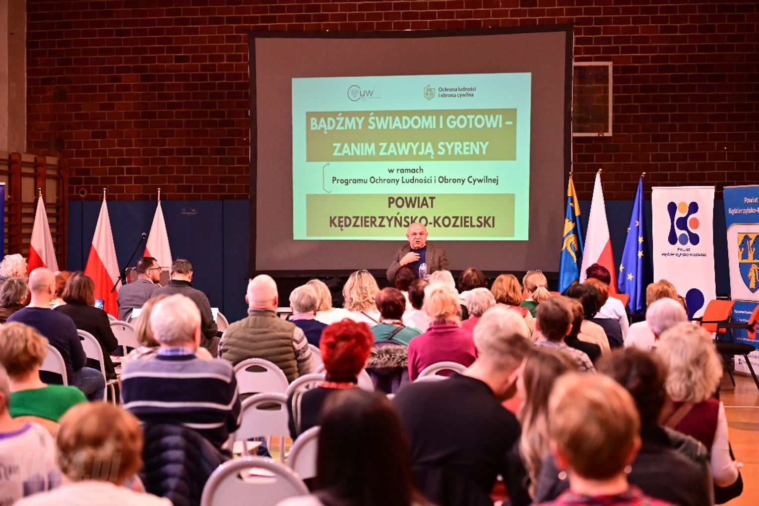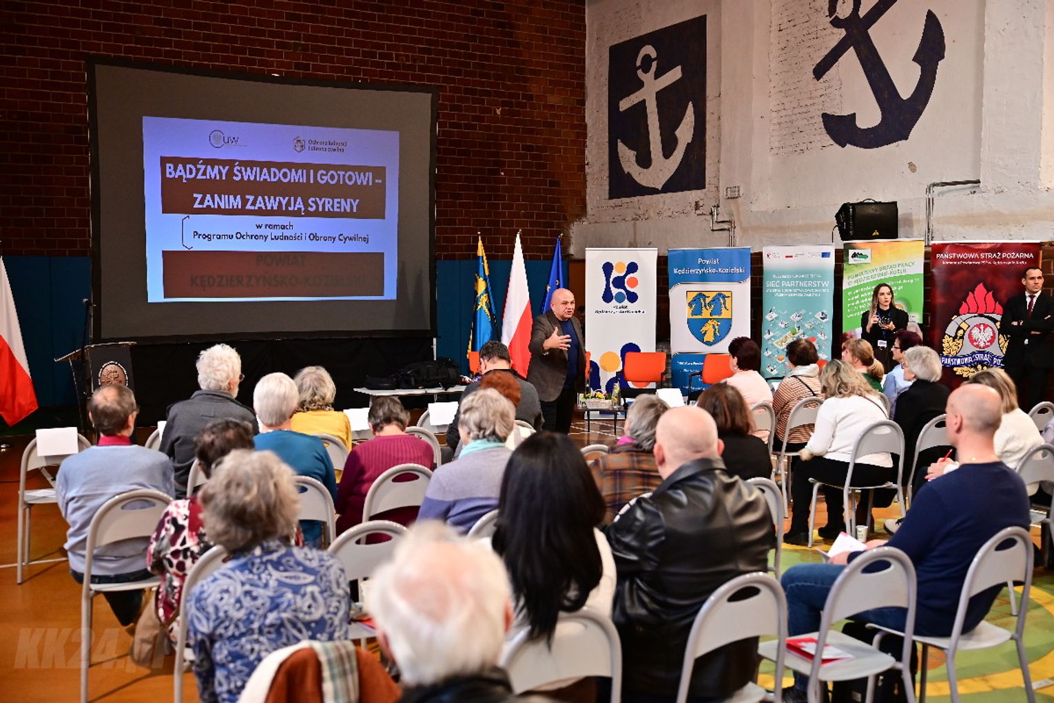 Już przed oficjalnym rozpoczęciem, od godziny 15.30, uczestnicy mogli zapoznać się z wyposażeniem plecaka ewakuacyjnego oraz uzyskać praktyczne wskazówki dotyczące przygotowania się na nagłe sytuacje. Podczas prelekcji eksperci wyjaśniali m.in., co oznaczają sygnały alarmowe, jak zachować się w pierwszych godzinach kryzysu oraz jakie działania podejmowane są w ramach Programu Ochrony Ludności i Obrony Cywilnej.